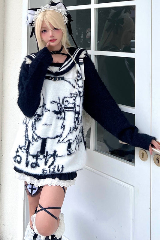 Subculture Cross Loose Ripped Drawstring Tank Top
