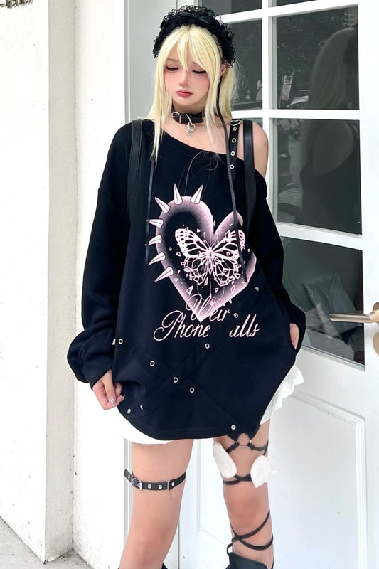 Top ample à capuche avec oreilles volantes en lapin foncé
