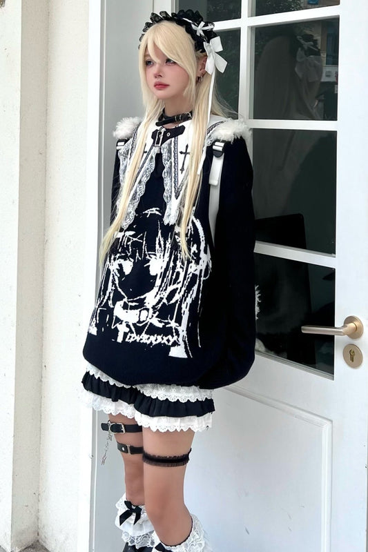 Dark Love Lace Short Maid T-shirt + Gothic Cross Lace Apron