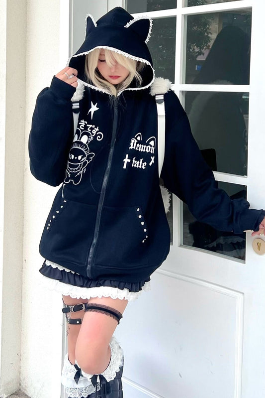 Lettre imprimée Dark Student Spider Hooded Letter Hoodie