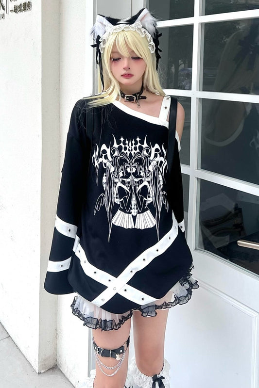 Top à dentelle asymétrique Soft Girl Homestyle Lace Up