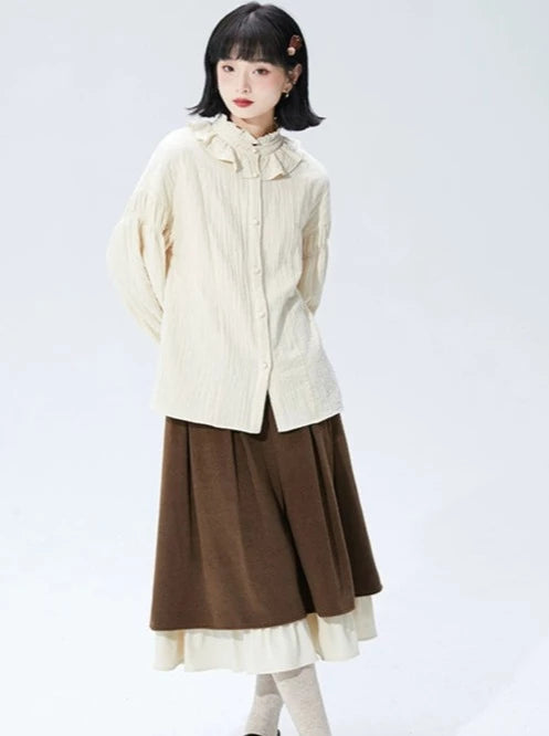 Robe à taille haute en dentelle ample à manches lanterne et ligne A