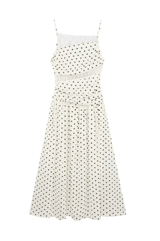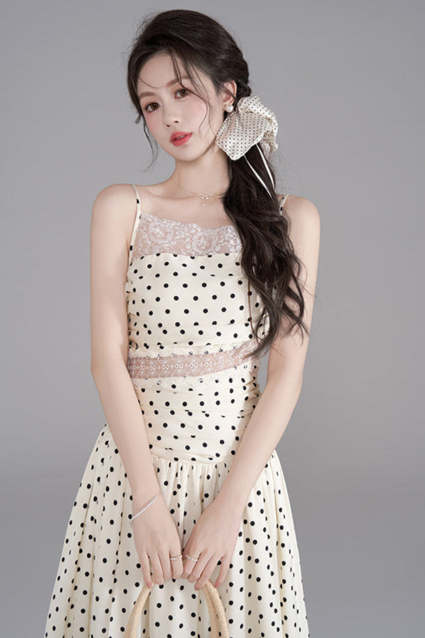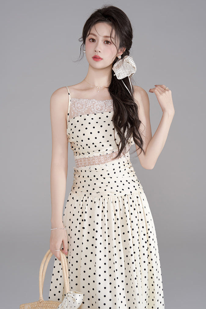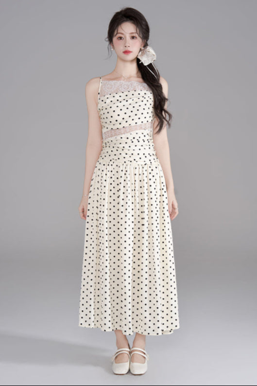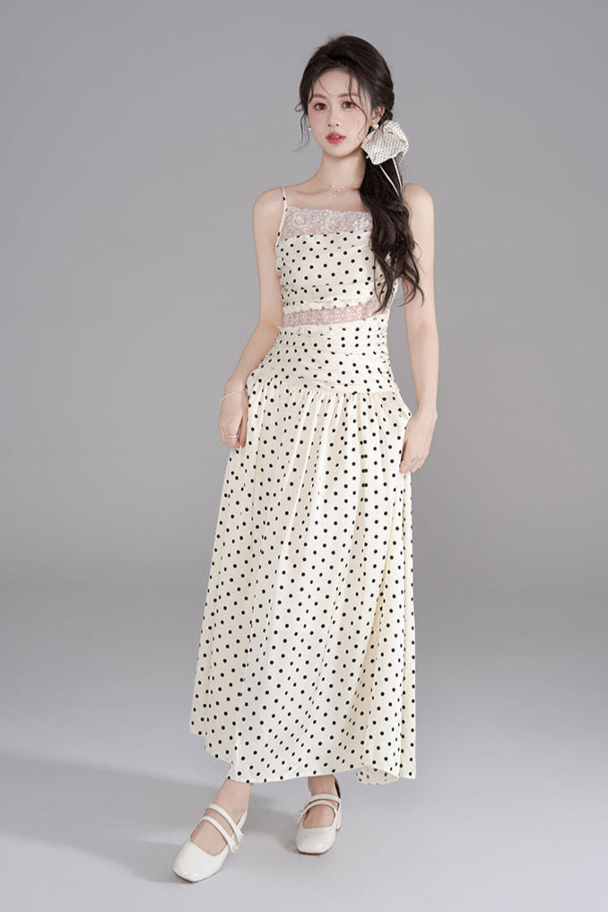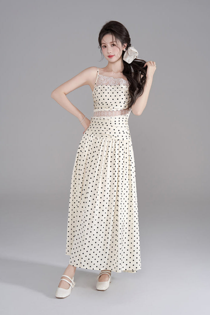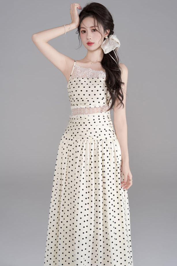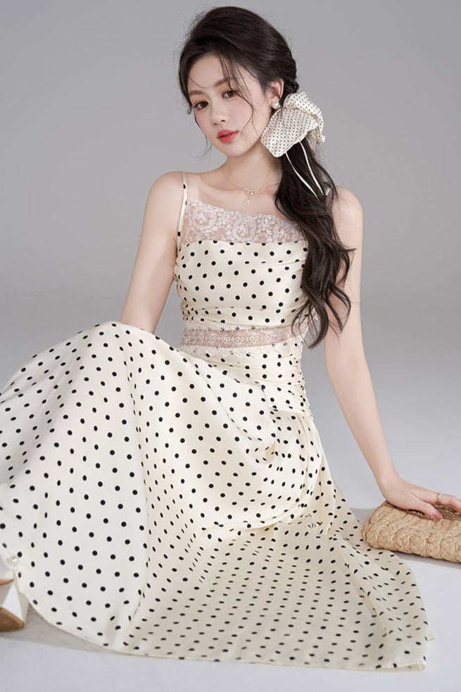 ドットレースフレンチロングキャミソールドレス+ドットシュシュ