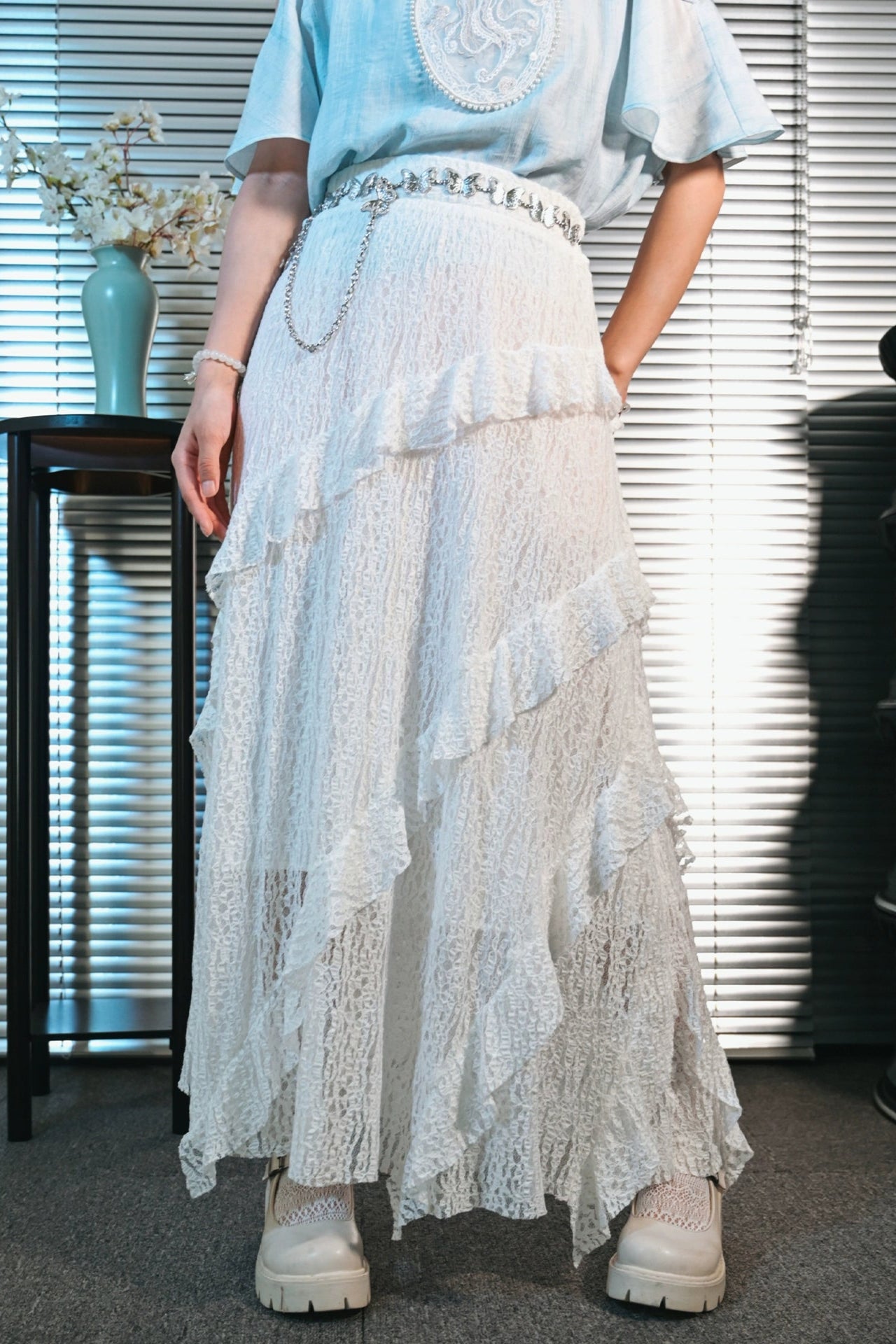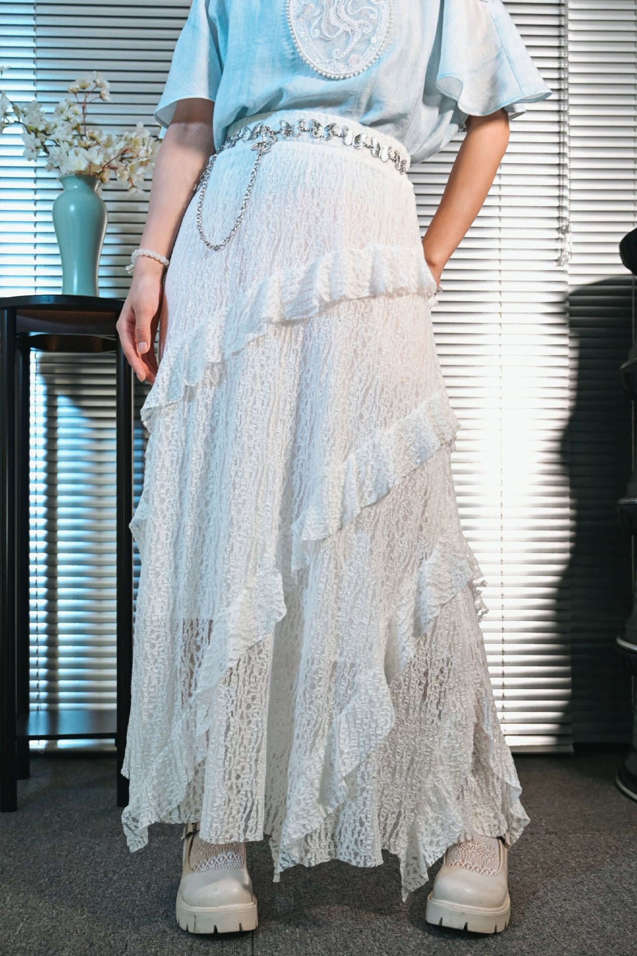 フリンジデザインロングスカート