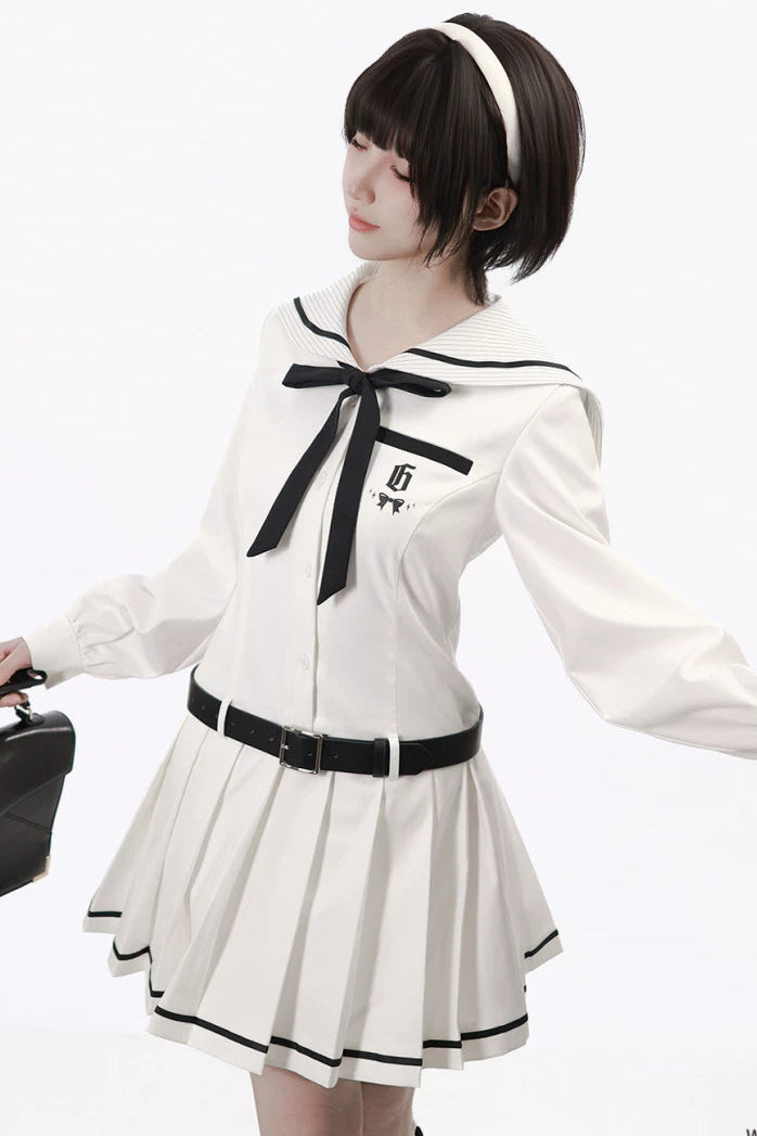 Robe de marin monochrome + Chemise + Jupe + Nœud papillon