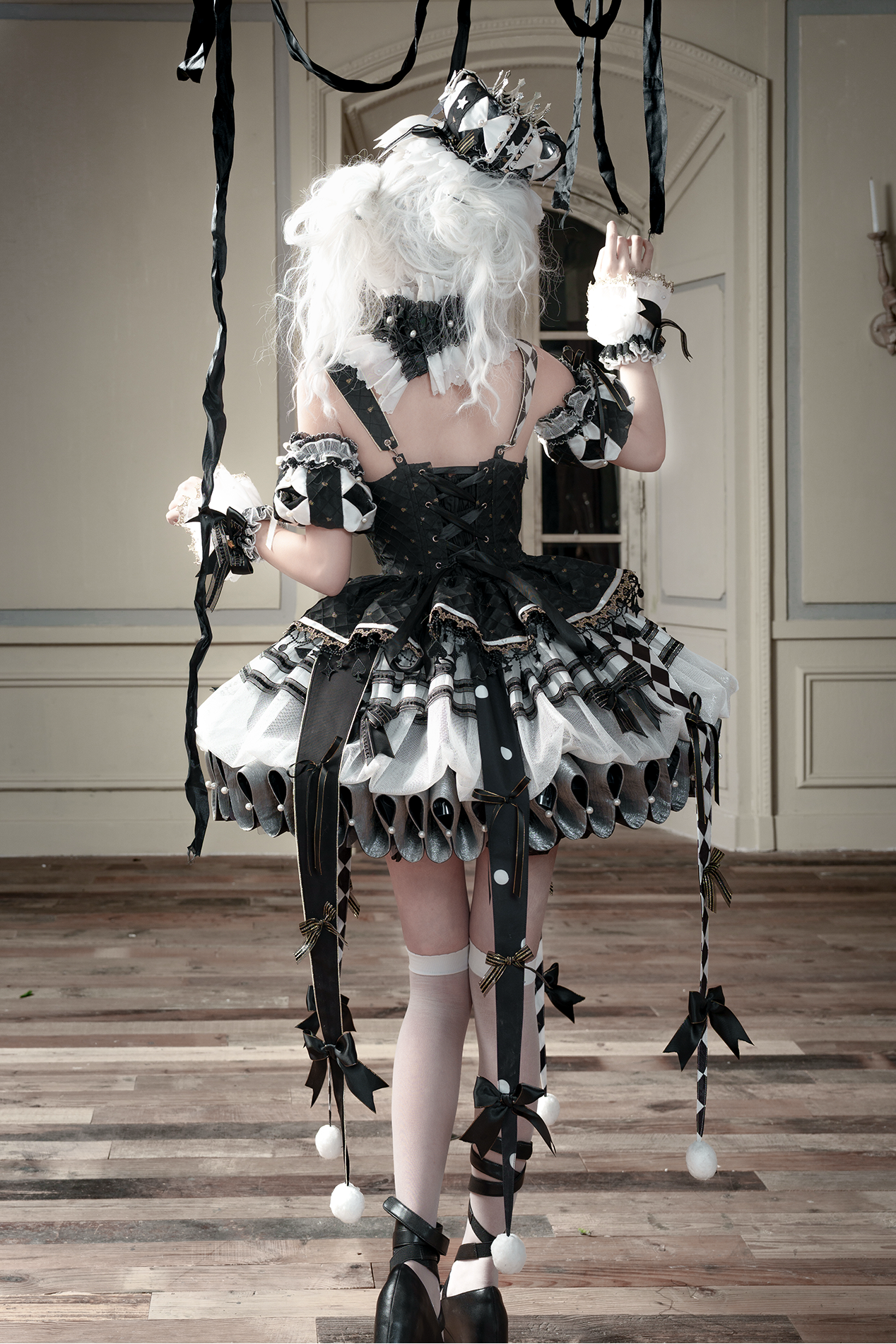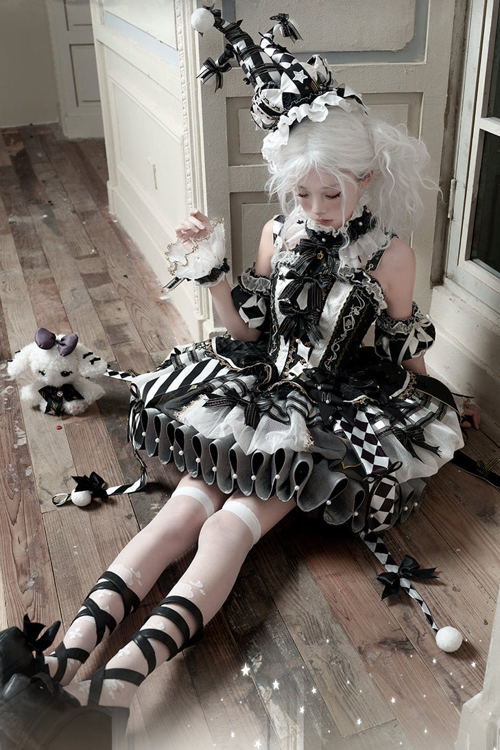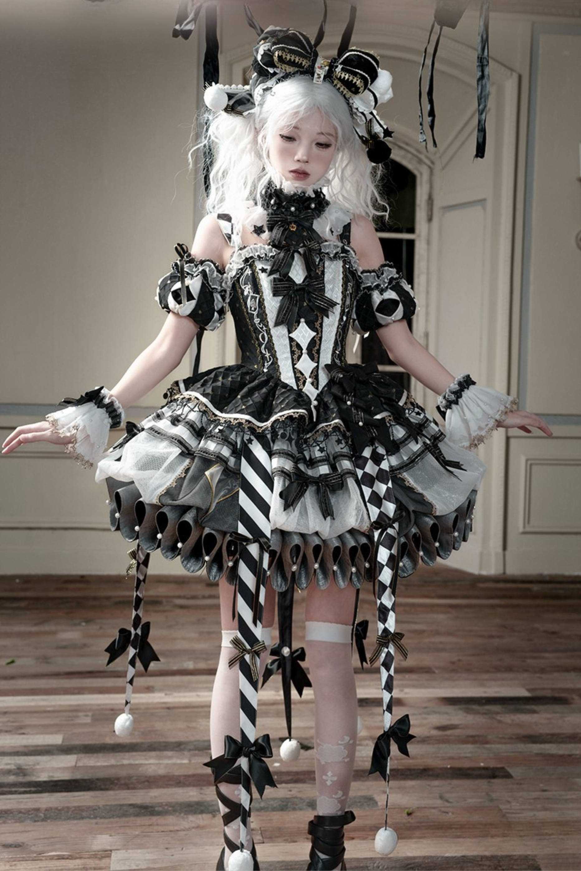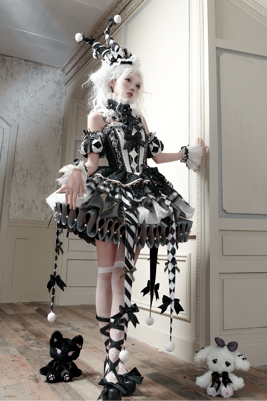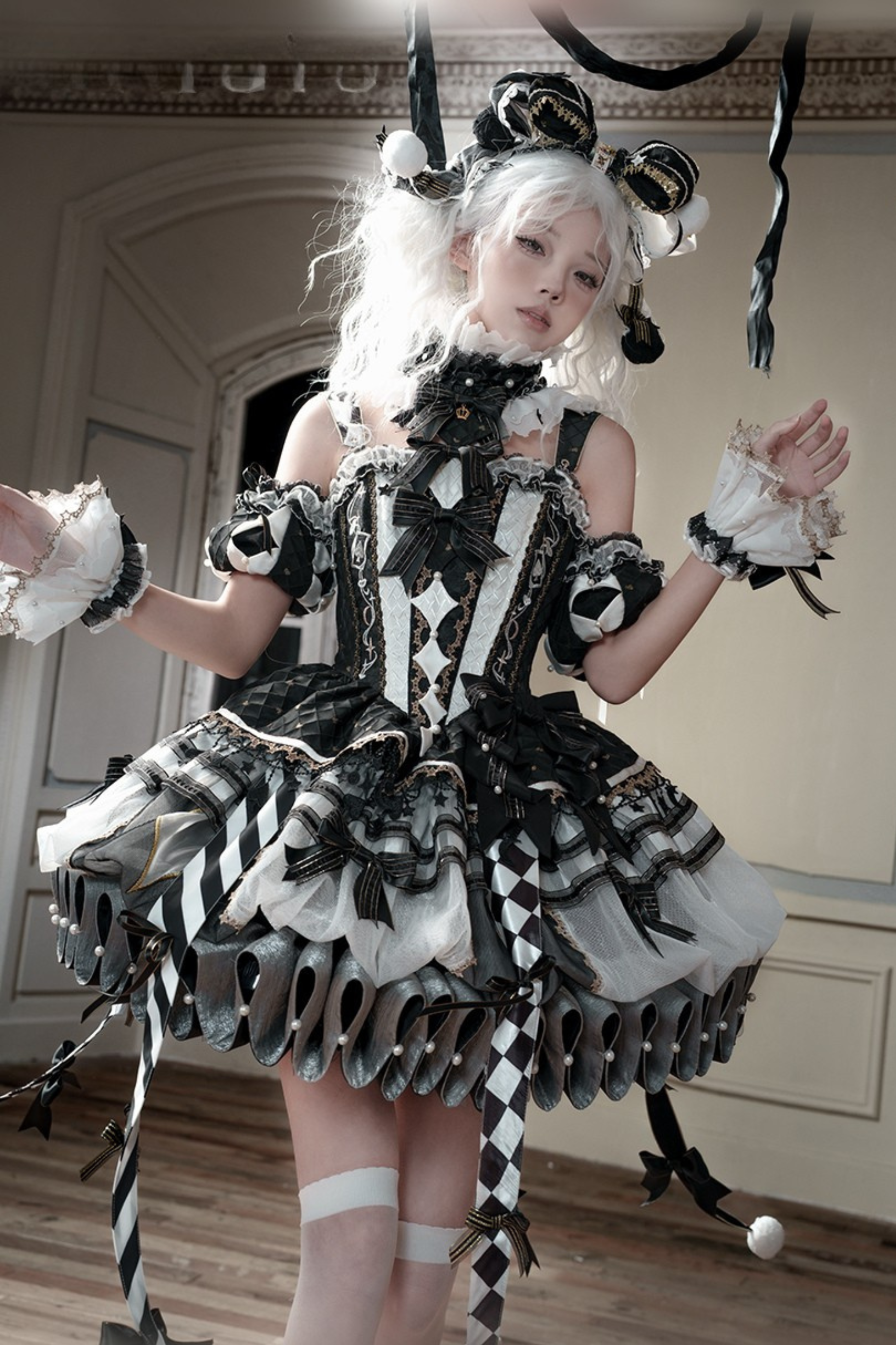 【12月26日予約締切】サーカスシリーズキングブラックアンドホワイトロリータピエロドレス+フルセットA/B