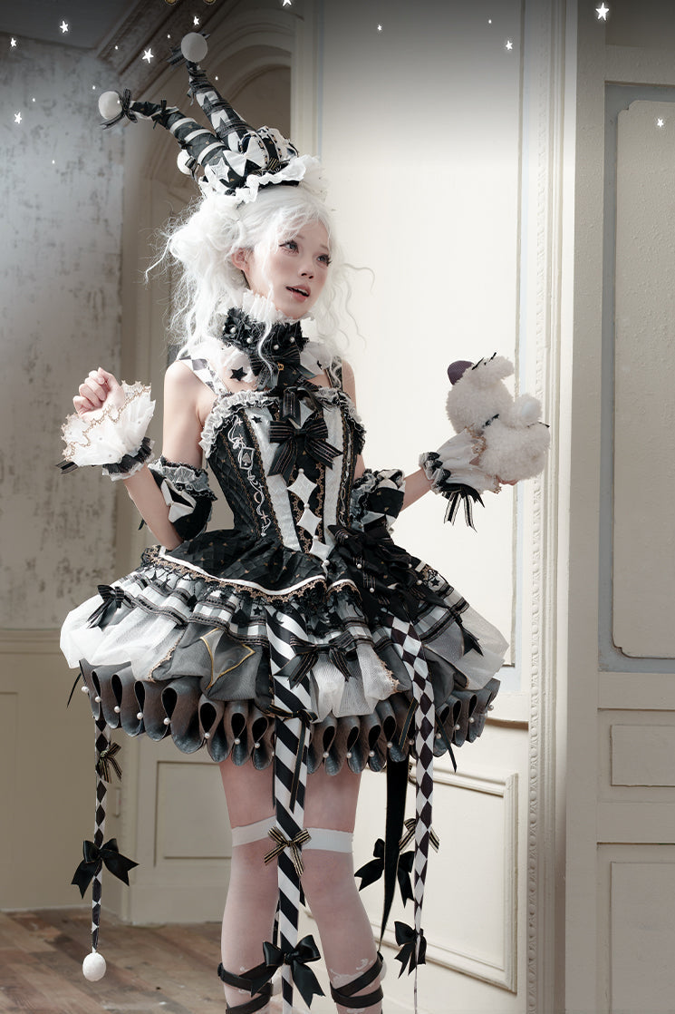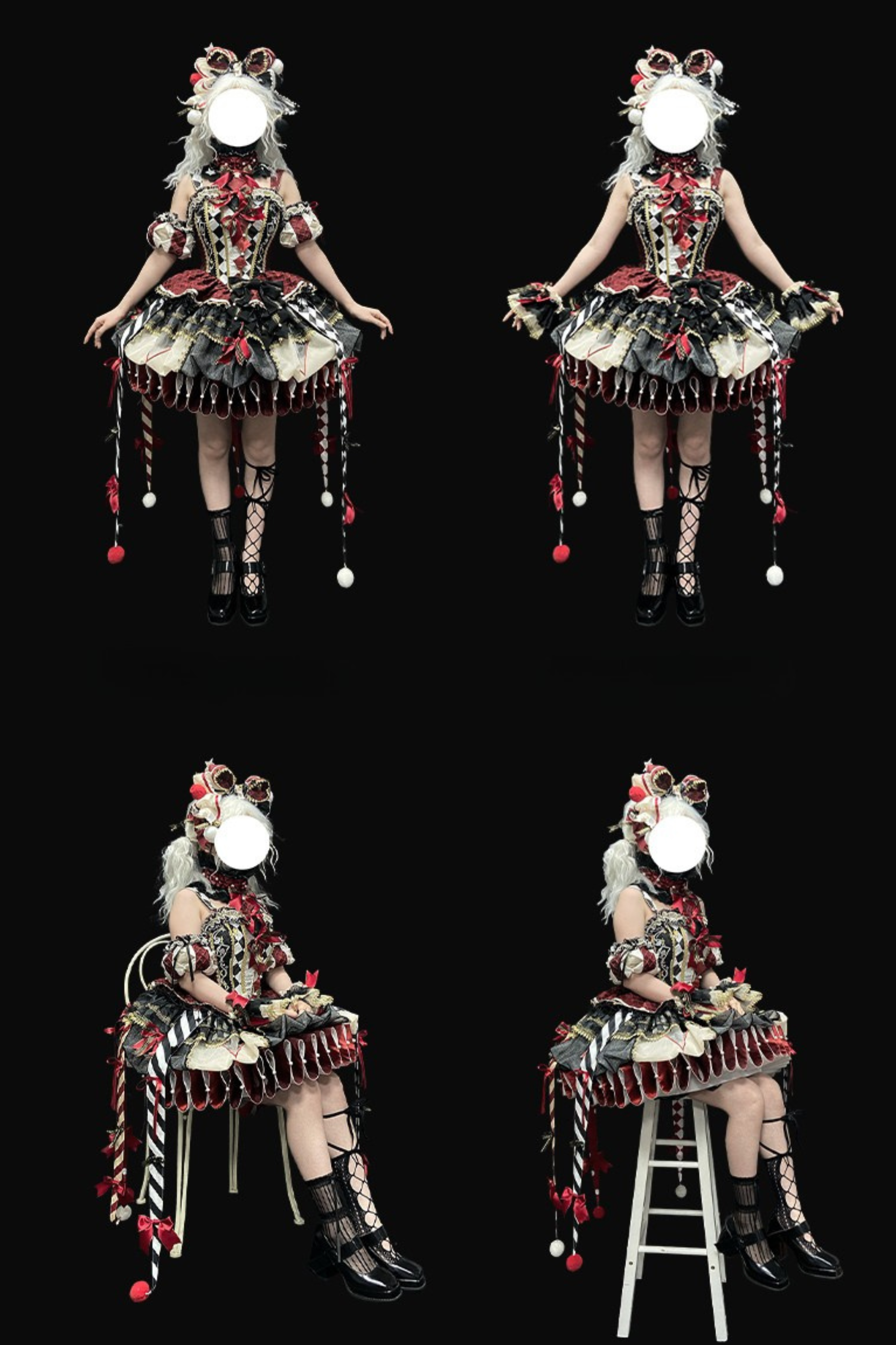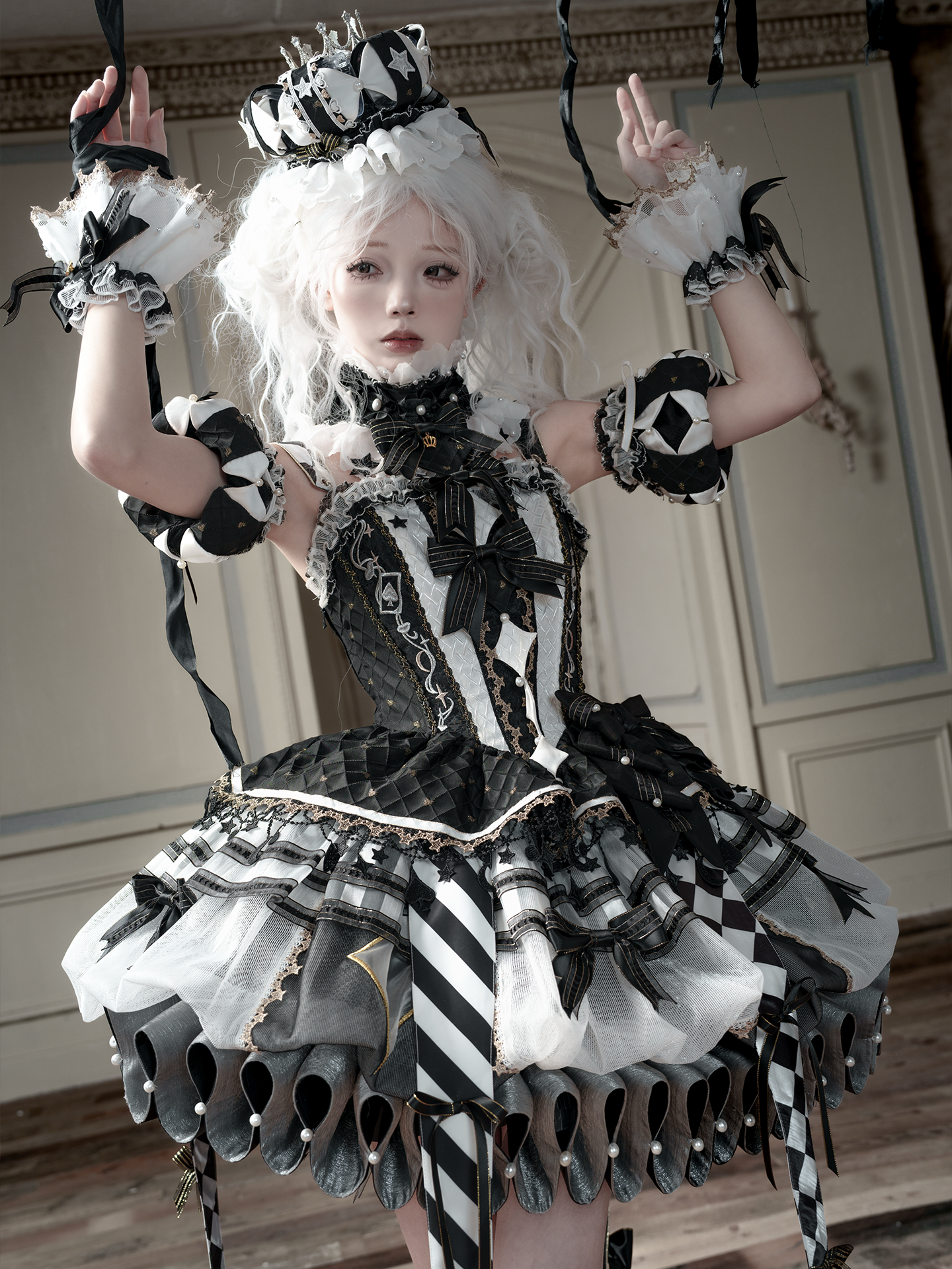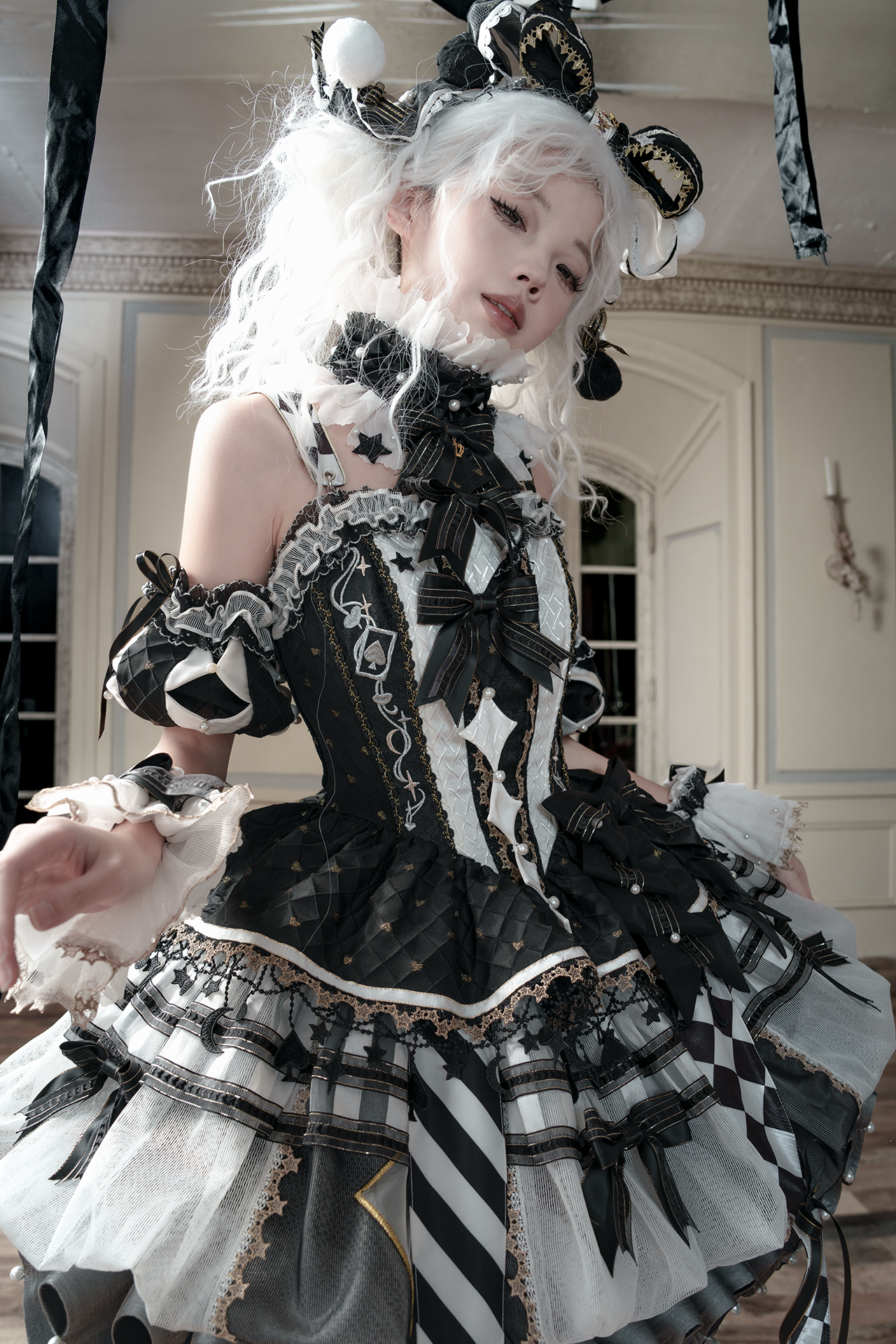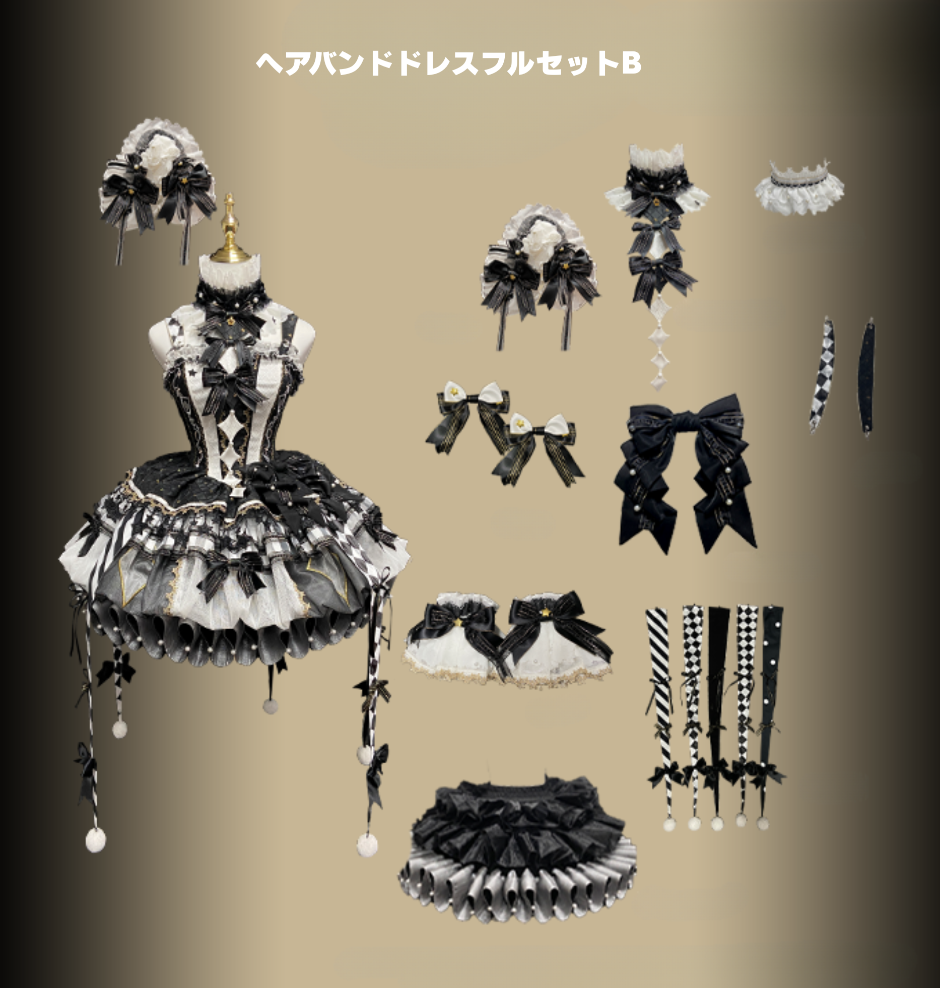 【12月26日予約締切】サーカスシリーズキングブラックアンドホワイトロリータピエロドレス+フルセットA/B