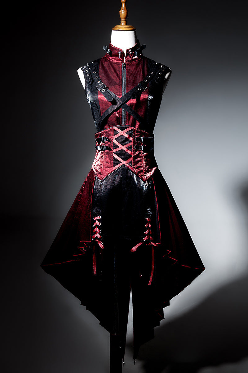 ❤【予約商品】ダークサイバーサスペンダースカート+ショートパンツ+ノースリーブトップス+スリーブ❤