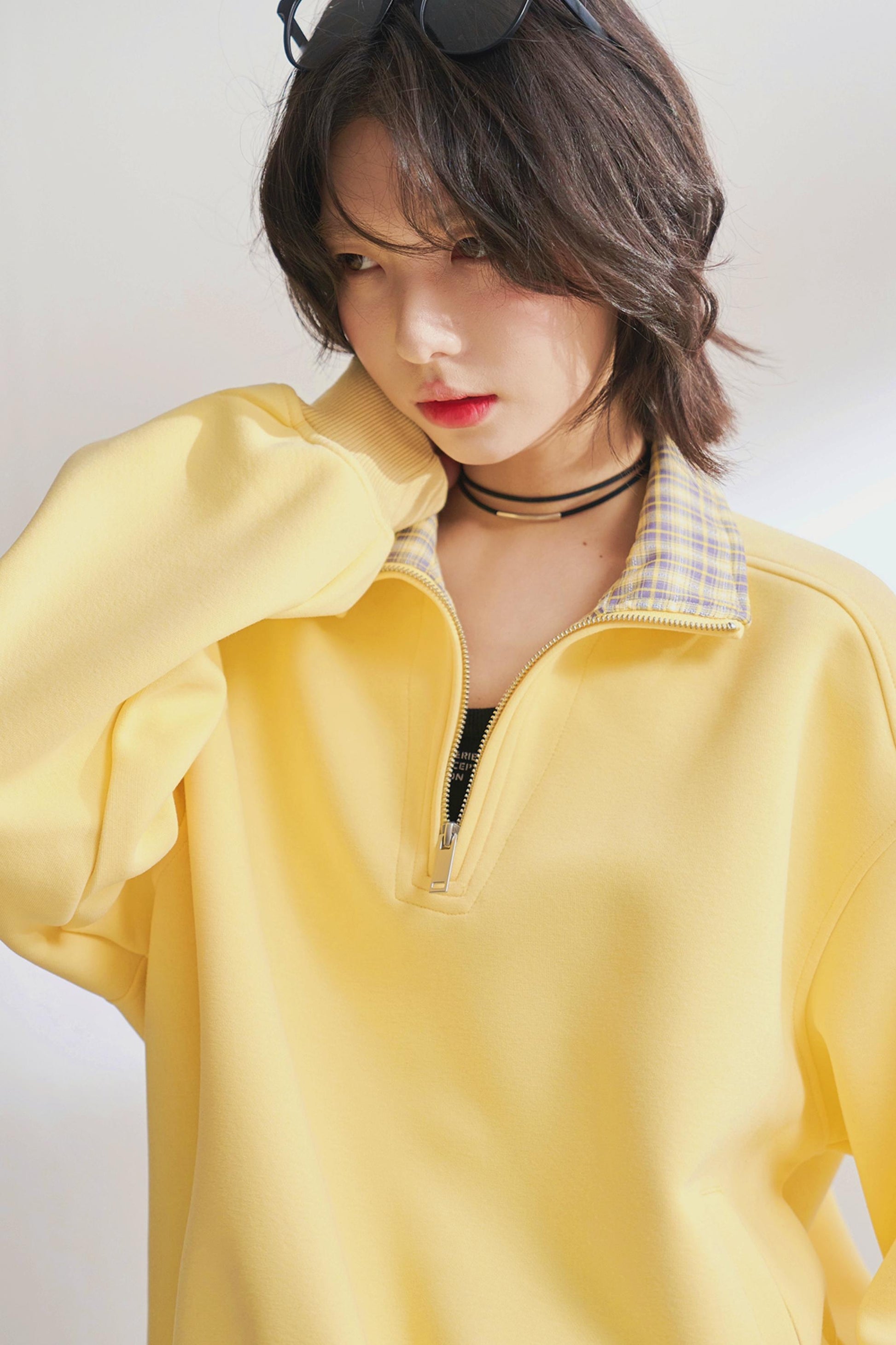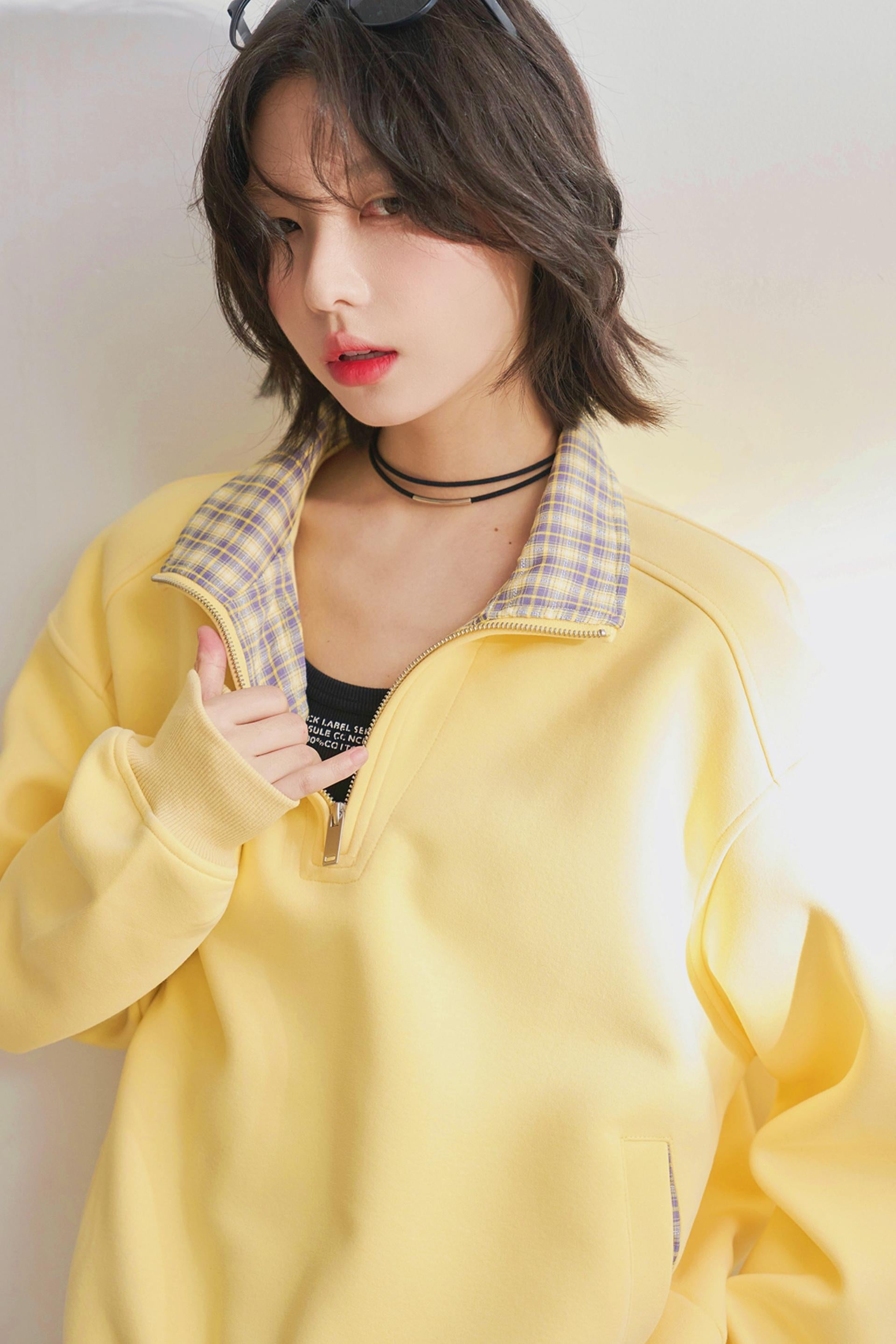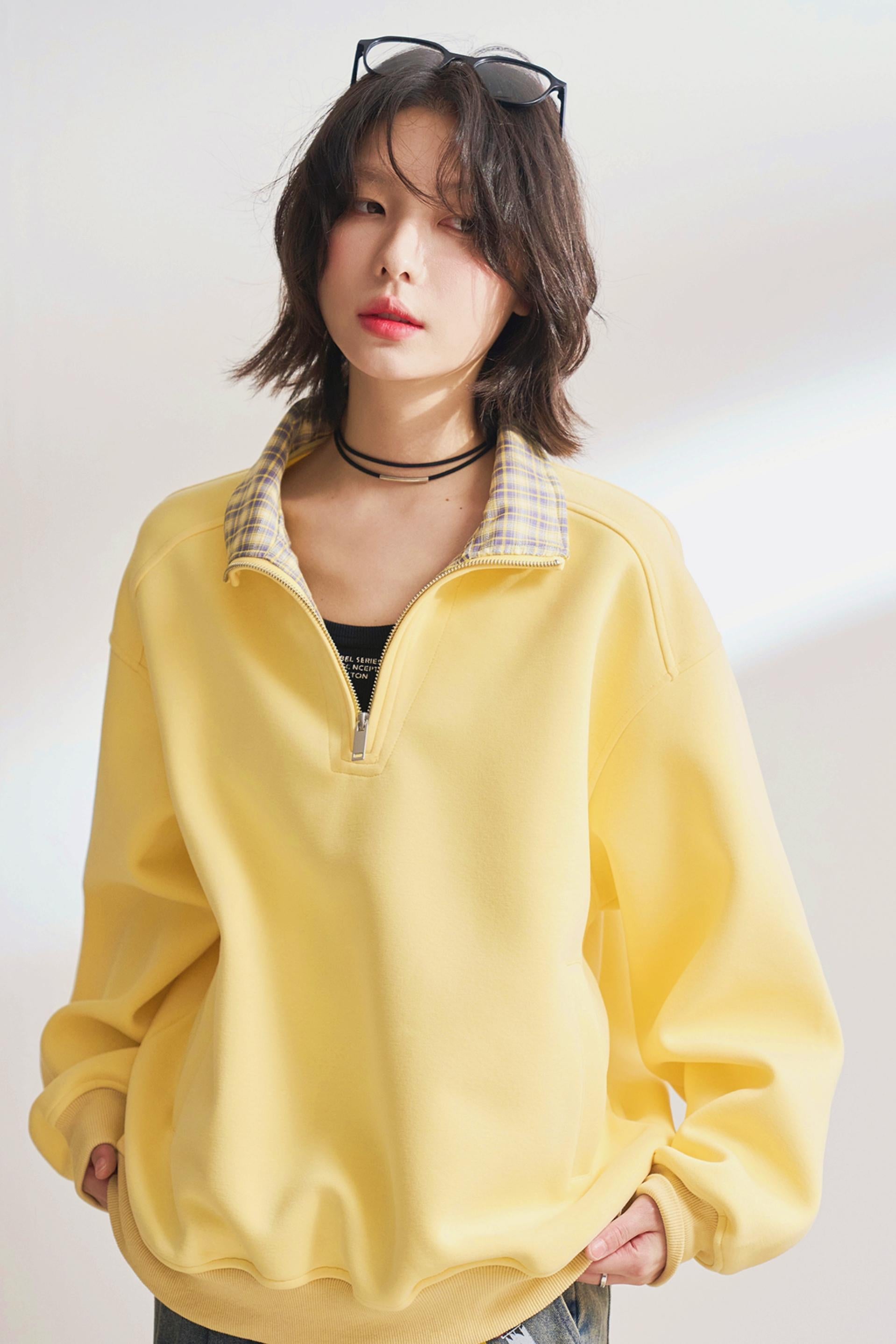 カジュアルハーフジップチェックスウェット