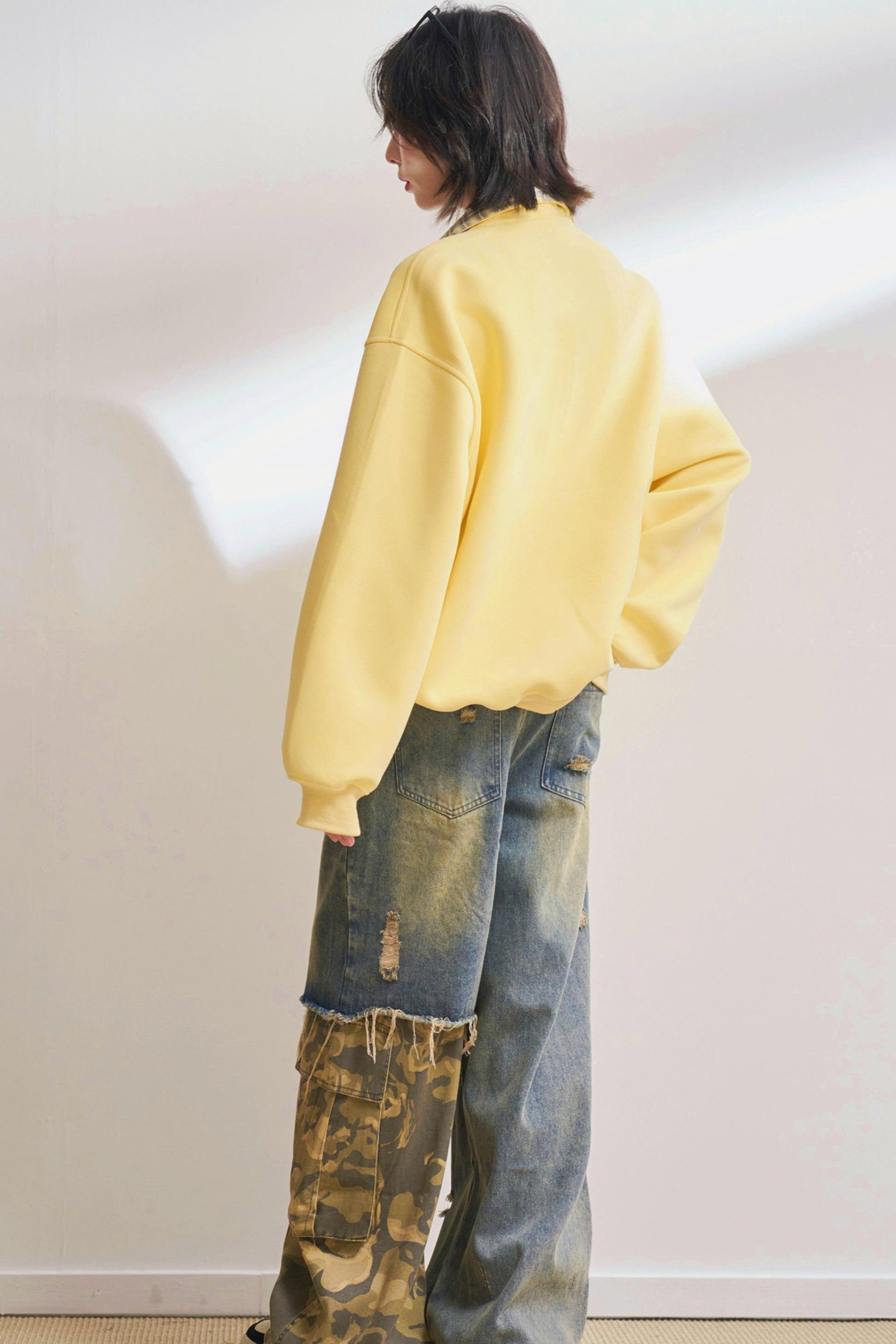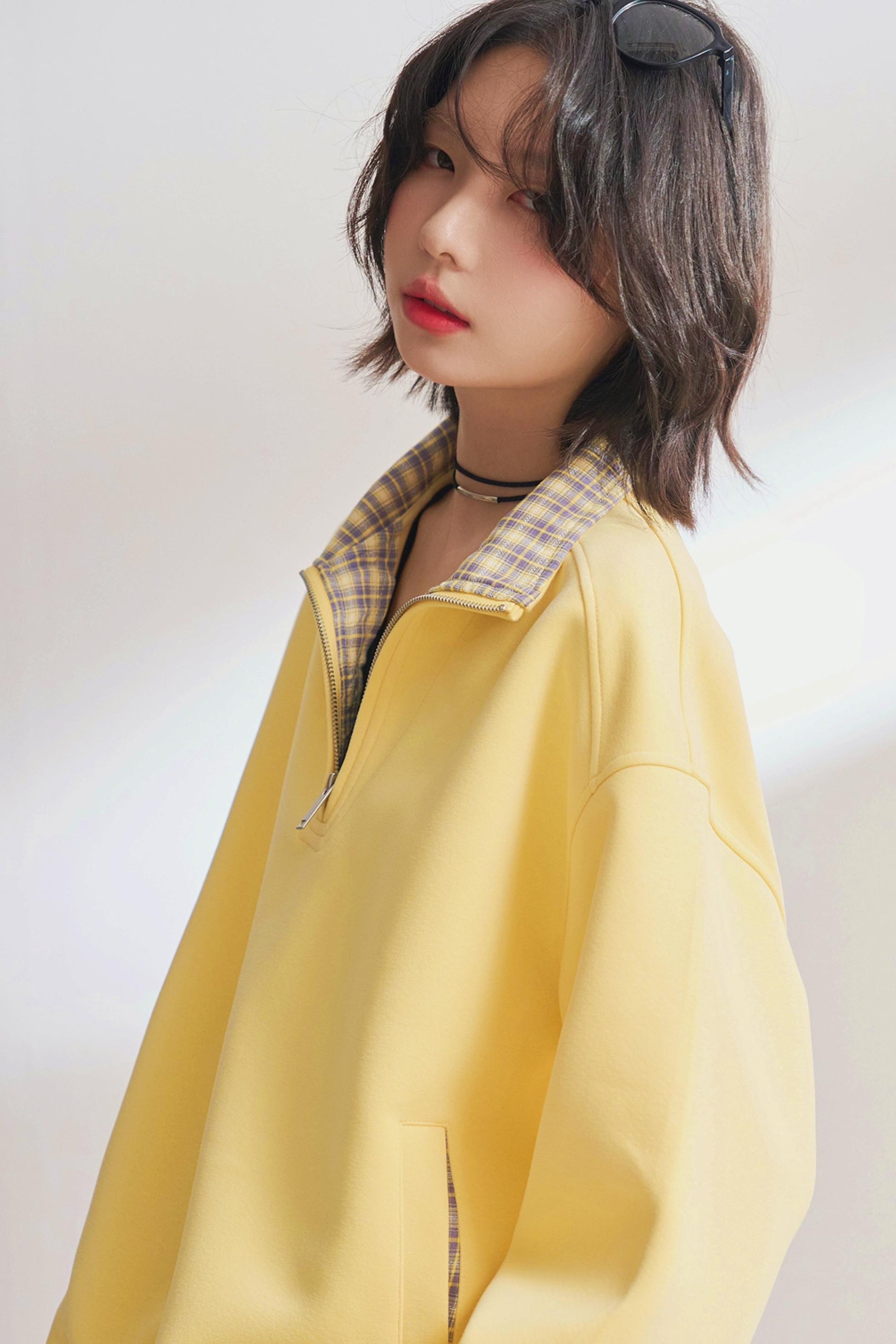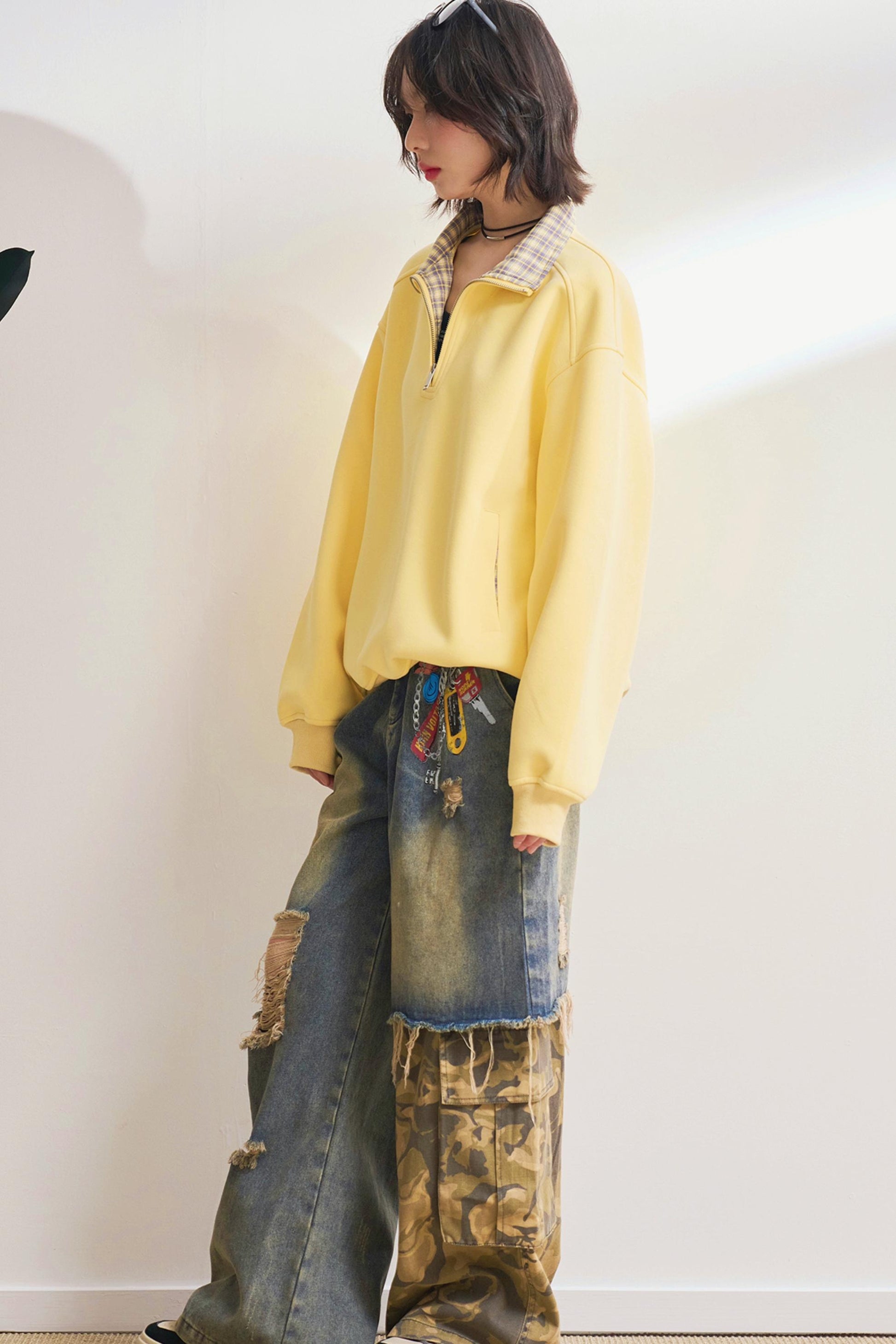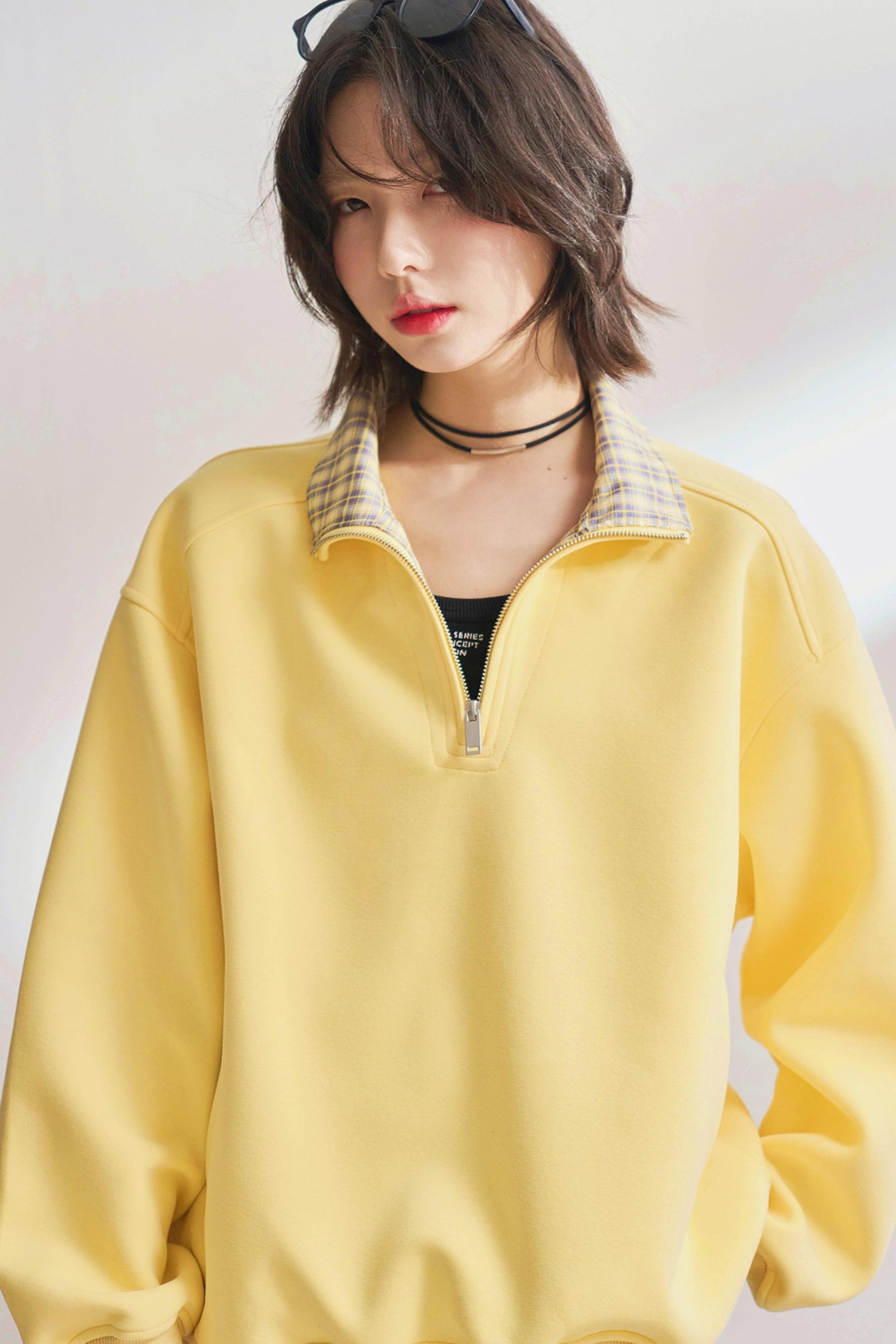 カジュアルハーフジップチェックスウェット