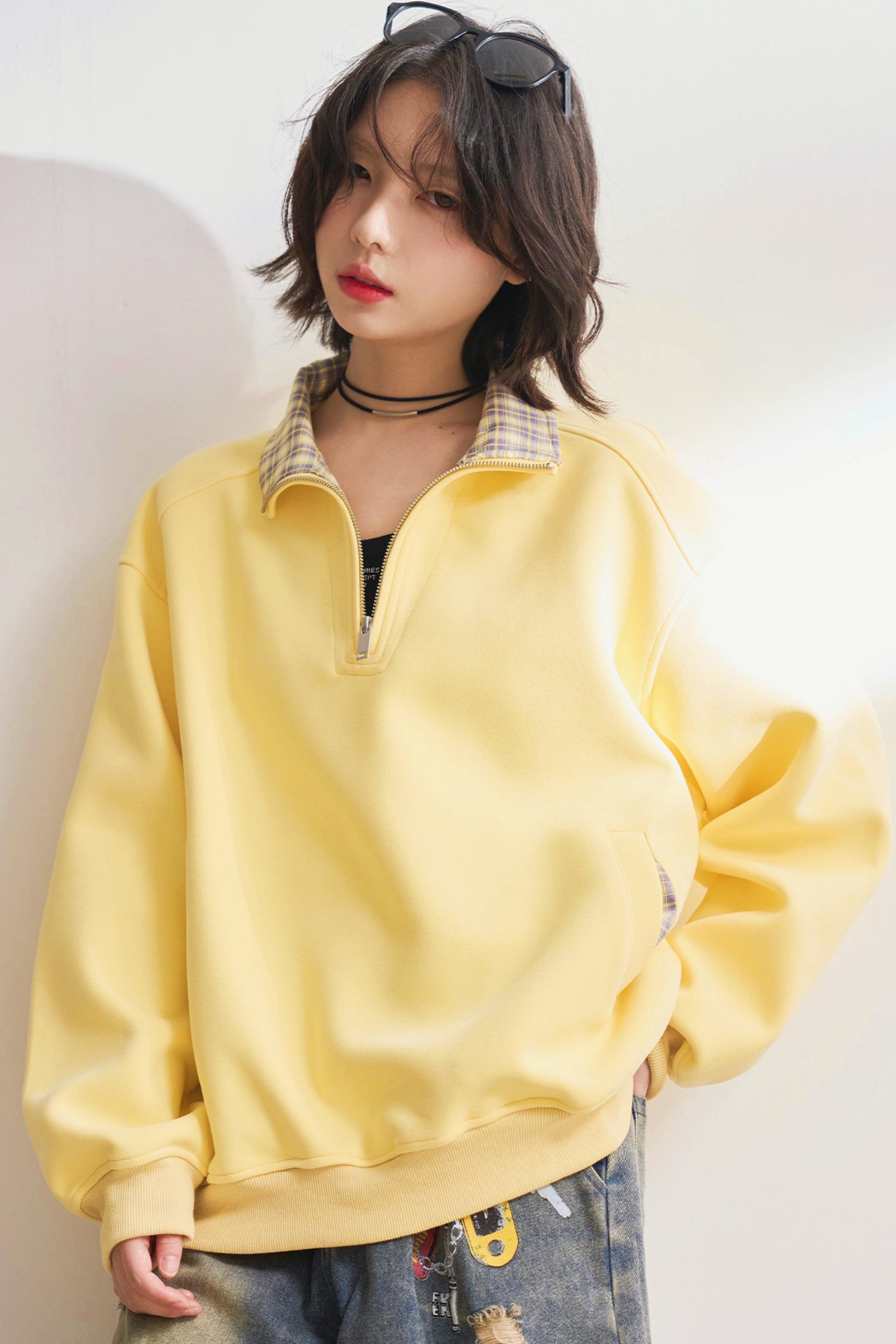 ❤カジュアルハーフジップチェックスウェット❤