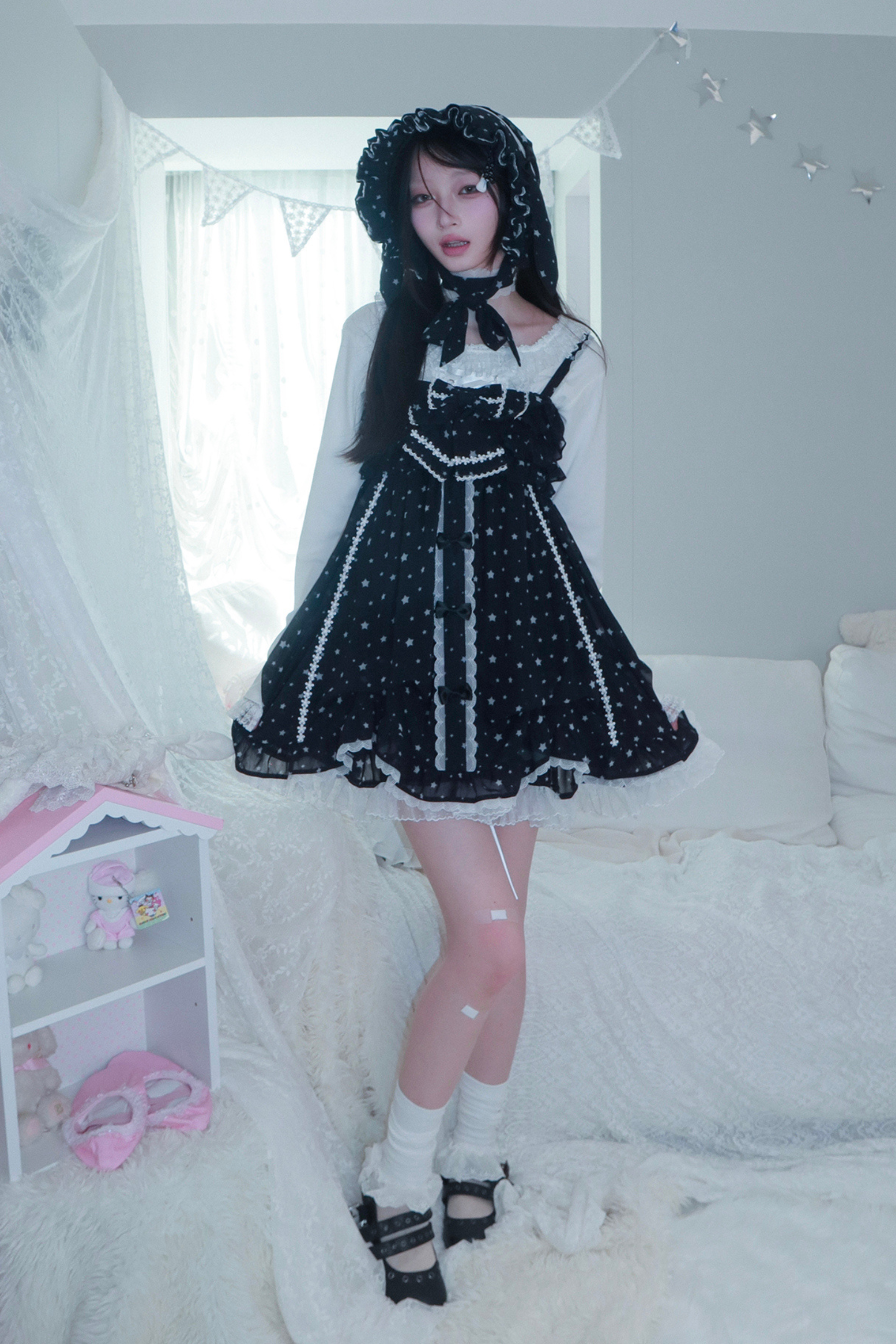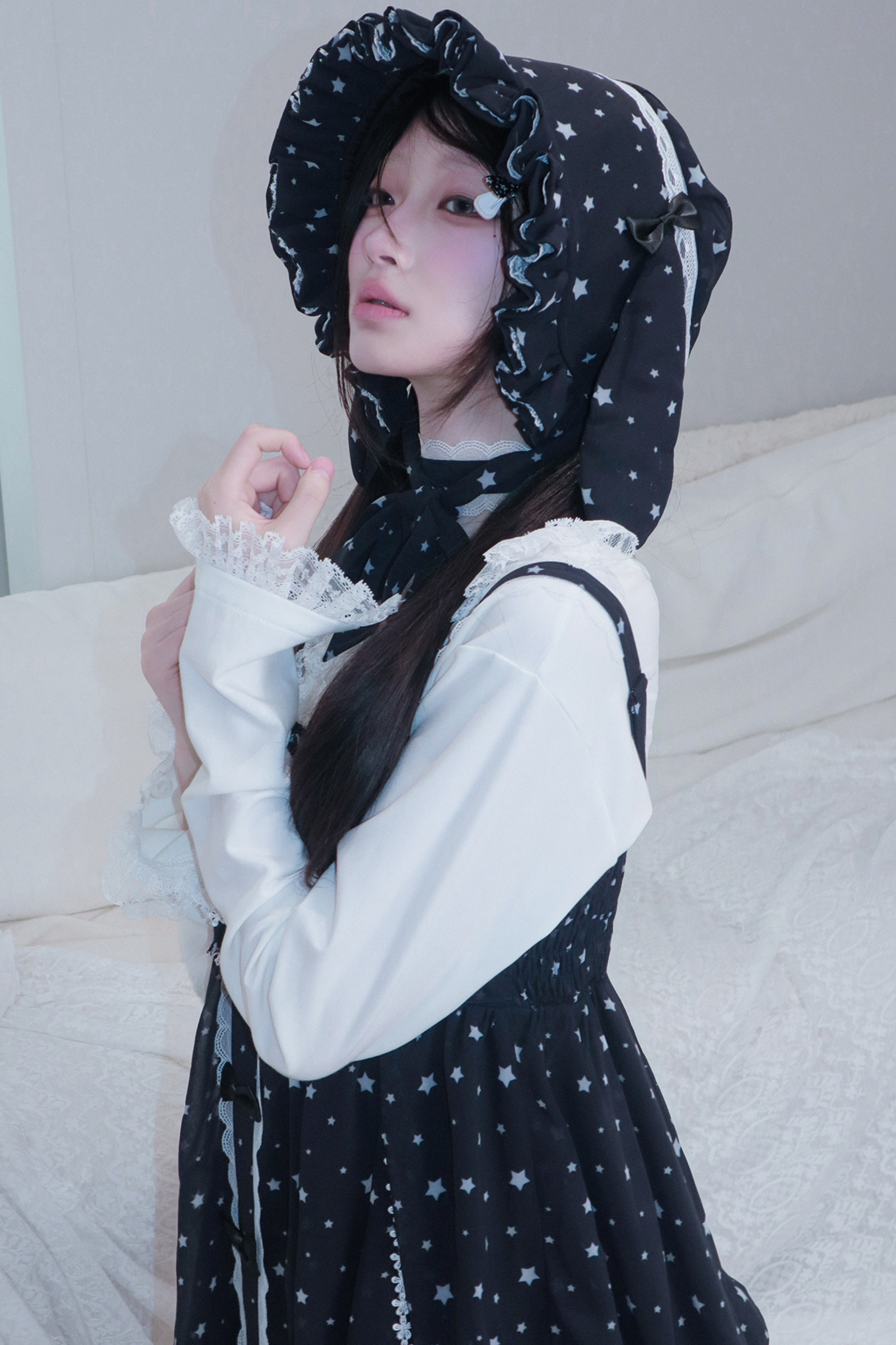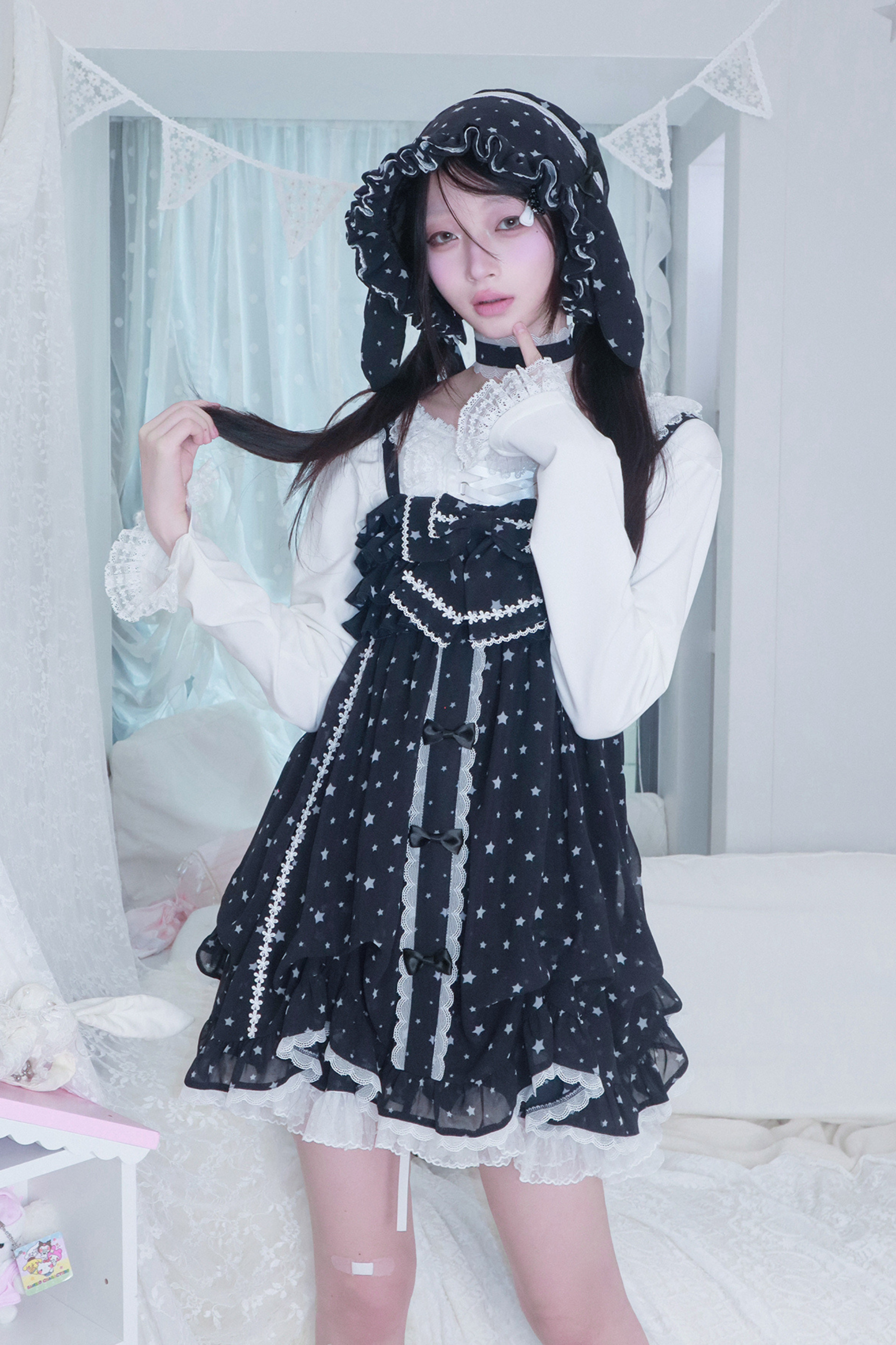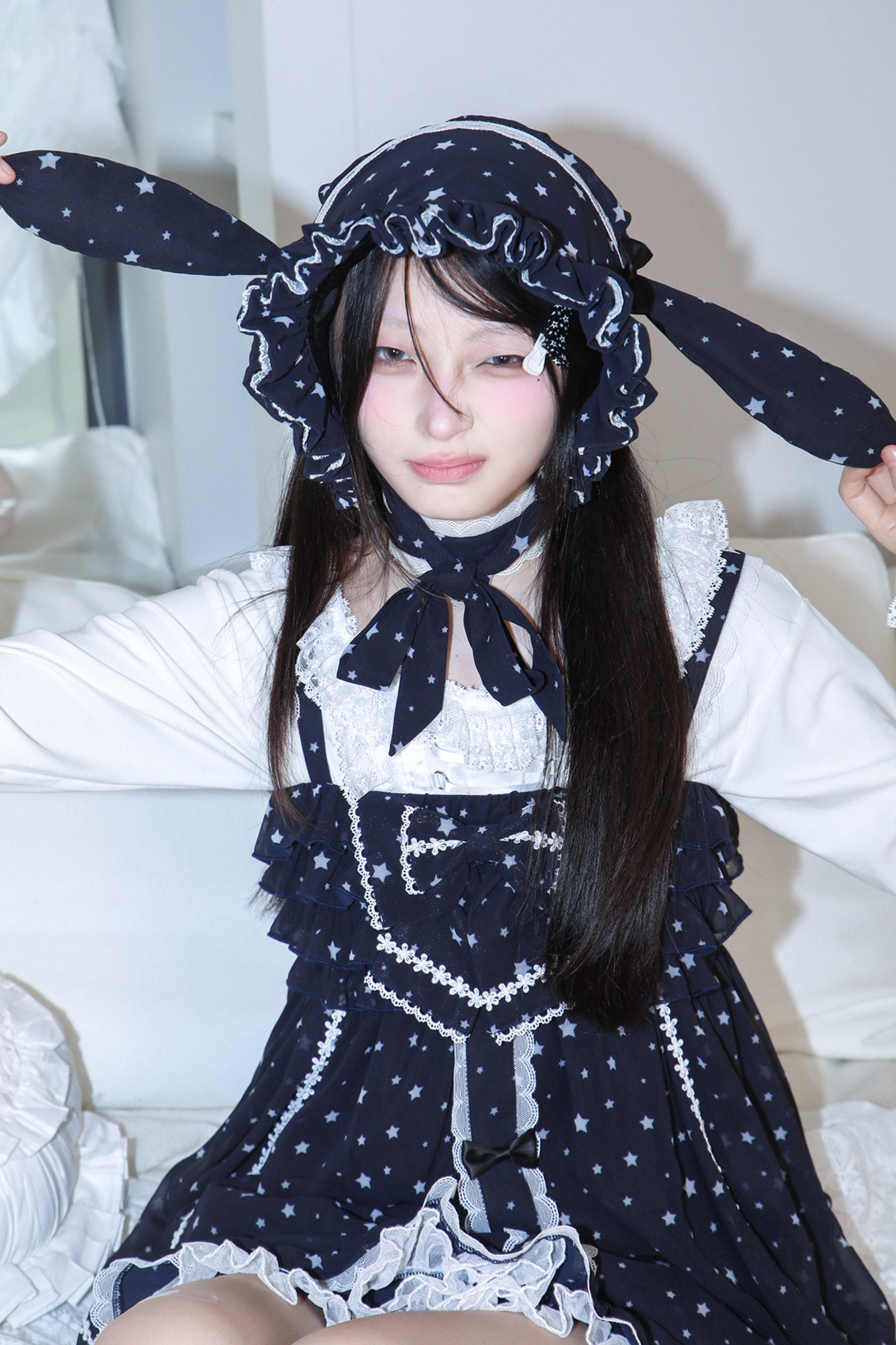ドットシフォンサンドレス+ラビットハット