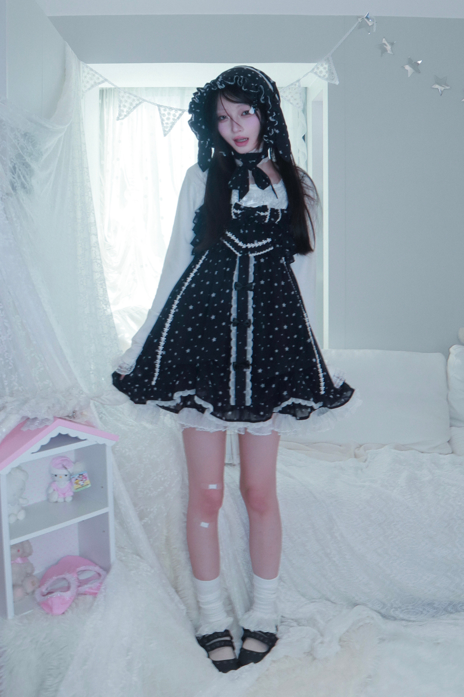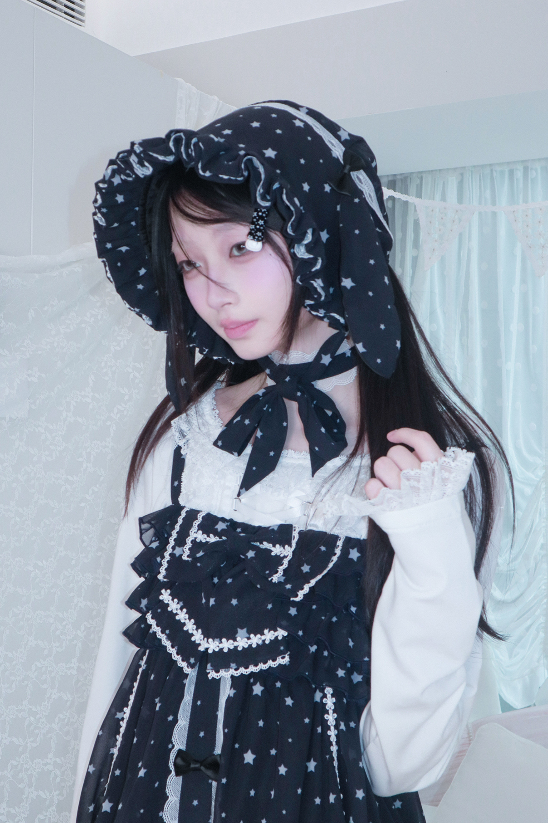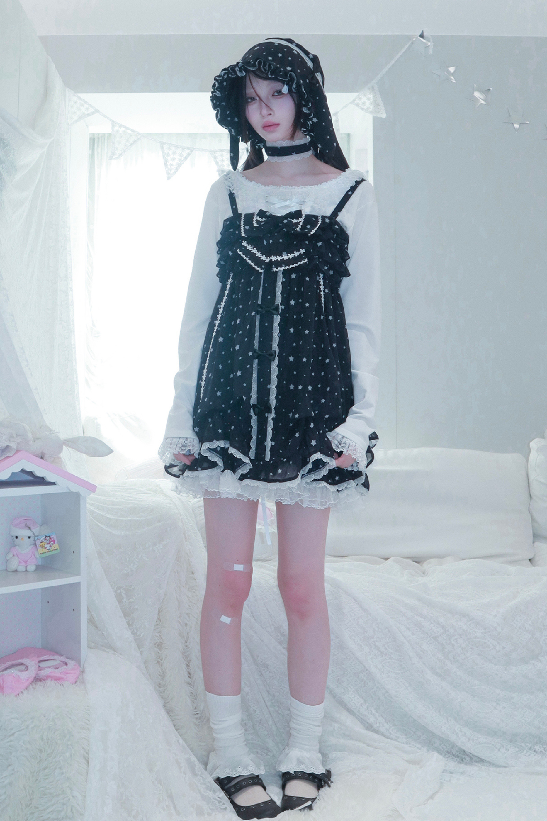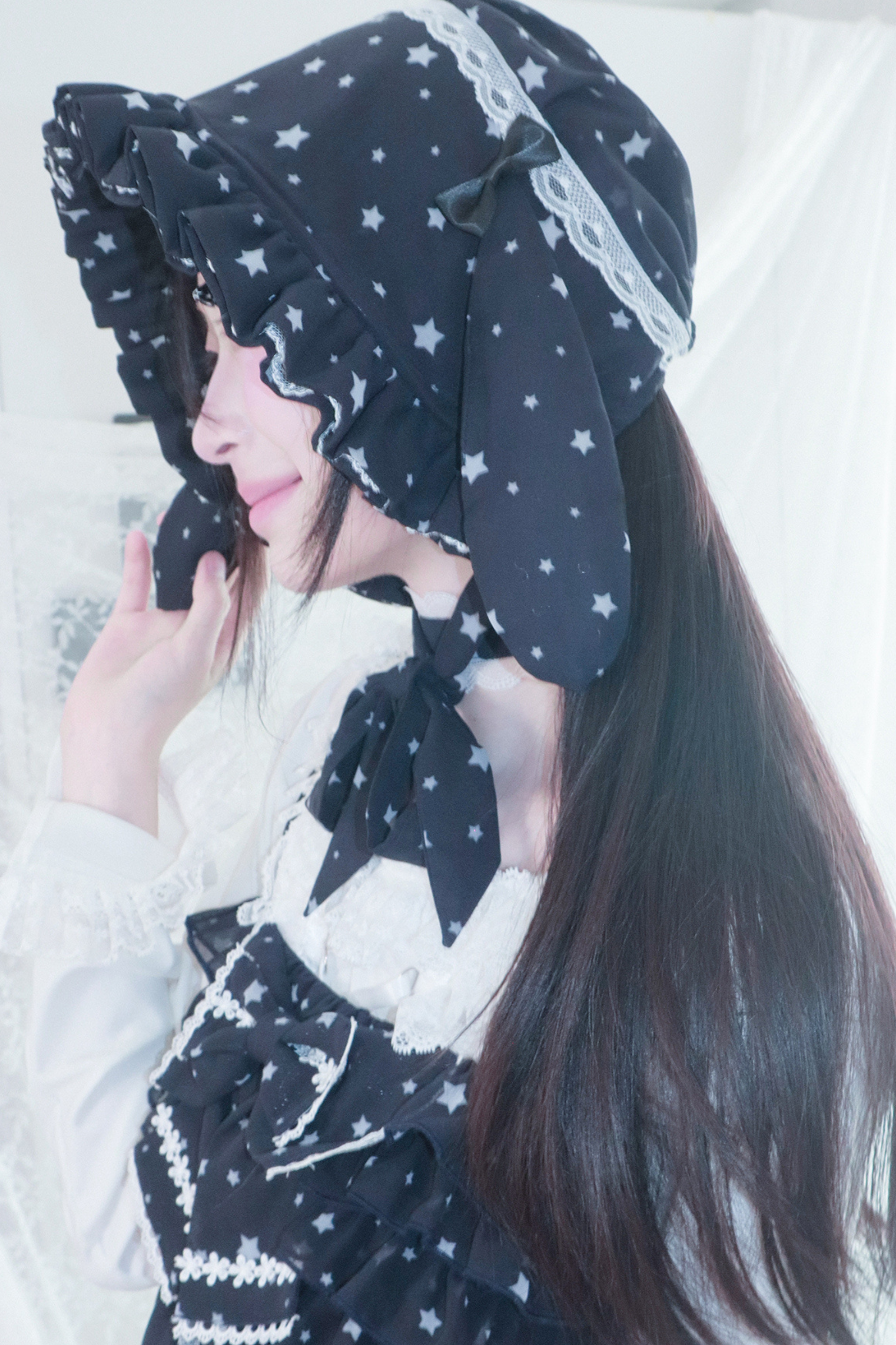 ドットシフォンサンドレス+ラビットハット