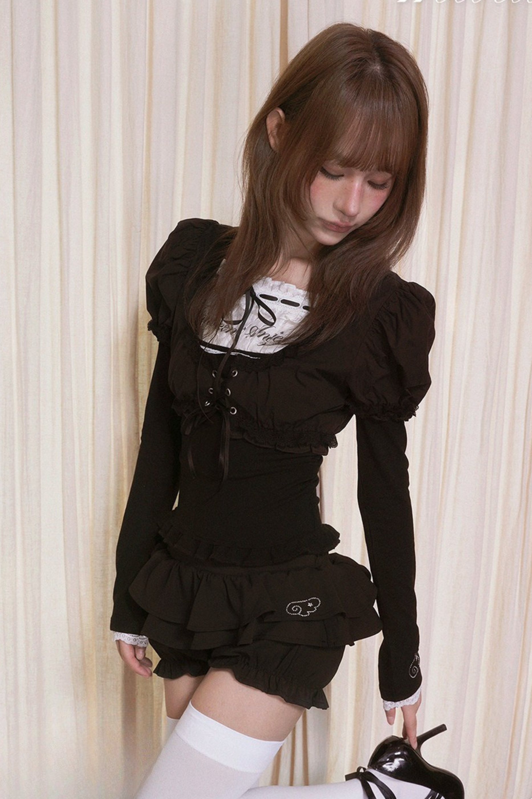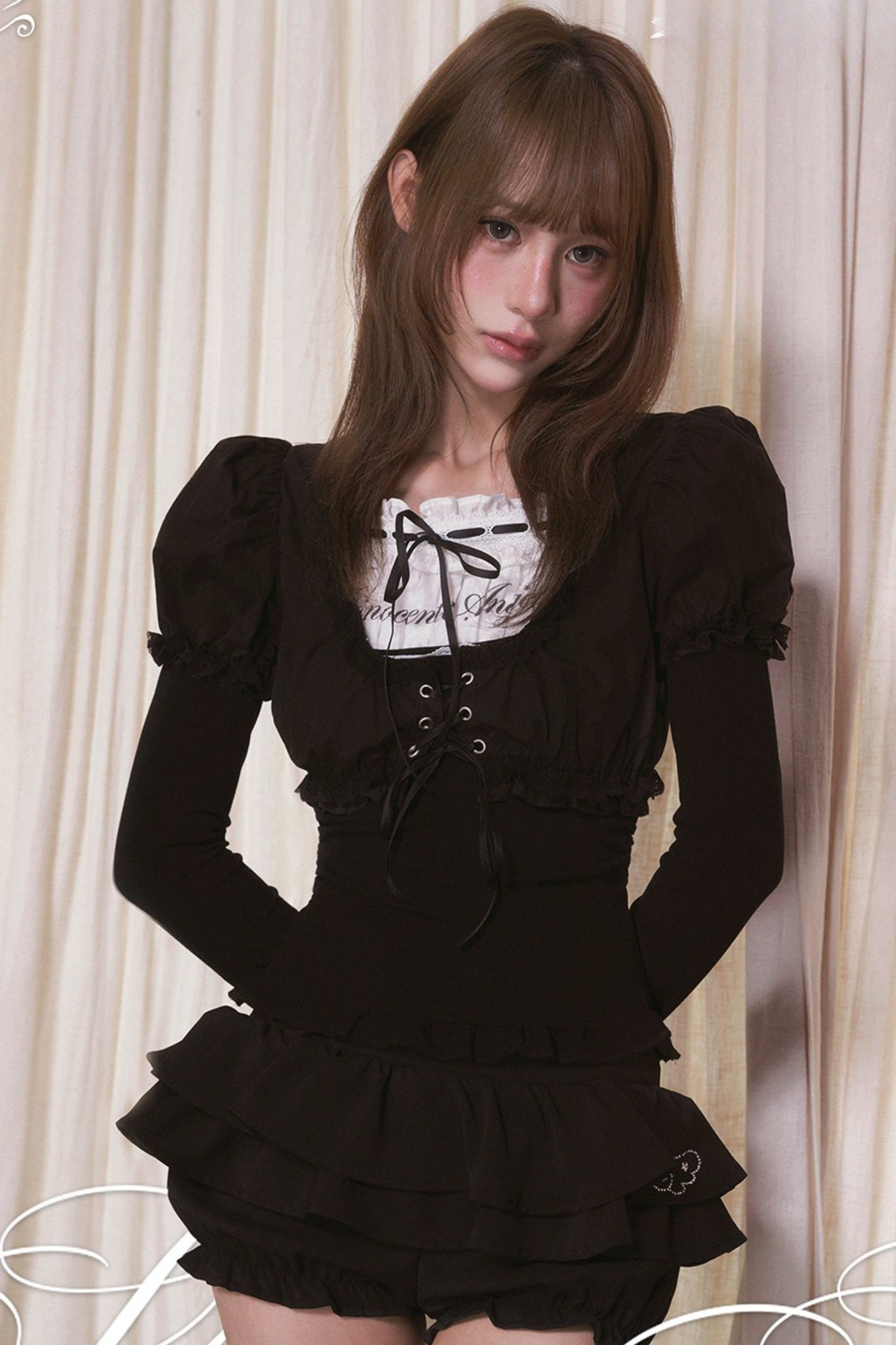 ❤ ドローストリングレースアップトップス+キャミソール❤