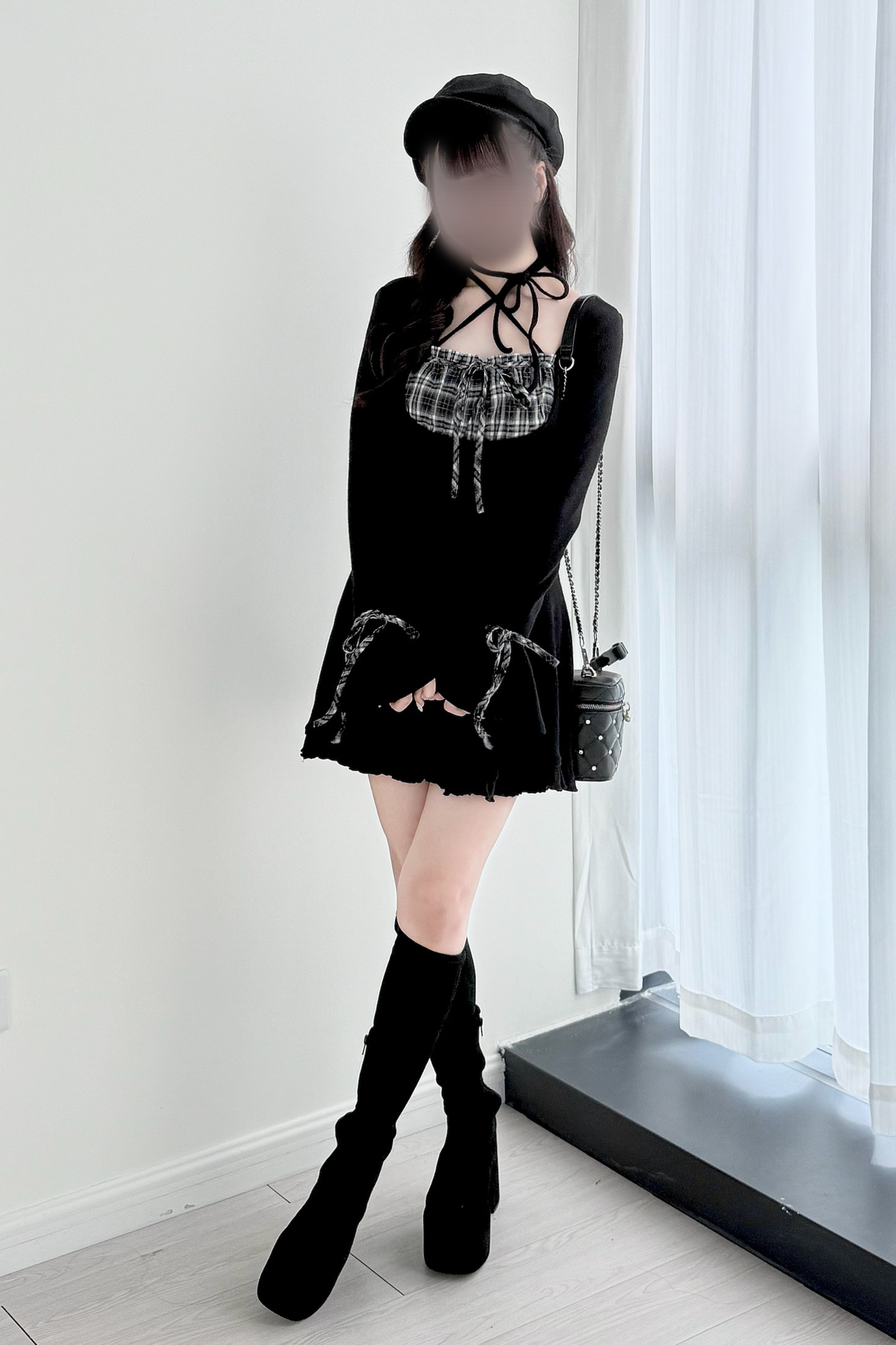 チェックフレアニットワンピース