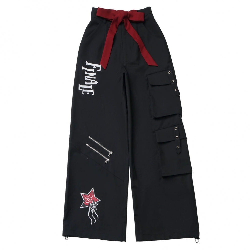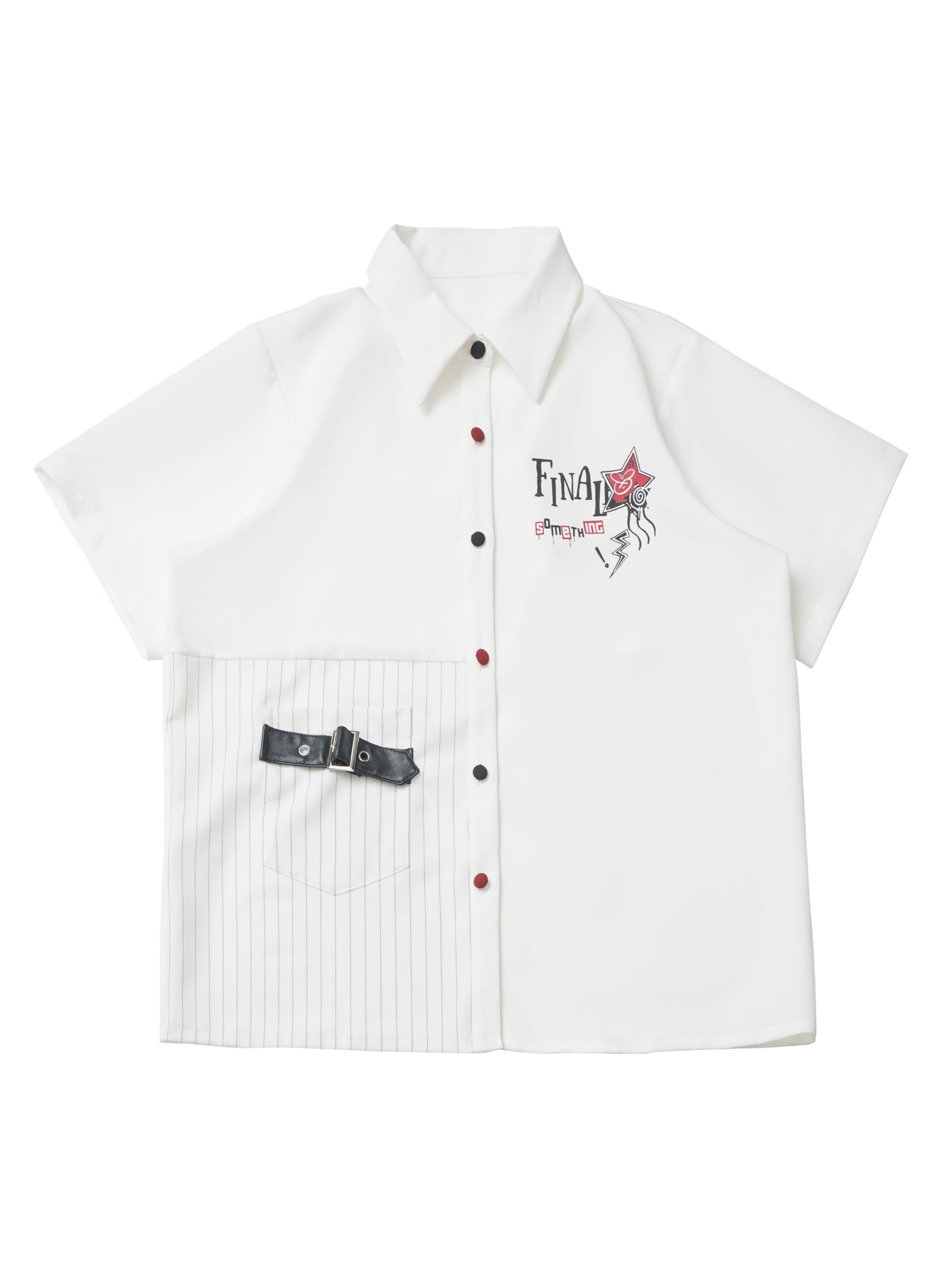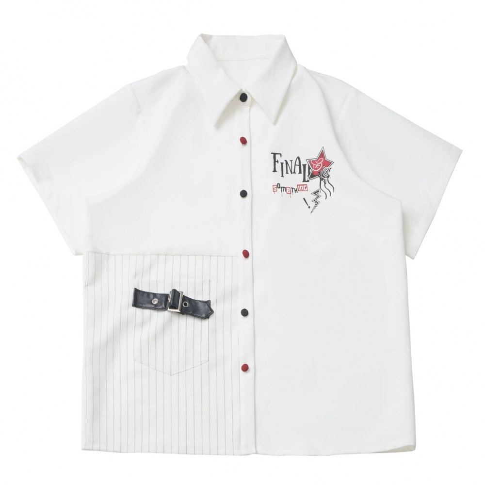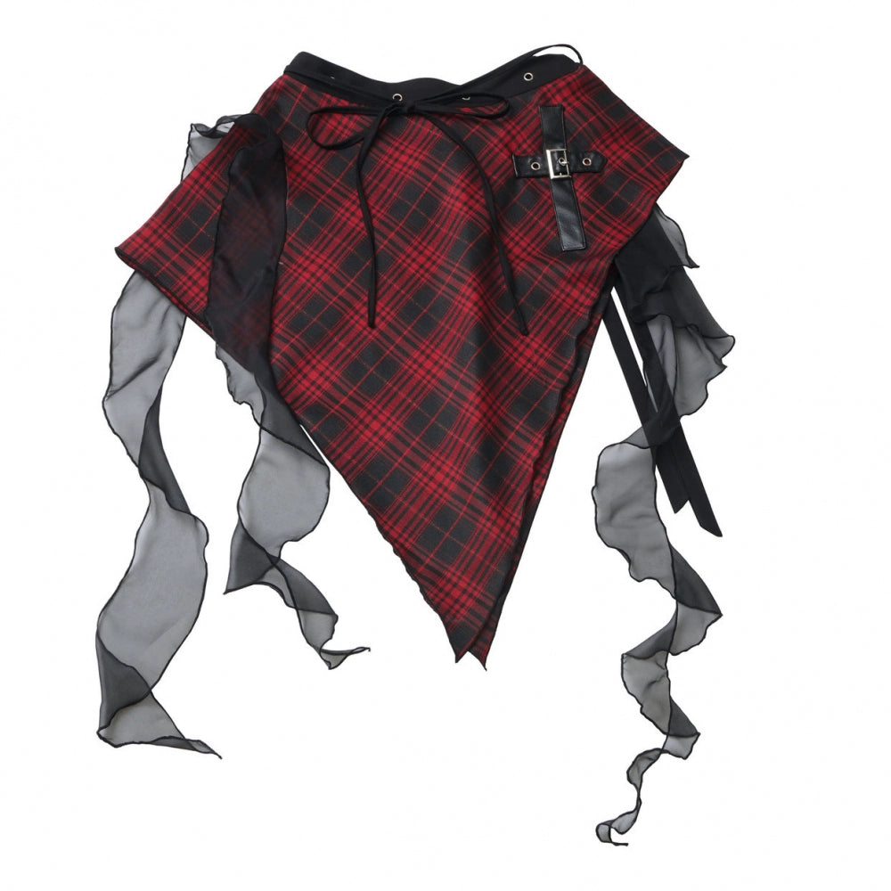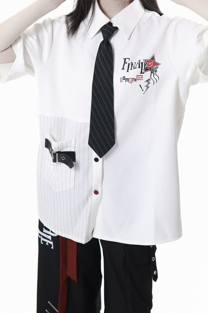 コントラストシャツ+チェックスカート+ブラックスカート+ワイドパンツ+ネクタイ