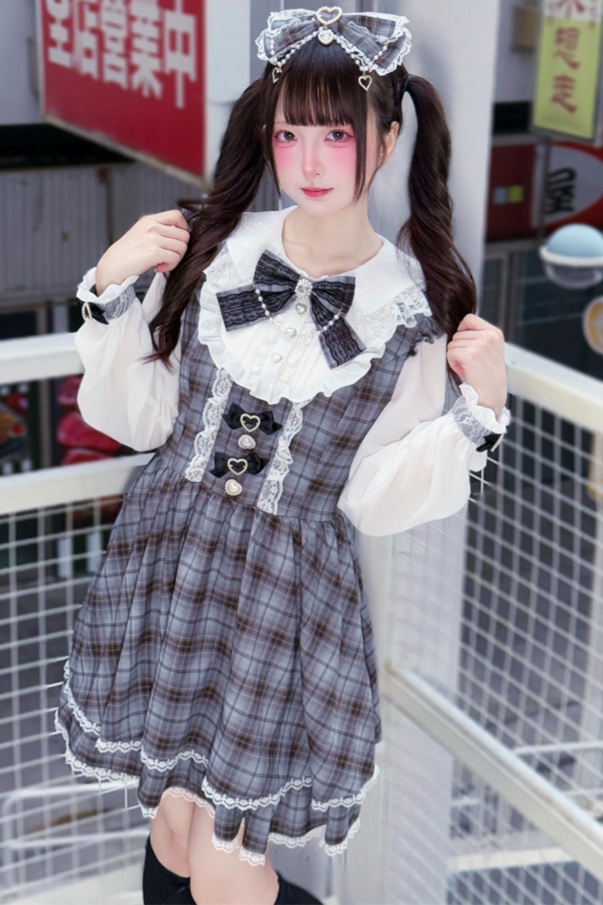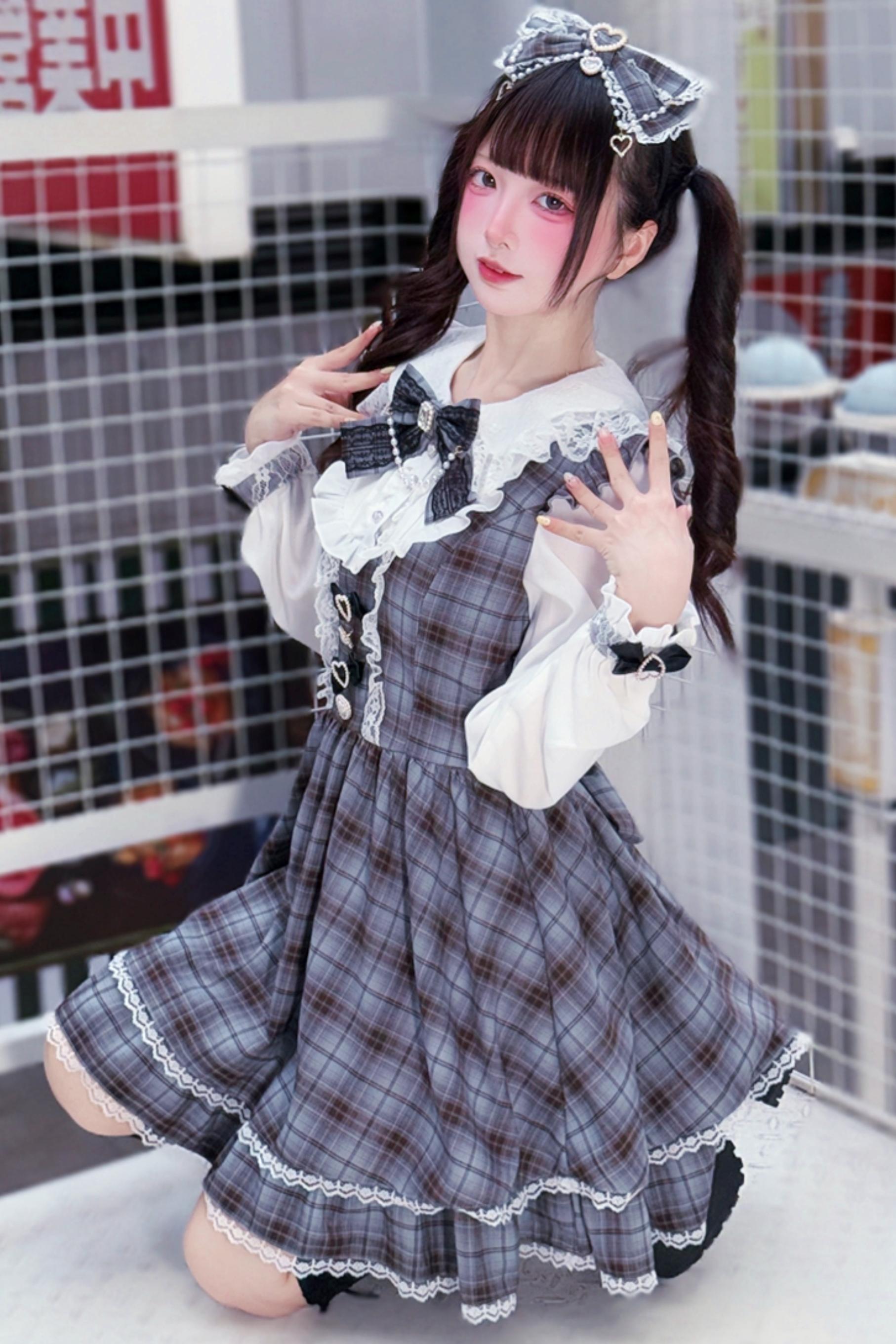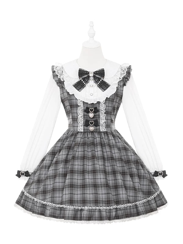 ❤Sweet Girly Grey Check Ribbon Dress❤
