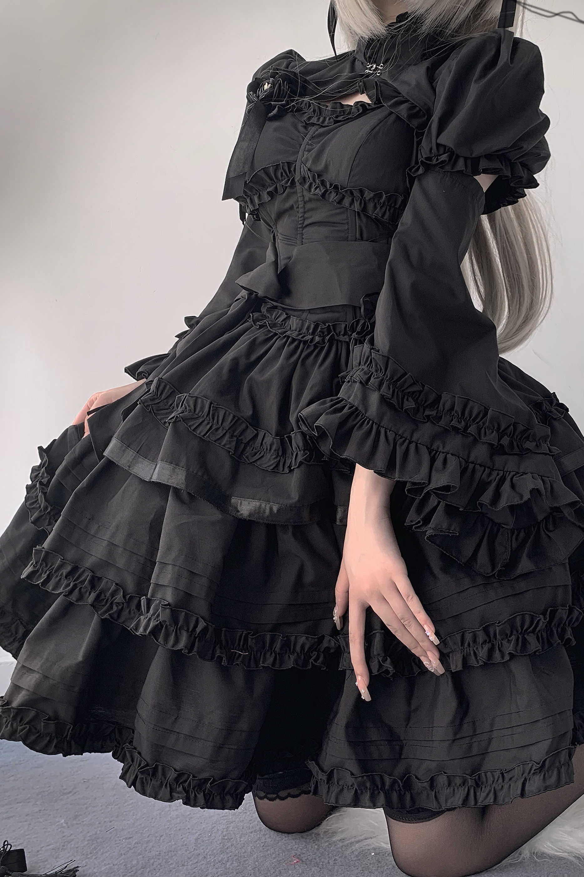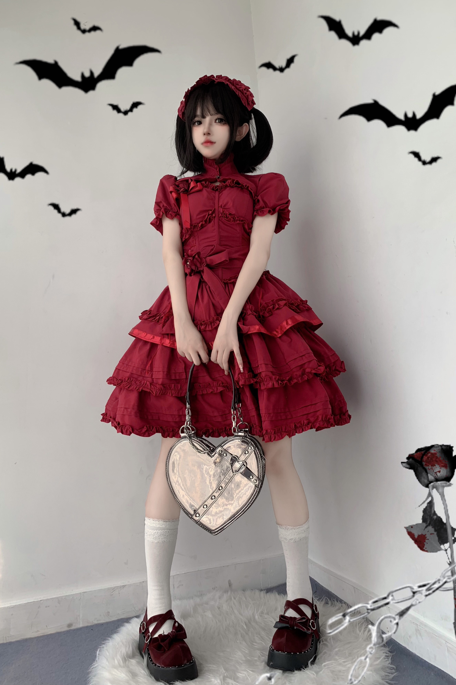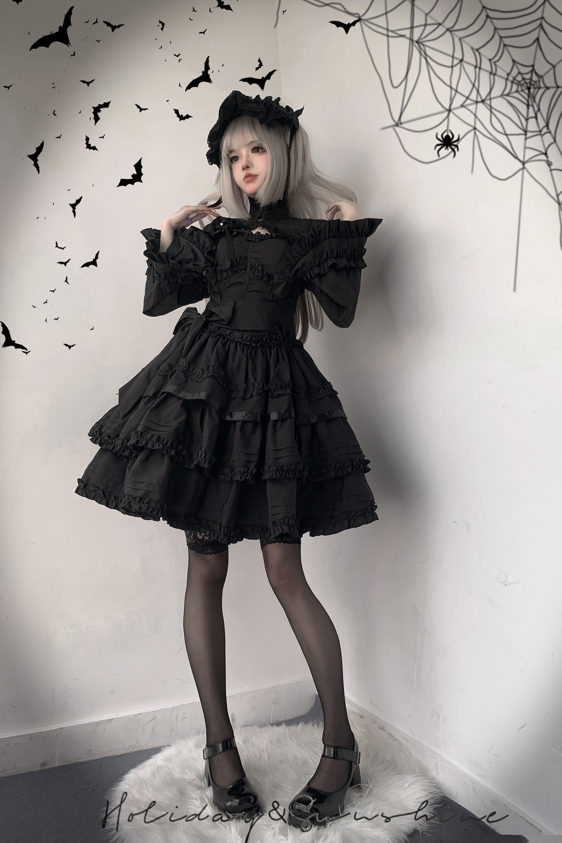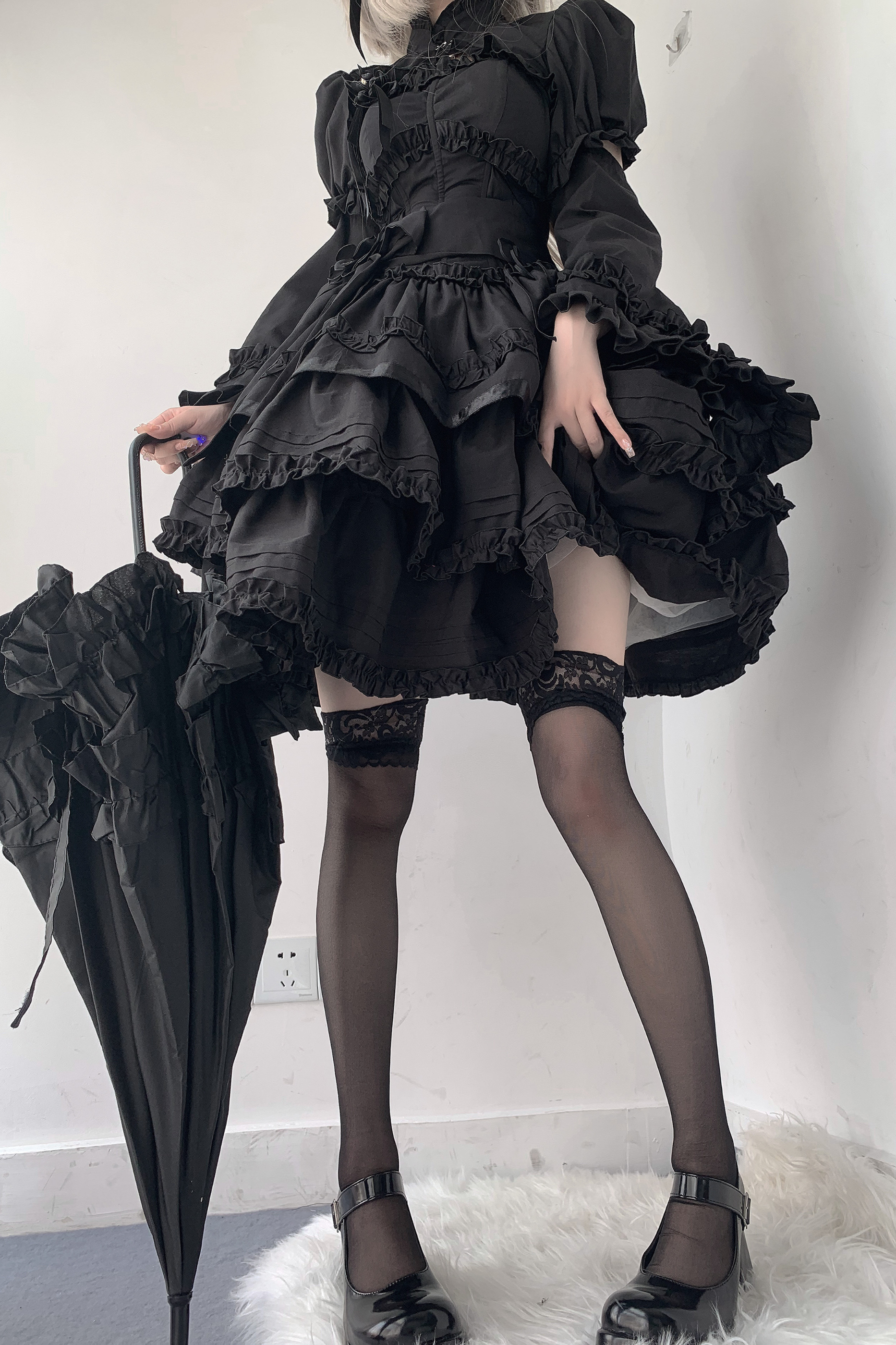 ゴシックレトロヘリンボーンウエストスリミングロリータドレス