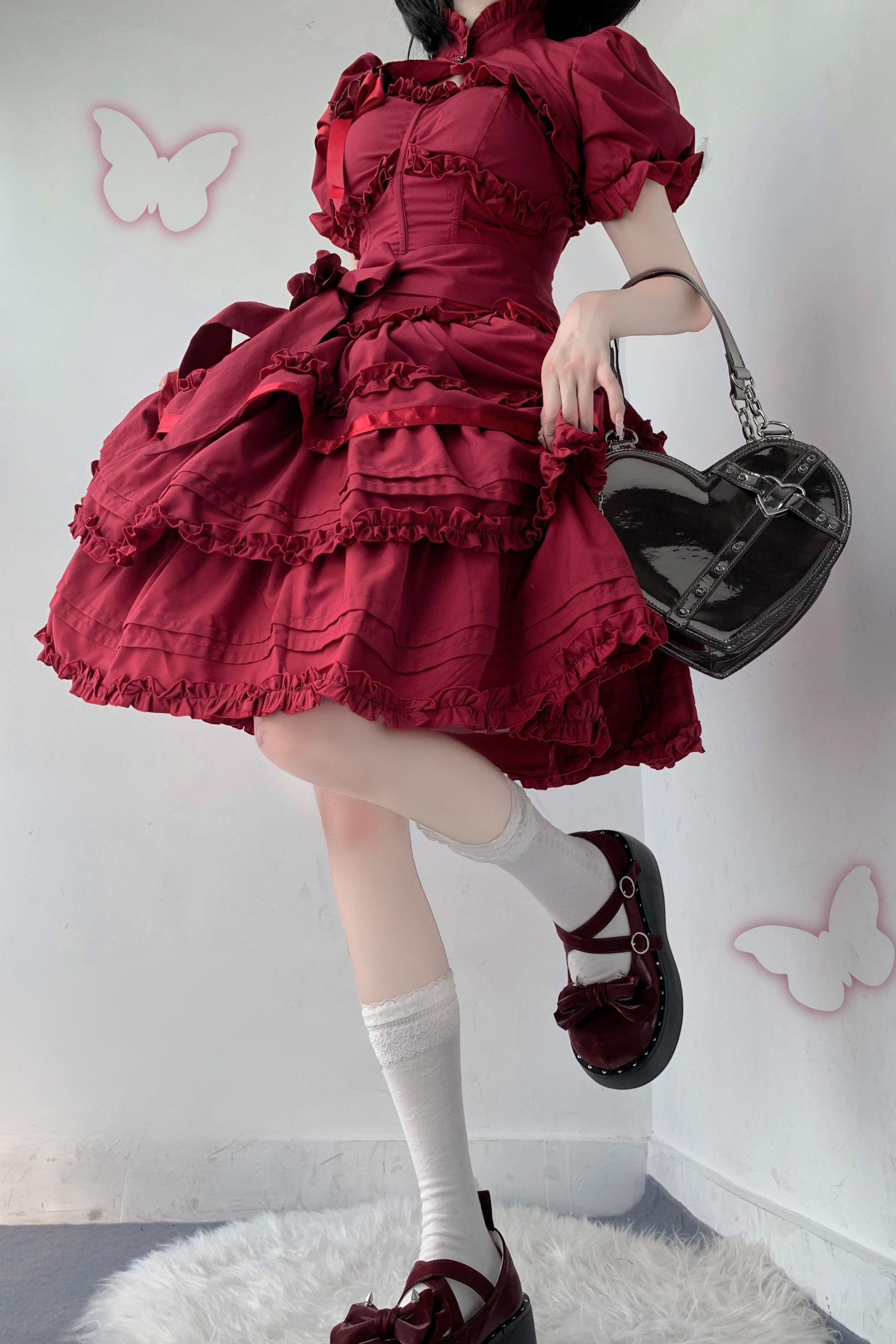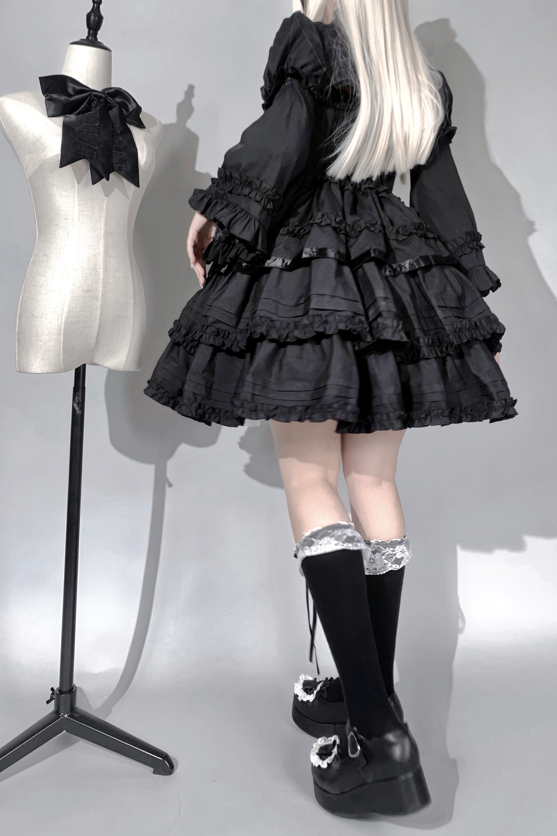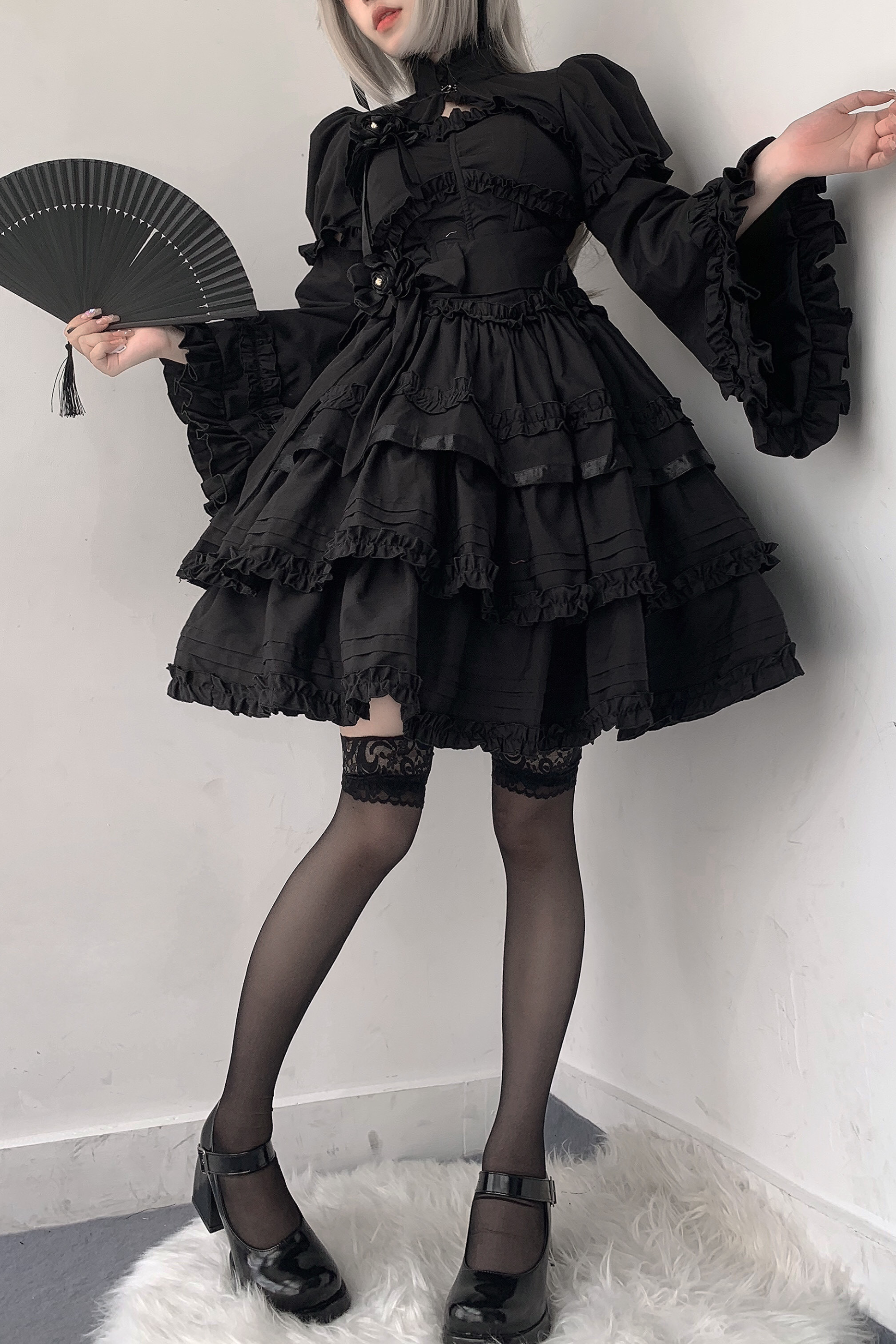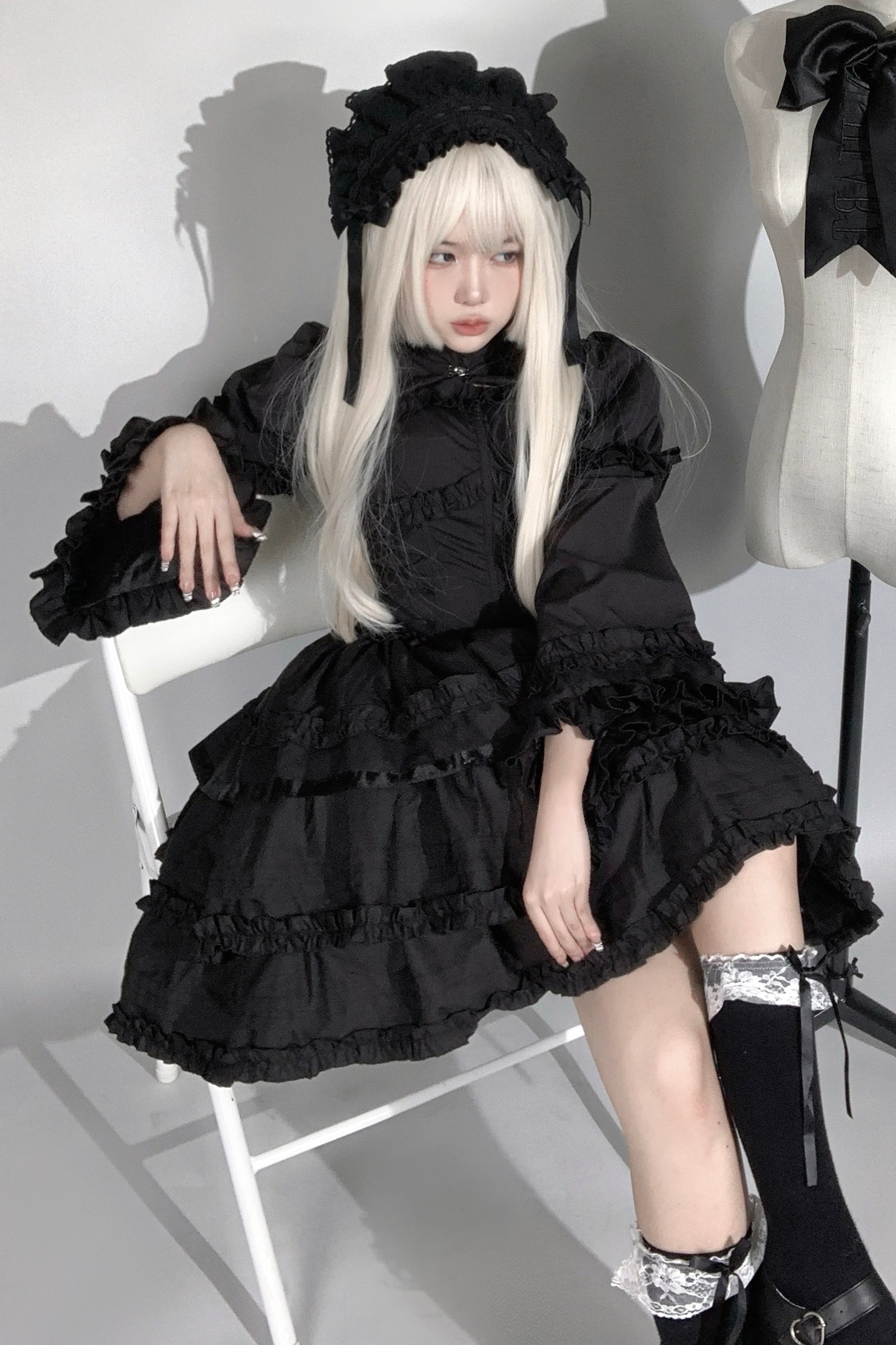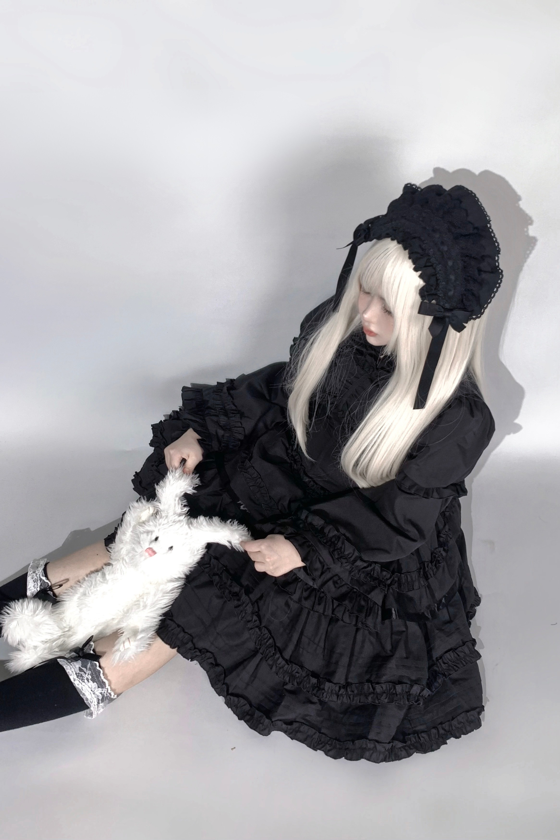 ゴシックレトロヘリンボーンウエストスリミングロリータドレス