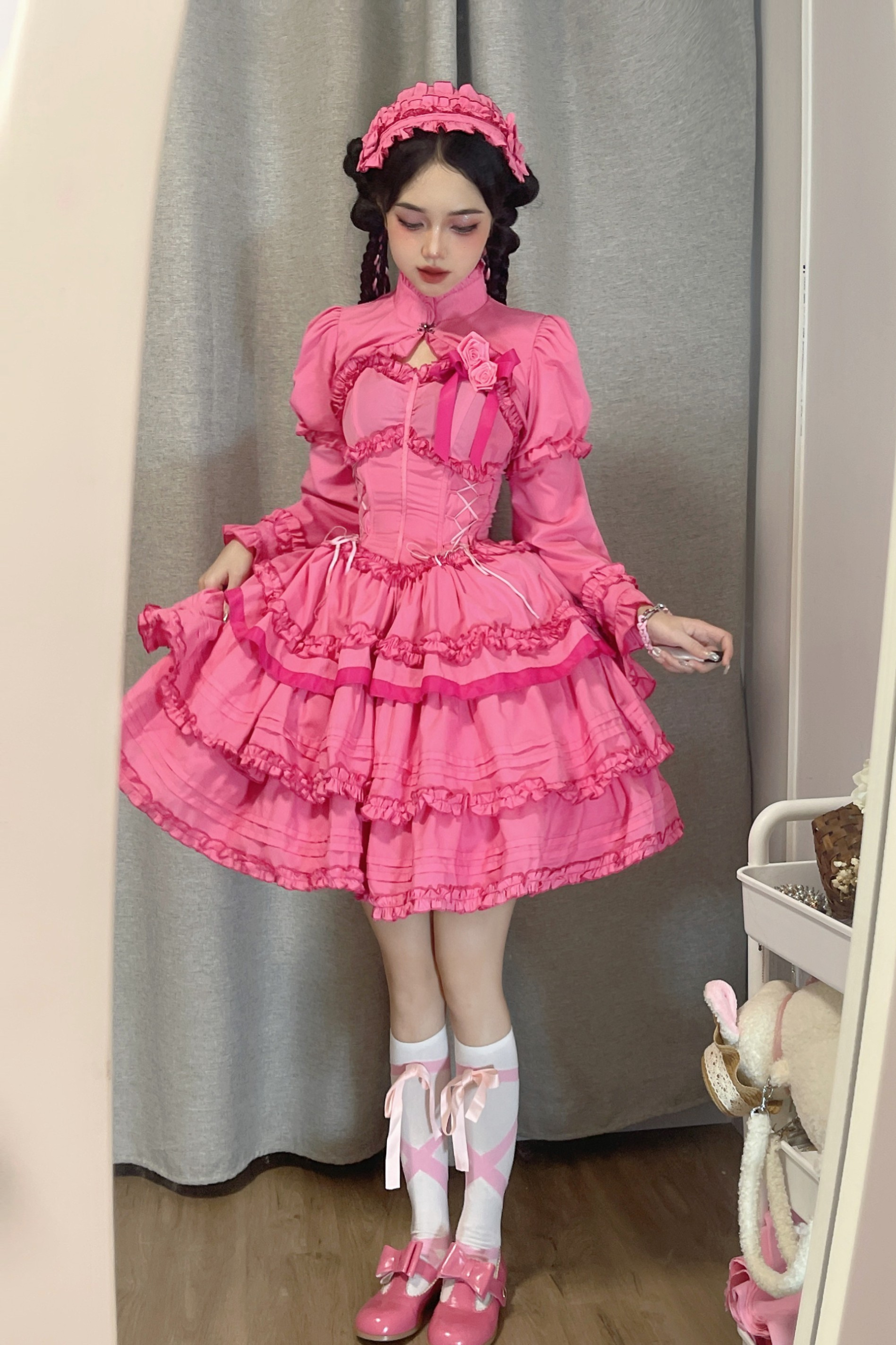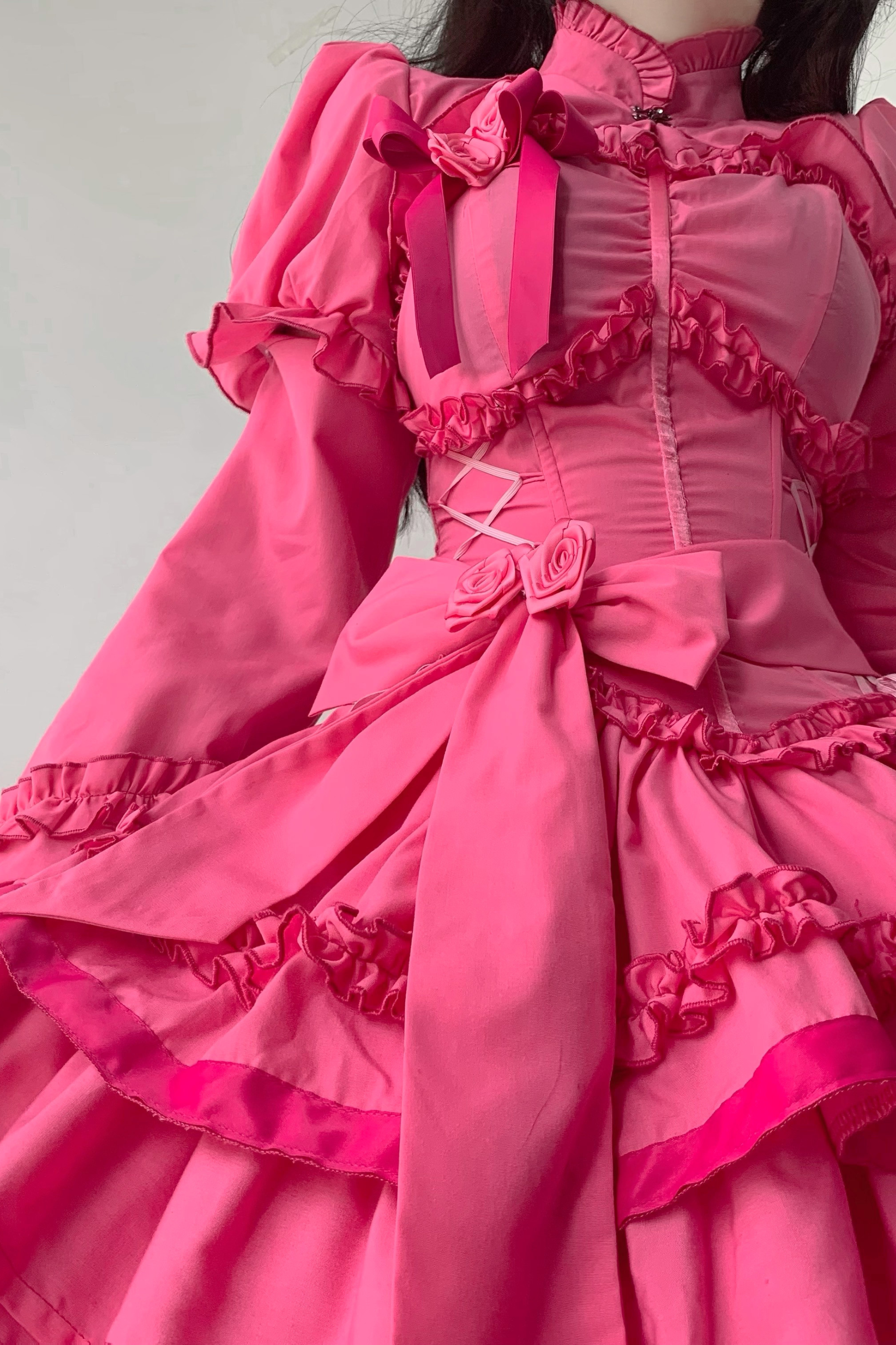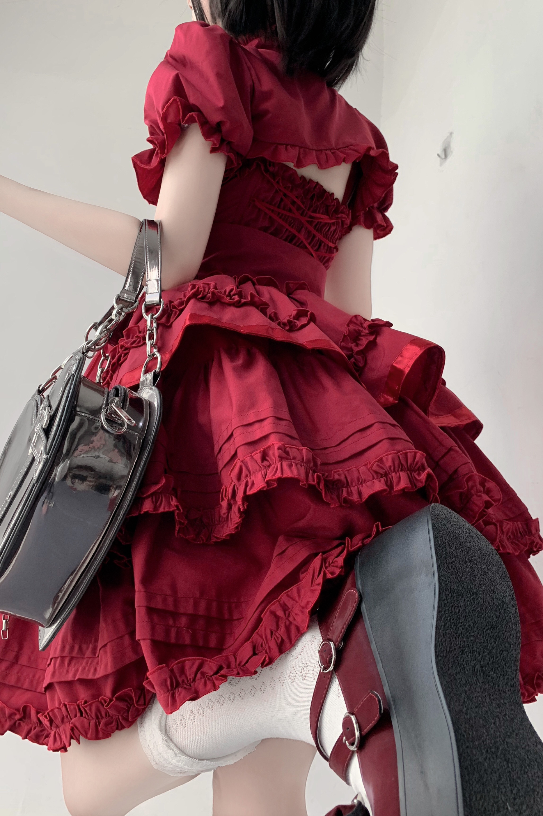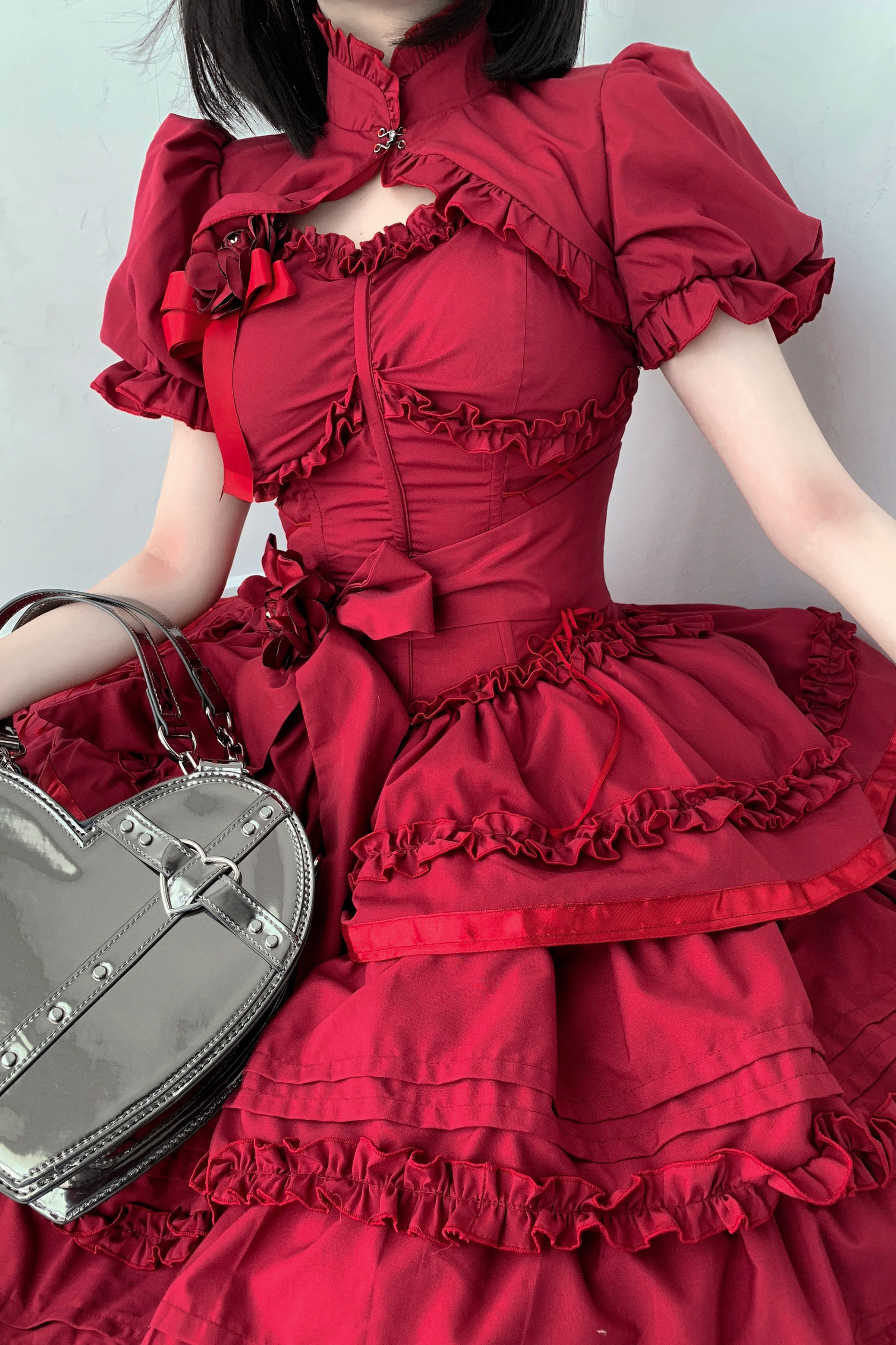 ゴシックレトロヘリンボーンウエストスリミングロリータドレス
