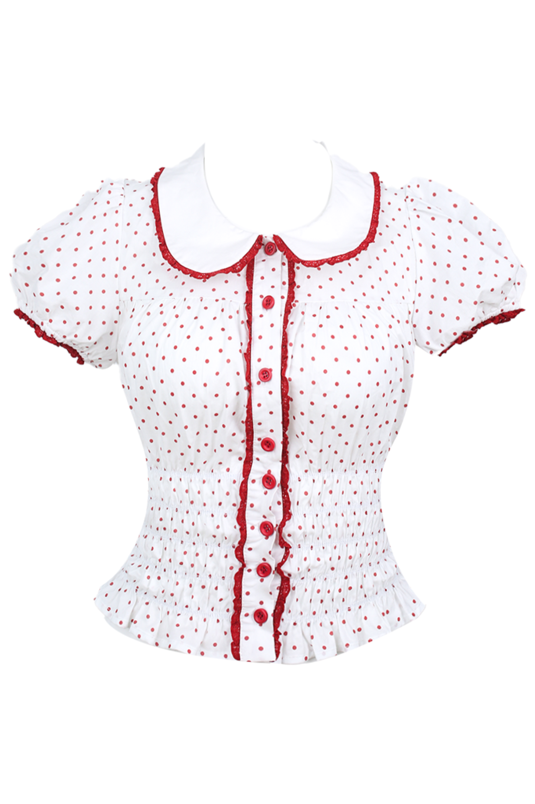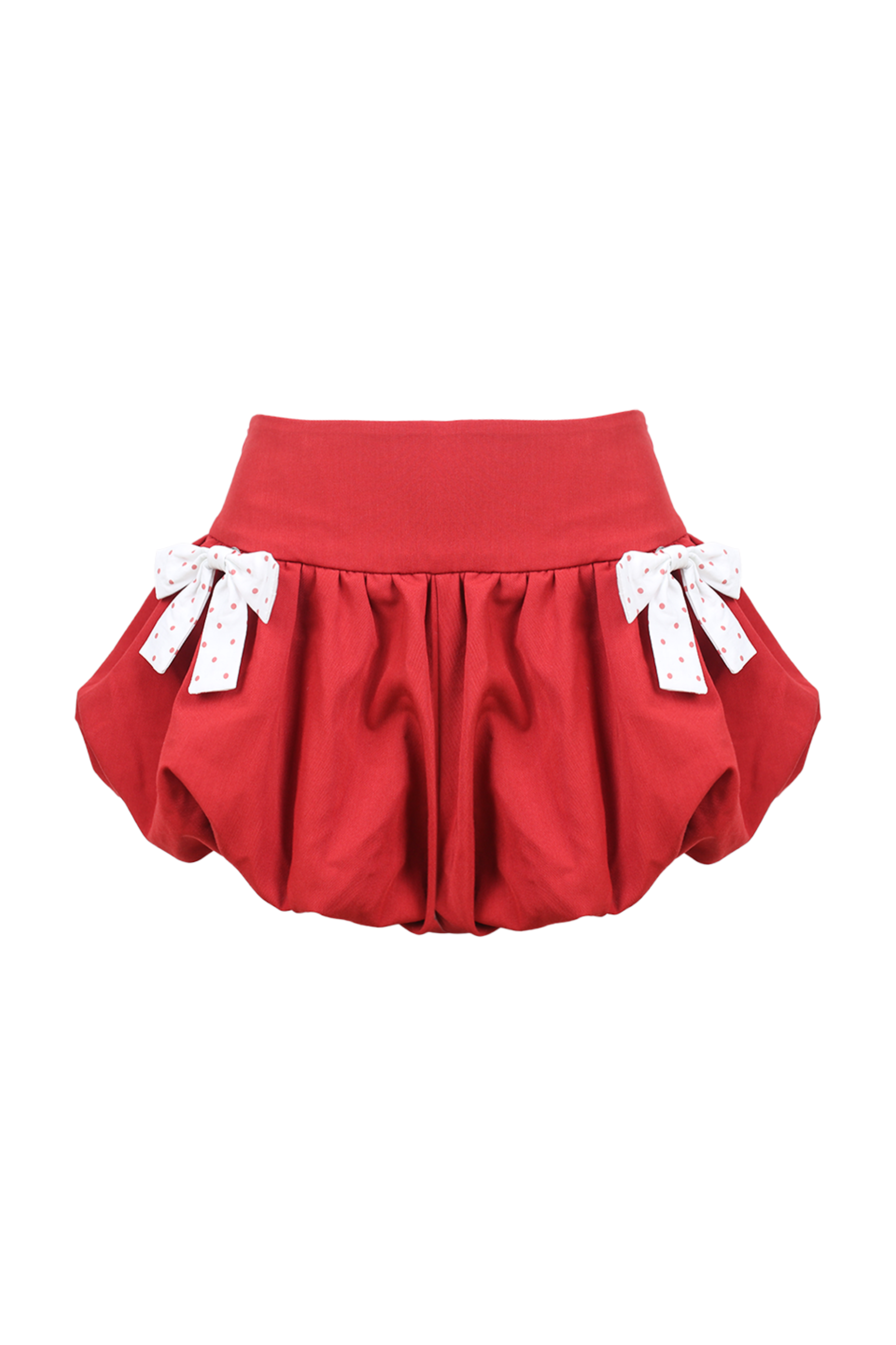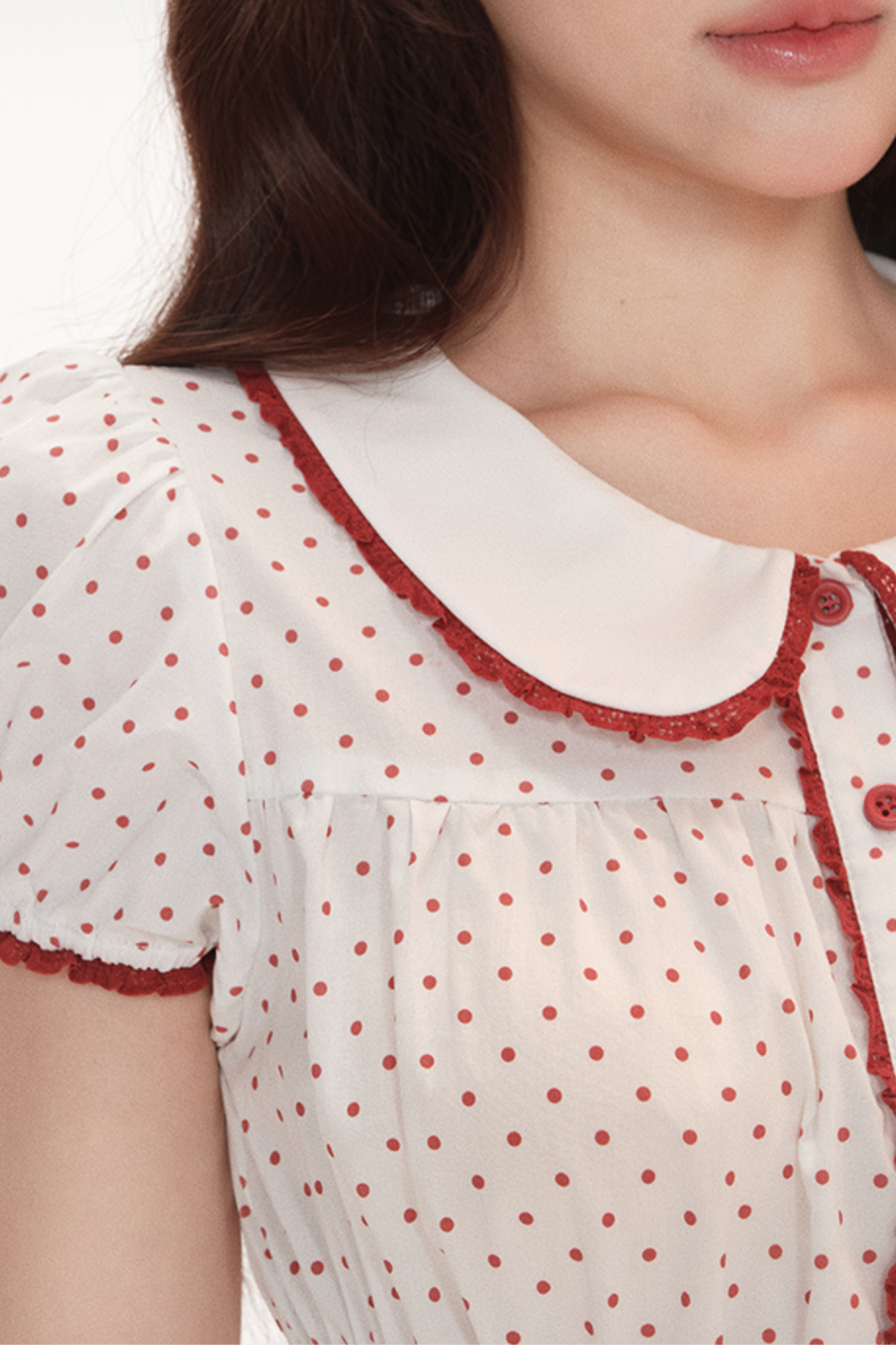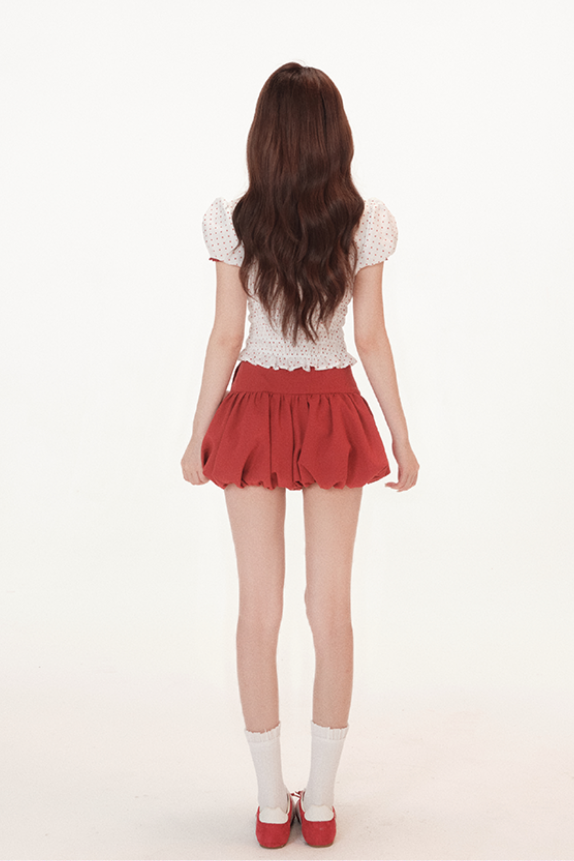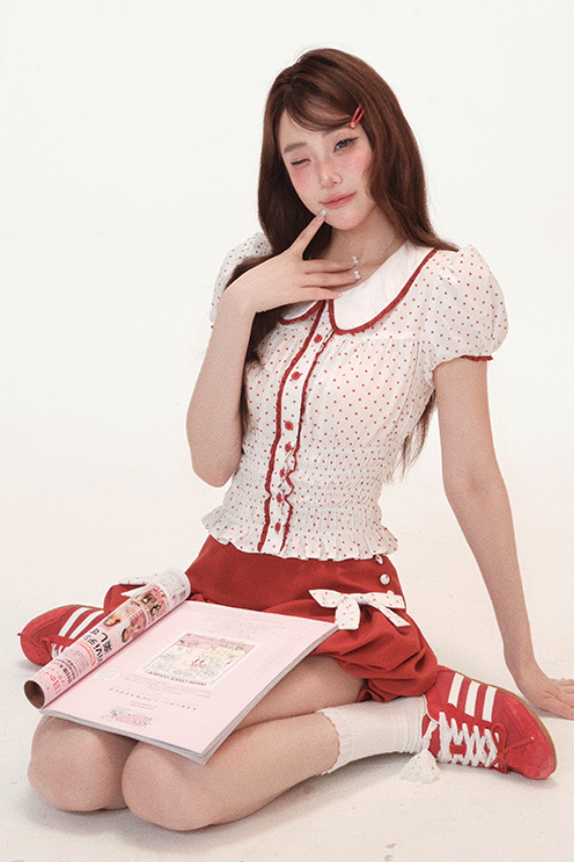 ドットパフスリーブドールシャツ+リボンバルーンスカートパンツ