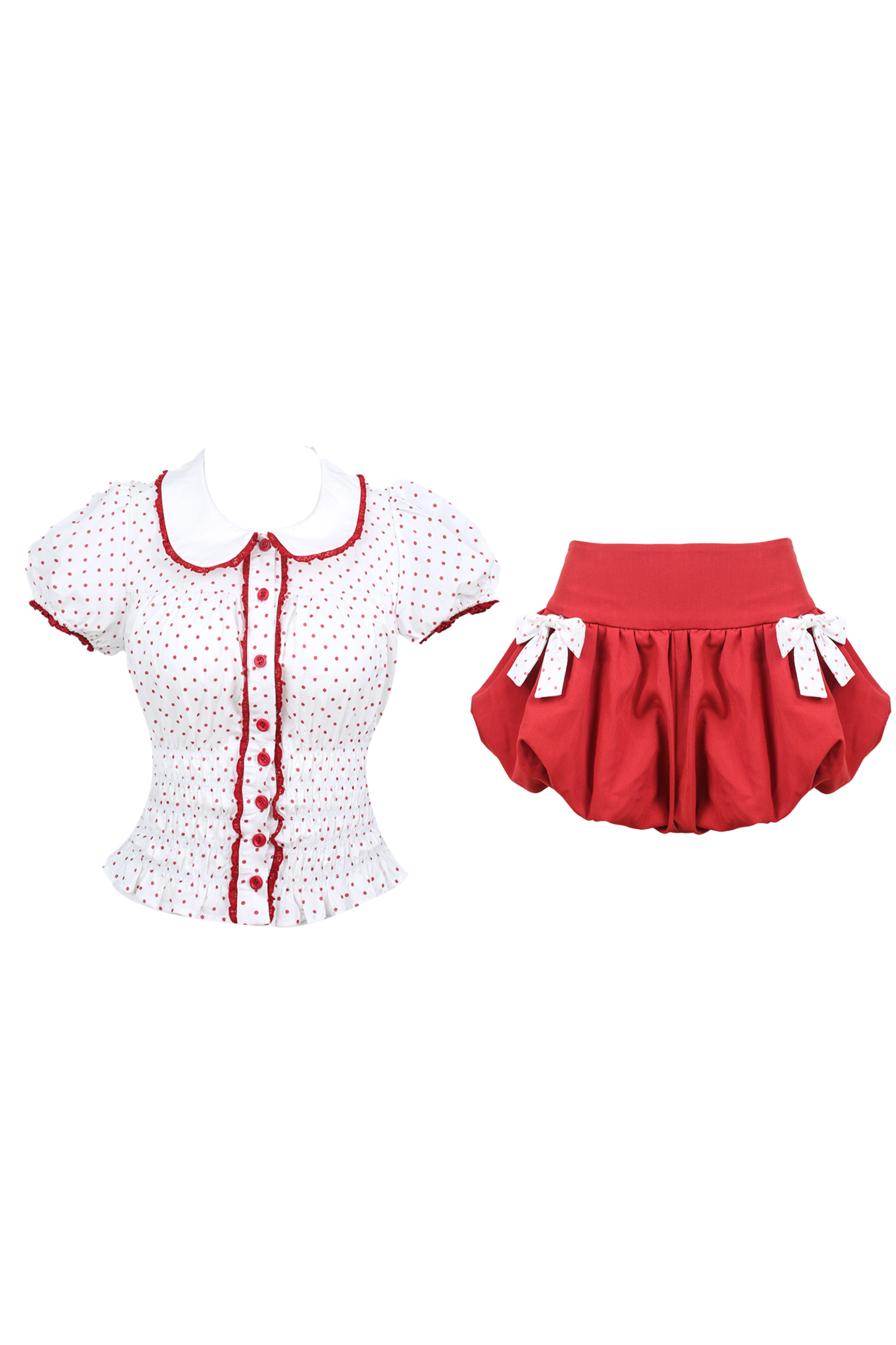 ❤ドットパフスリーブドールシャツ+リボンバルーンスカートパンツ❤