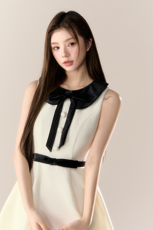 地雷キュートバイカラーリボンドレス