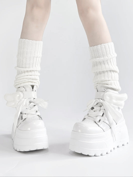 【12月8日予約締切】ブラックホワイトリボンエンジェルプラットフォームパンクサブカルスニーカー
