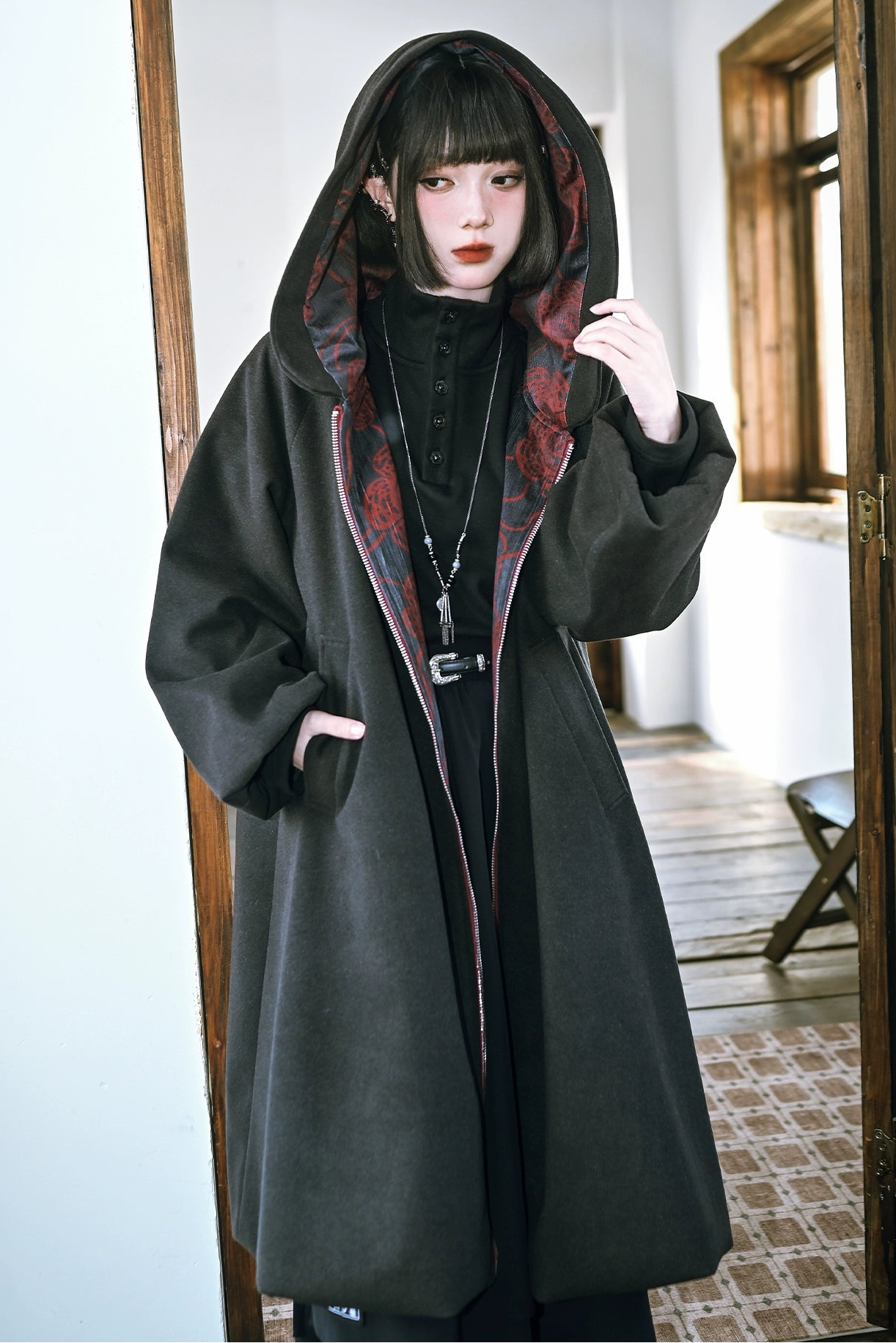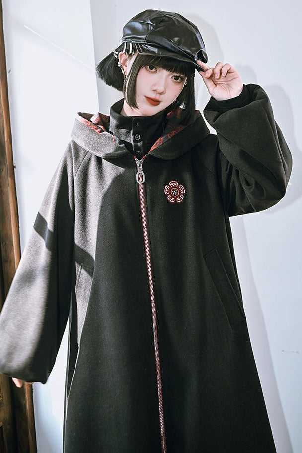 フローラルツイードフーデッドコート