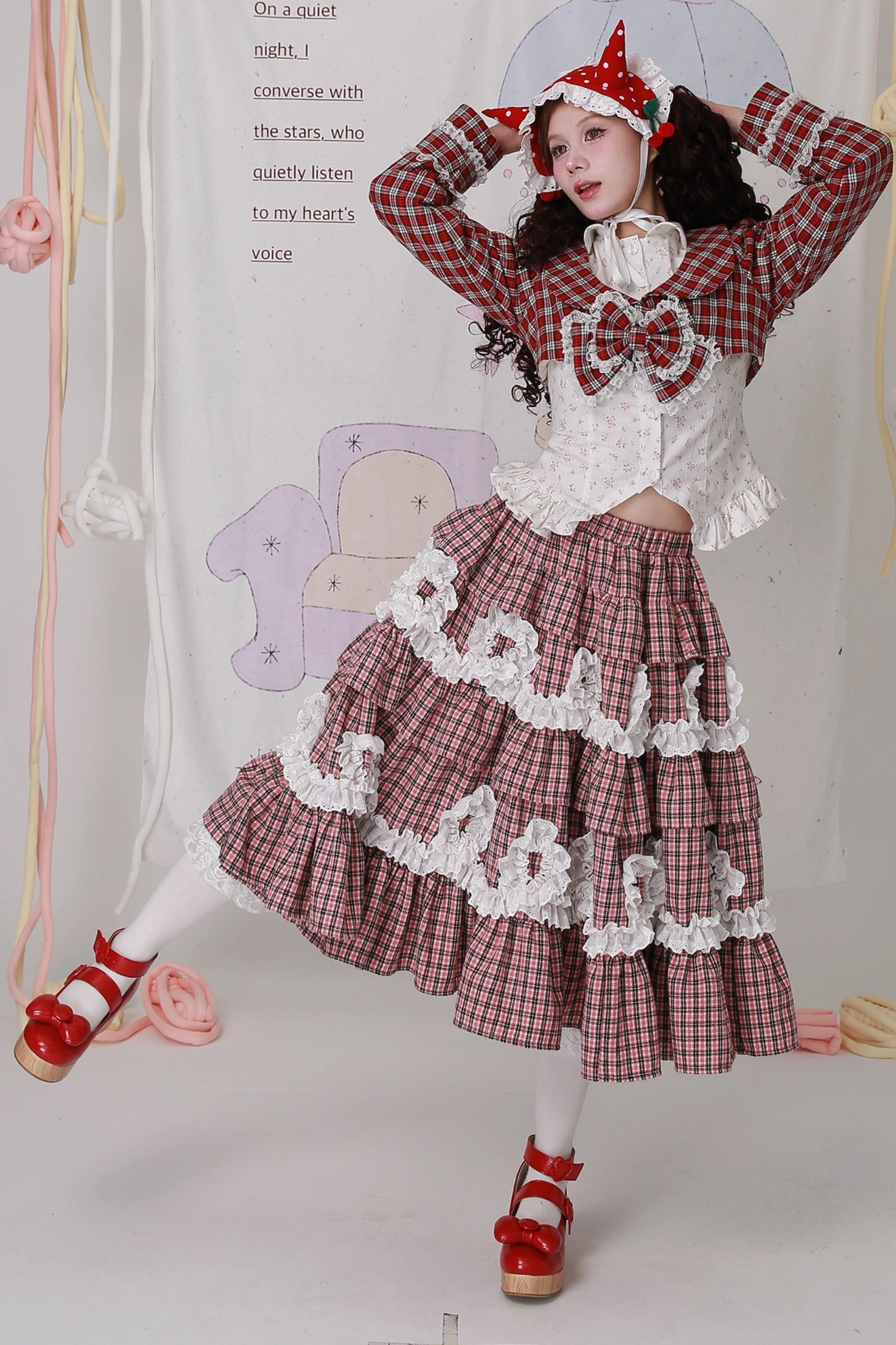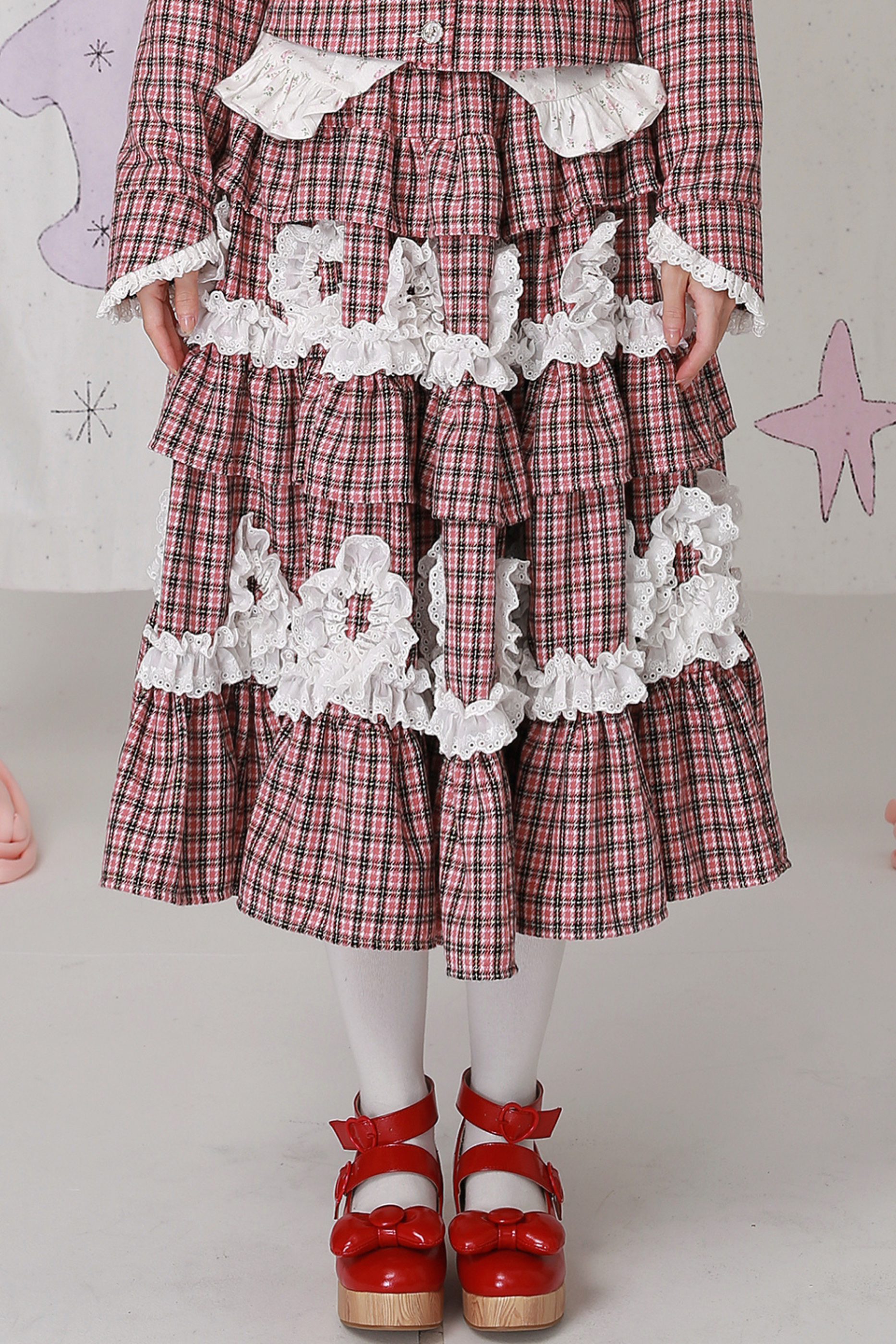 レトロチェックレースティアードロリータスカート