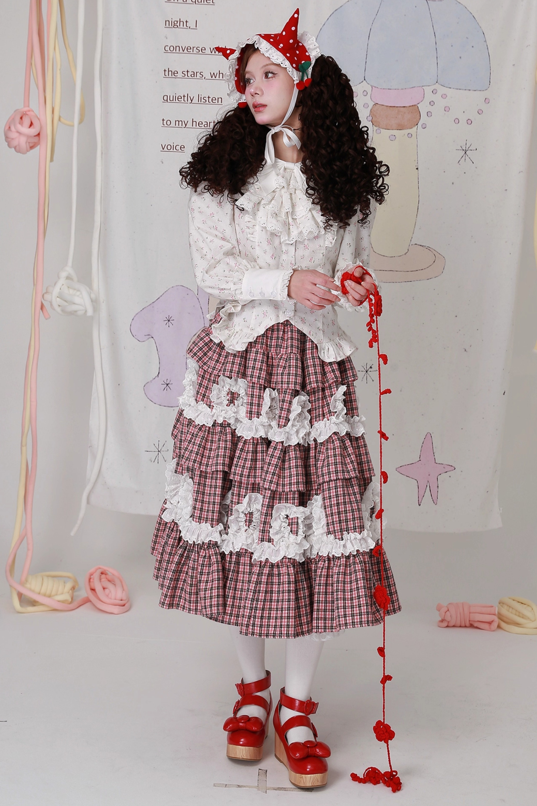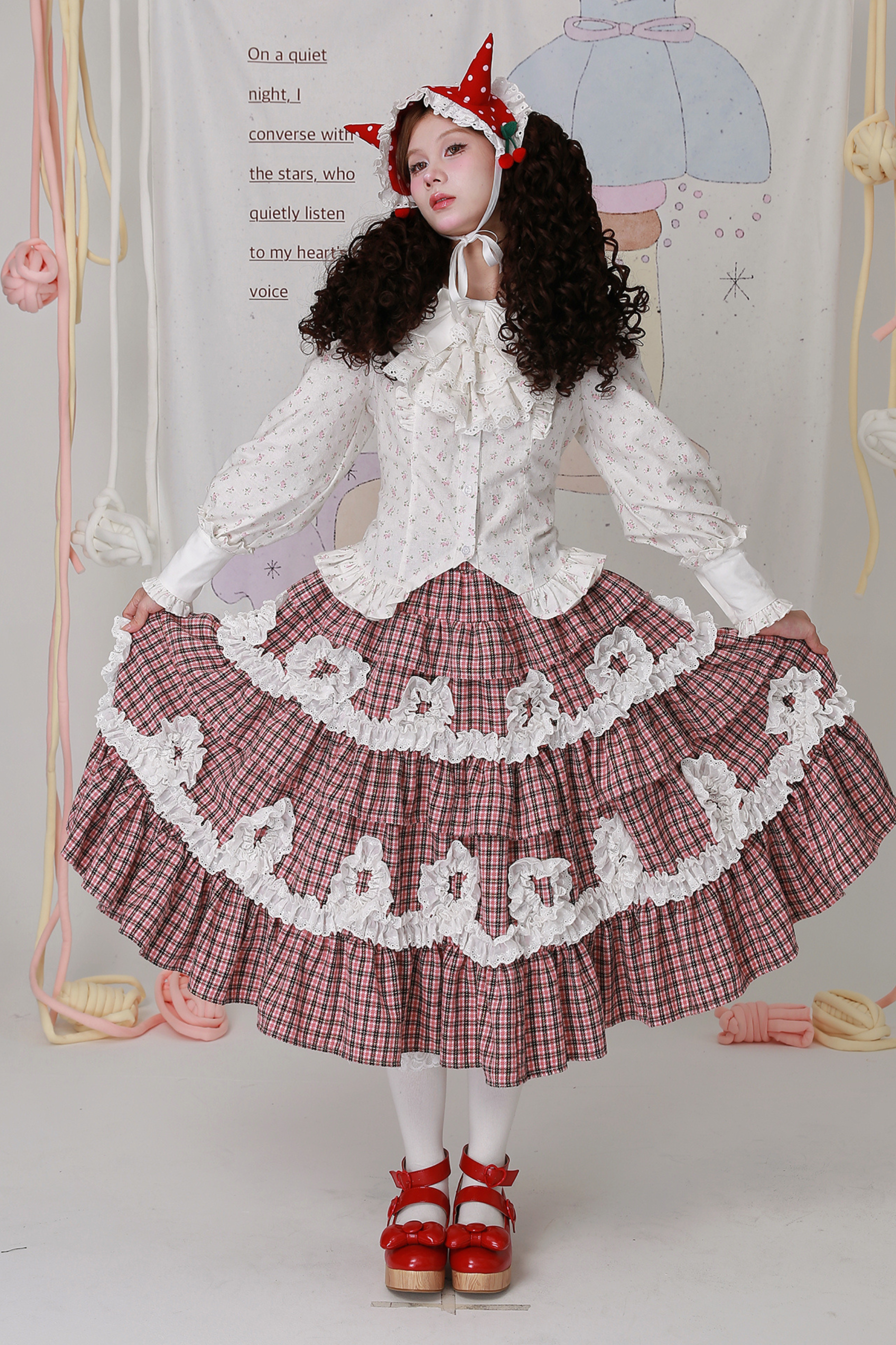 ❤レトロチェックレースティアードロリータスカート❤