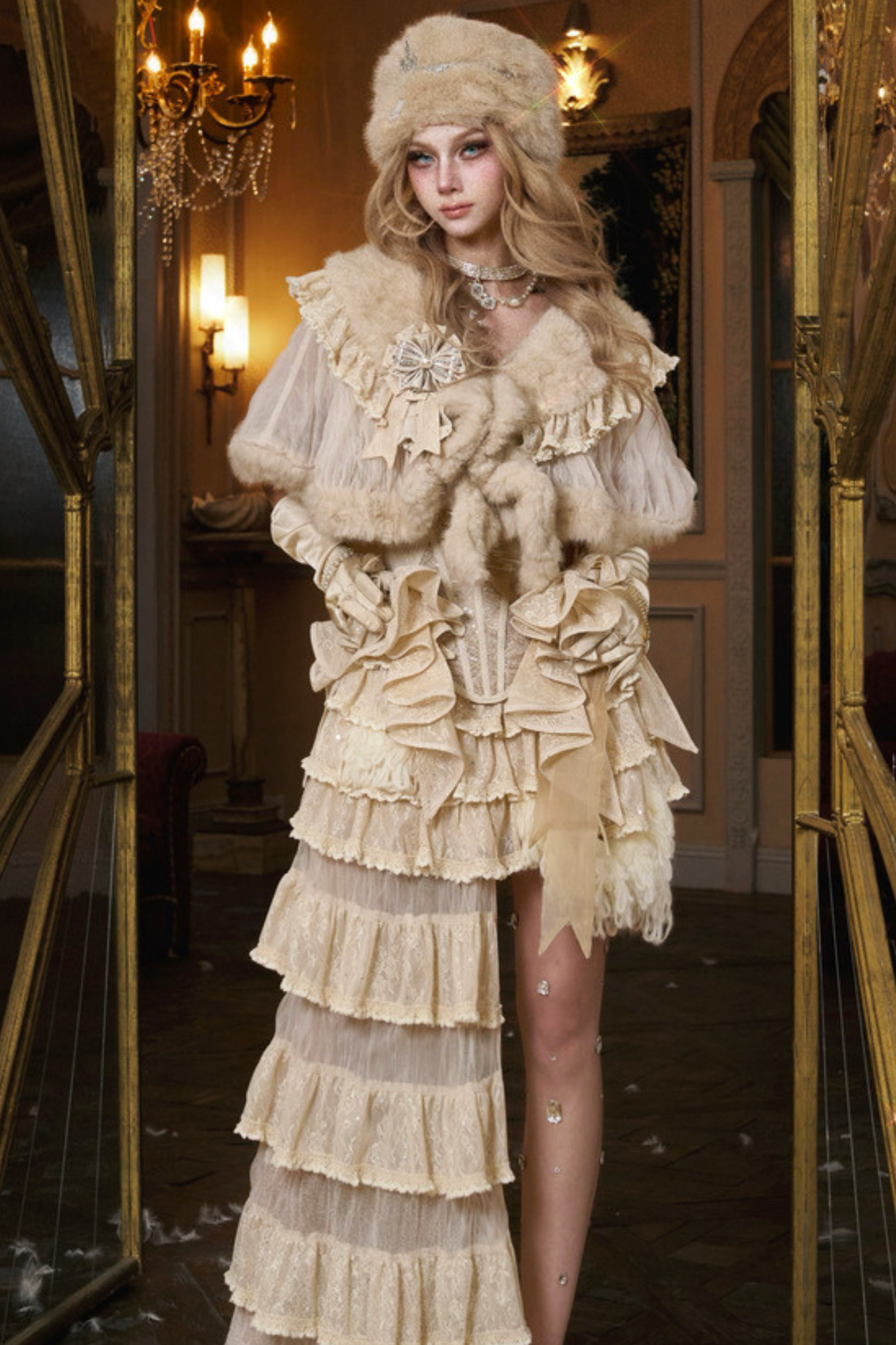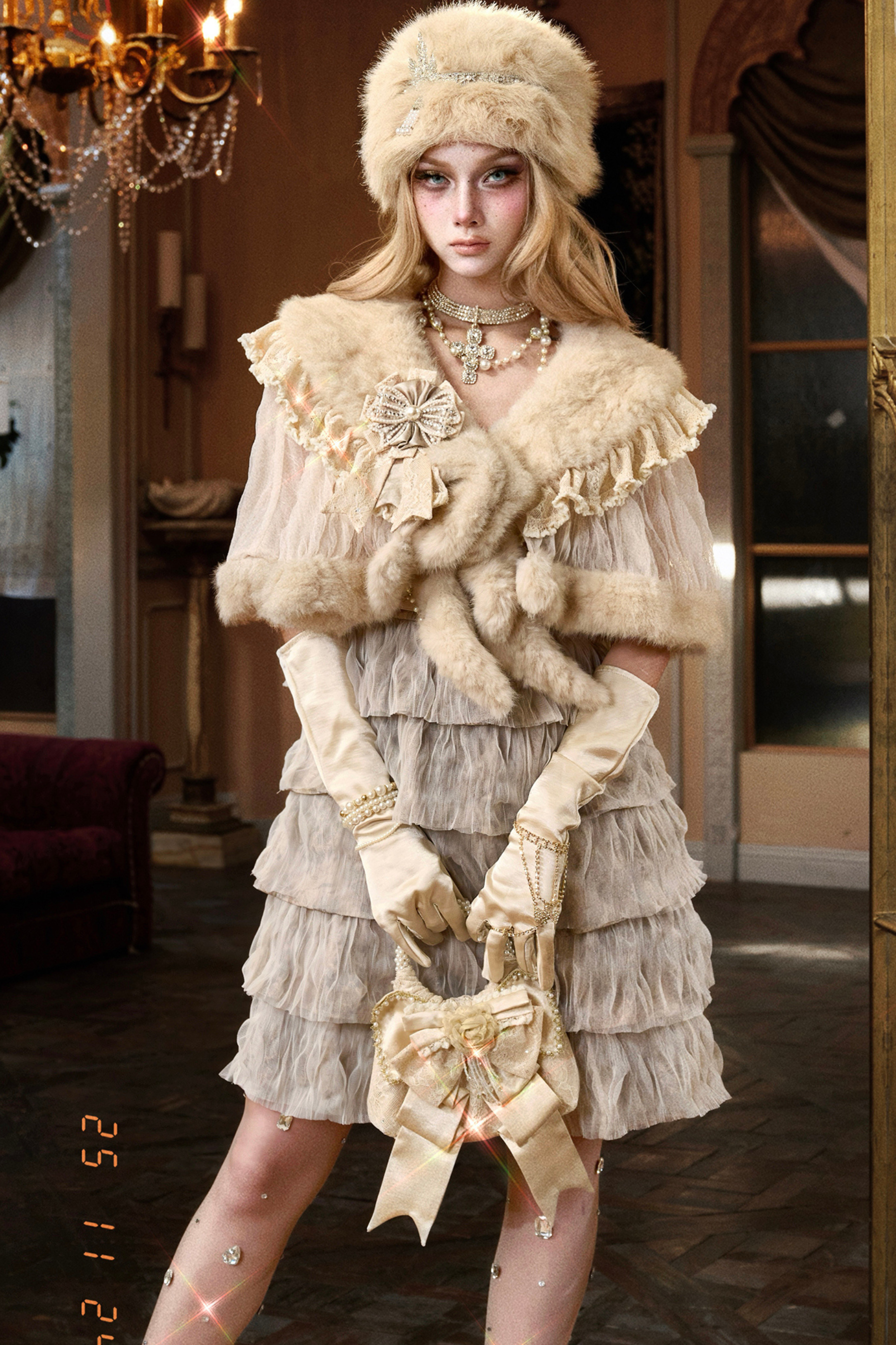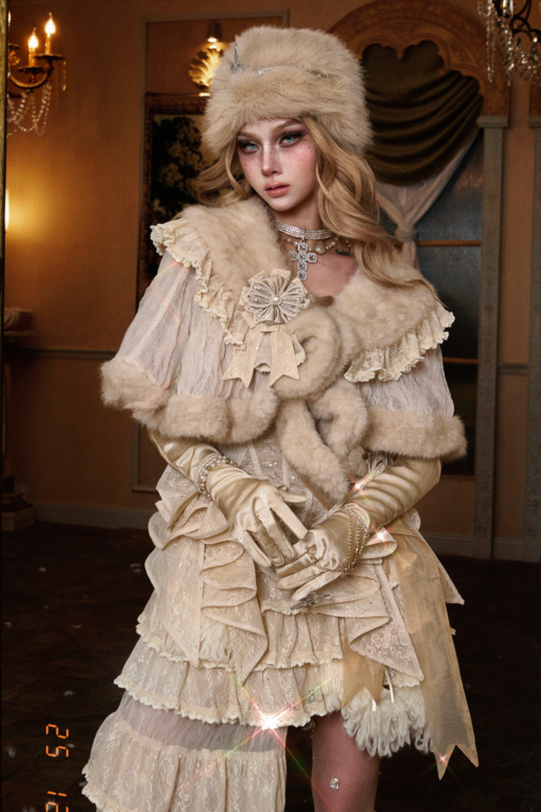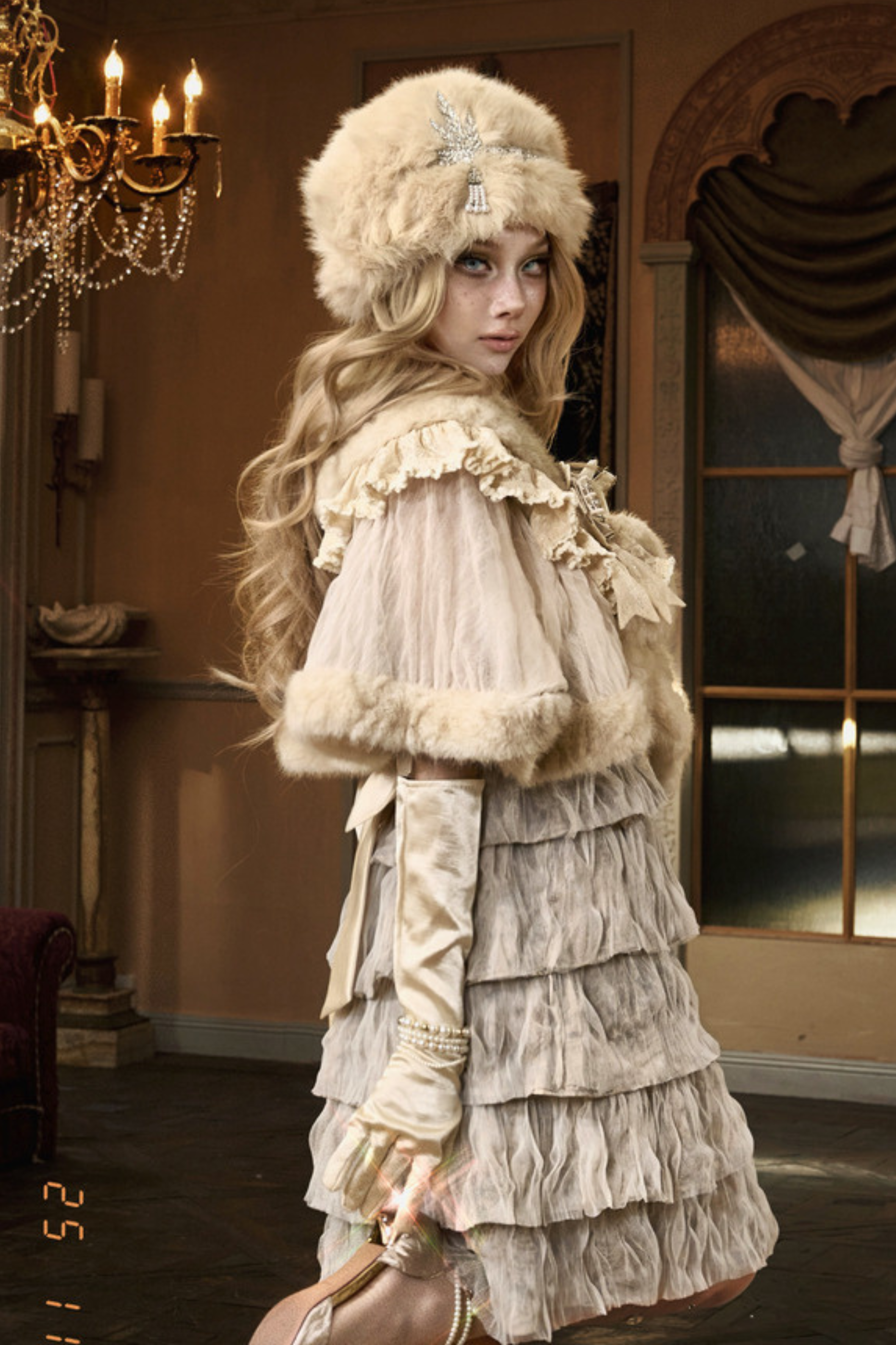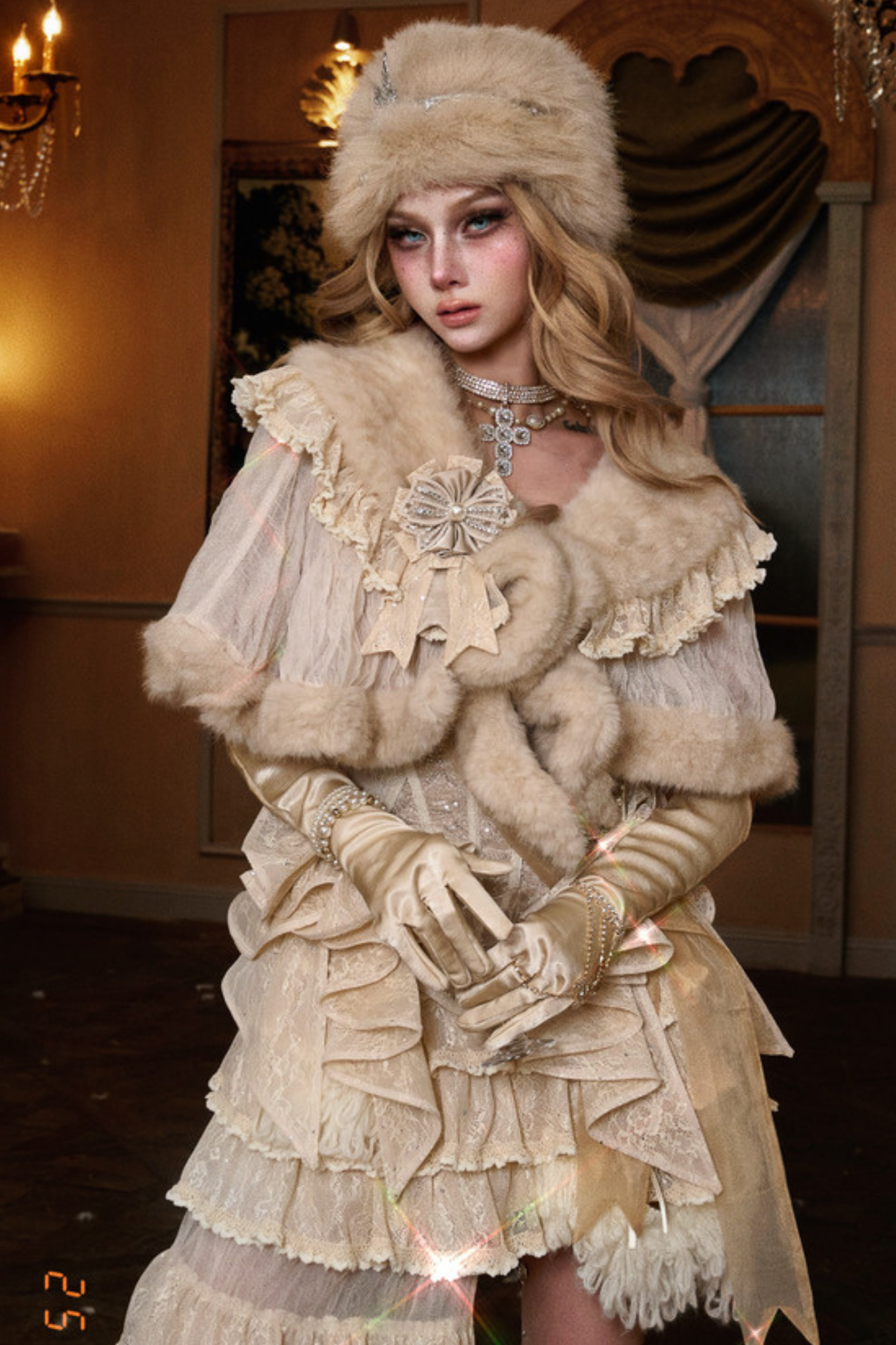 ナイトパーティーゴシックファーショール+ハット+ブローチ
