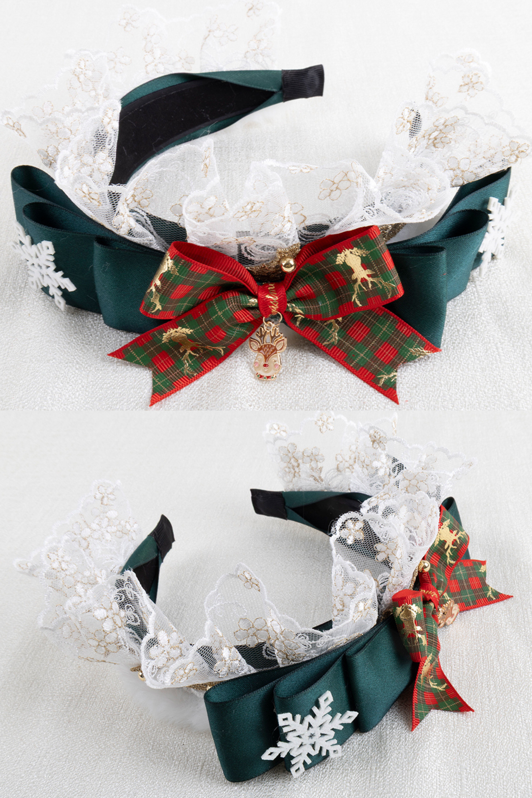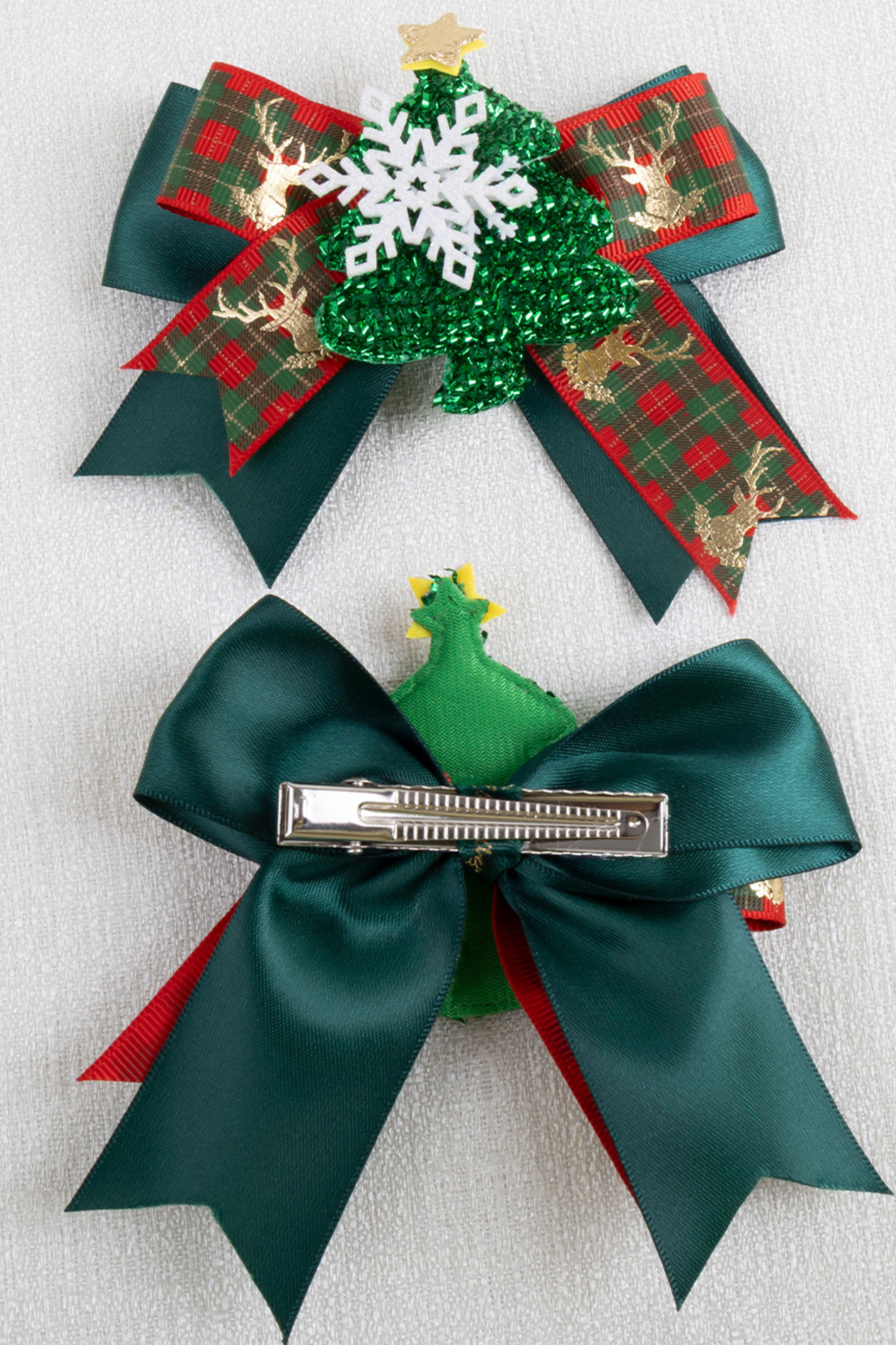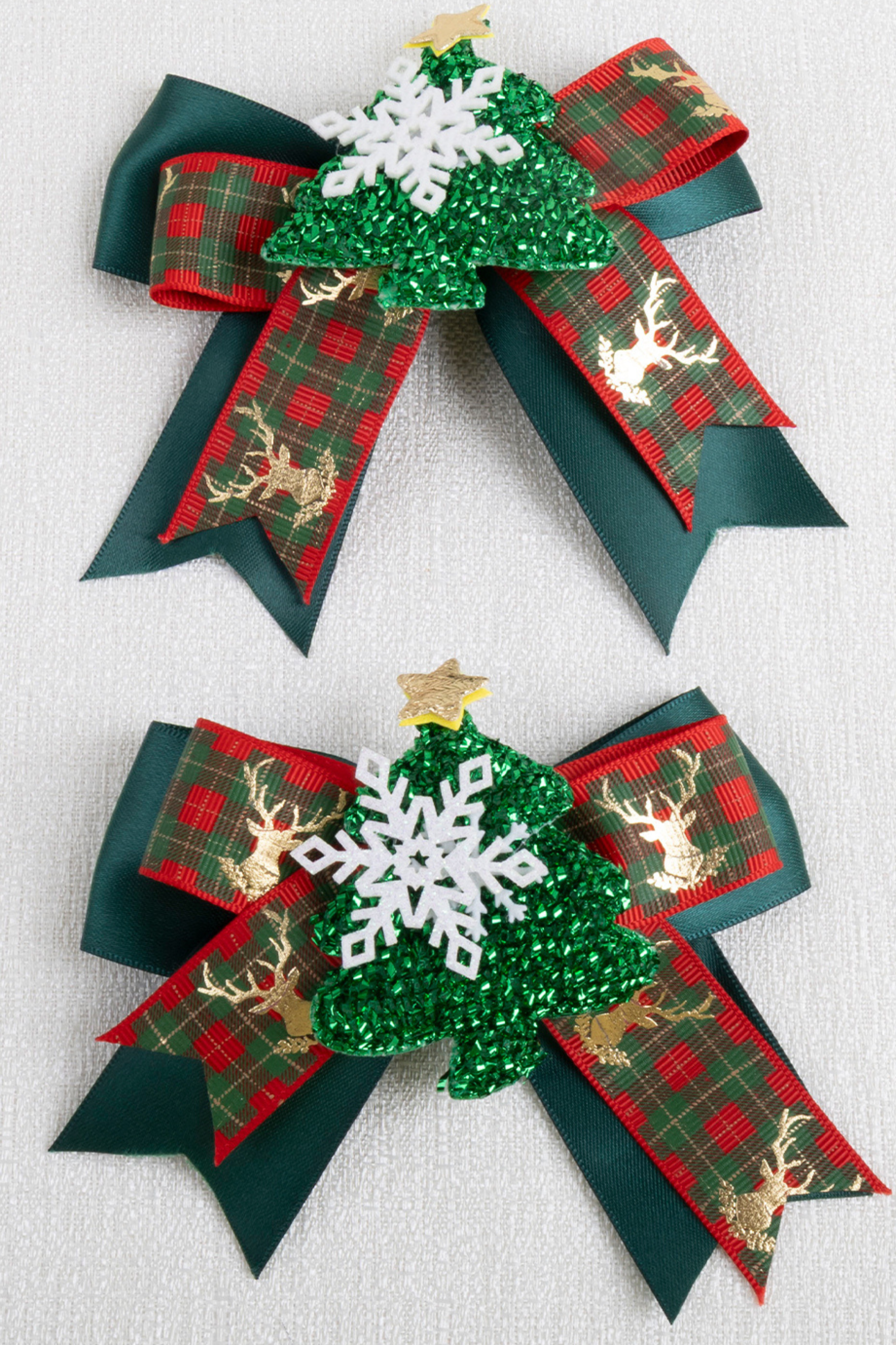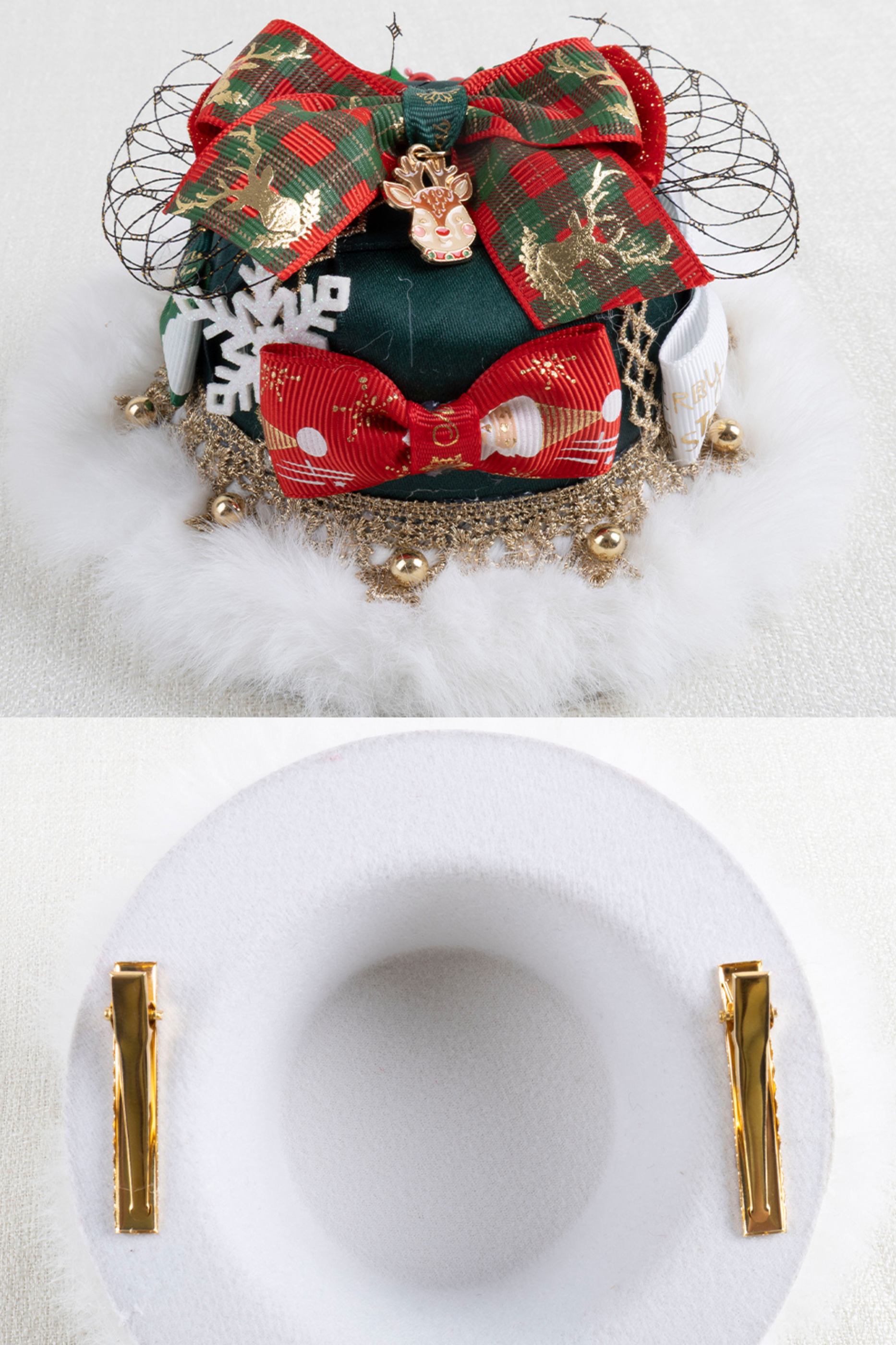 クリスマスチェックヘアーオーナメントリボンクリップ+ハットクリップ+ヘアバンド