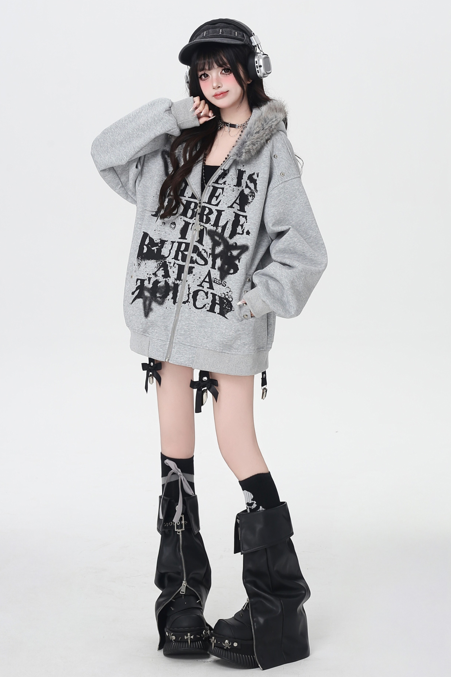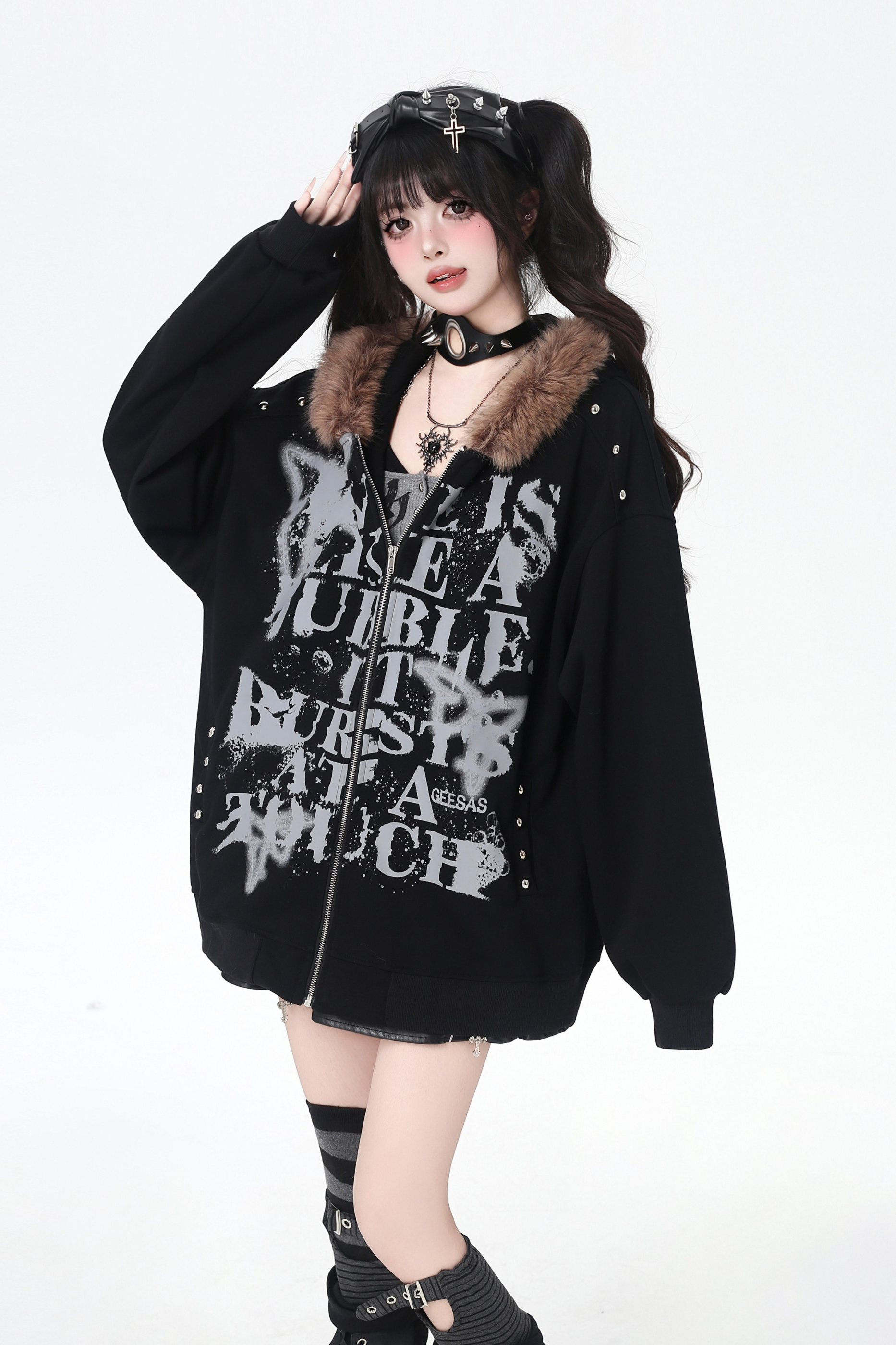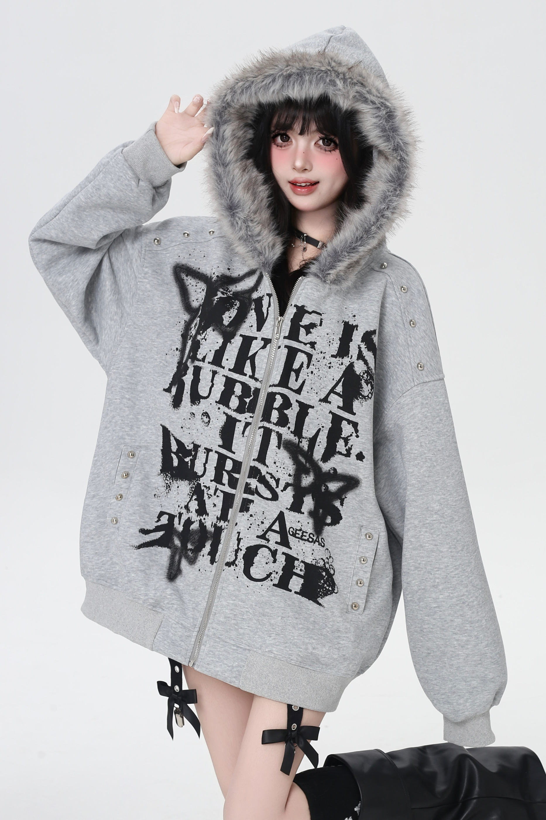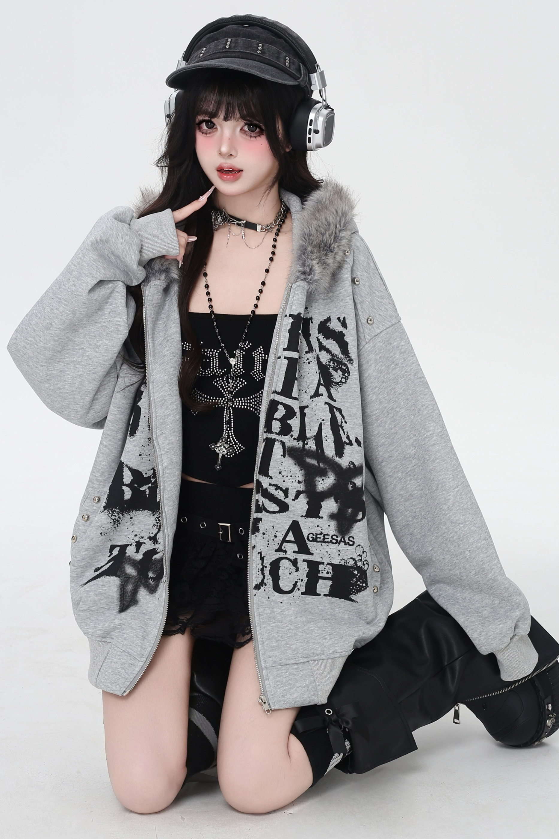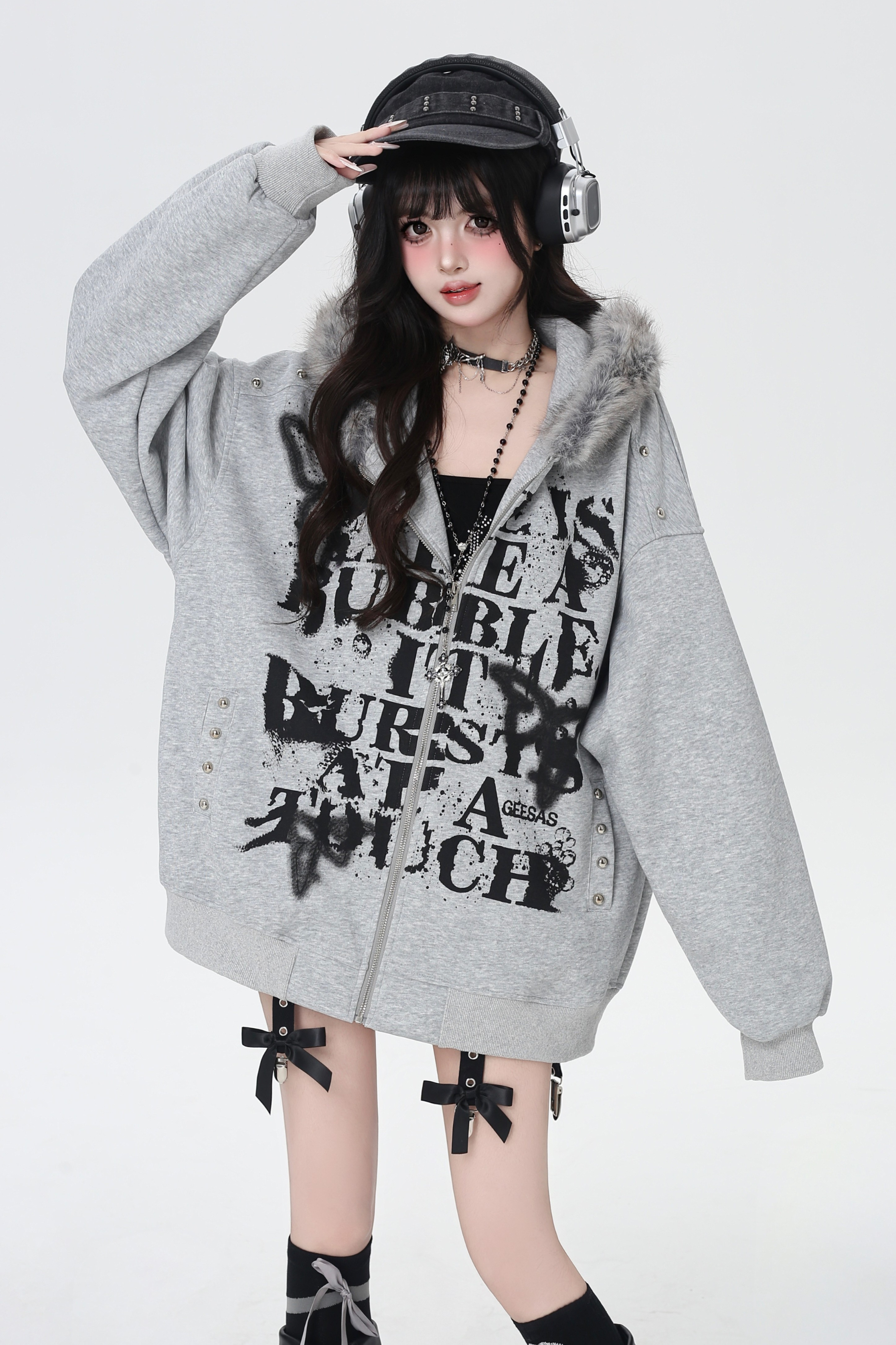 アメリカンレトロレターストリートファーフードパーカー