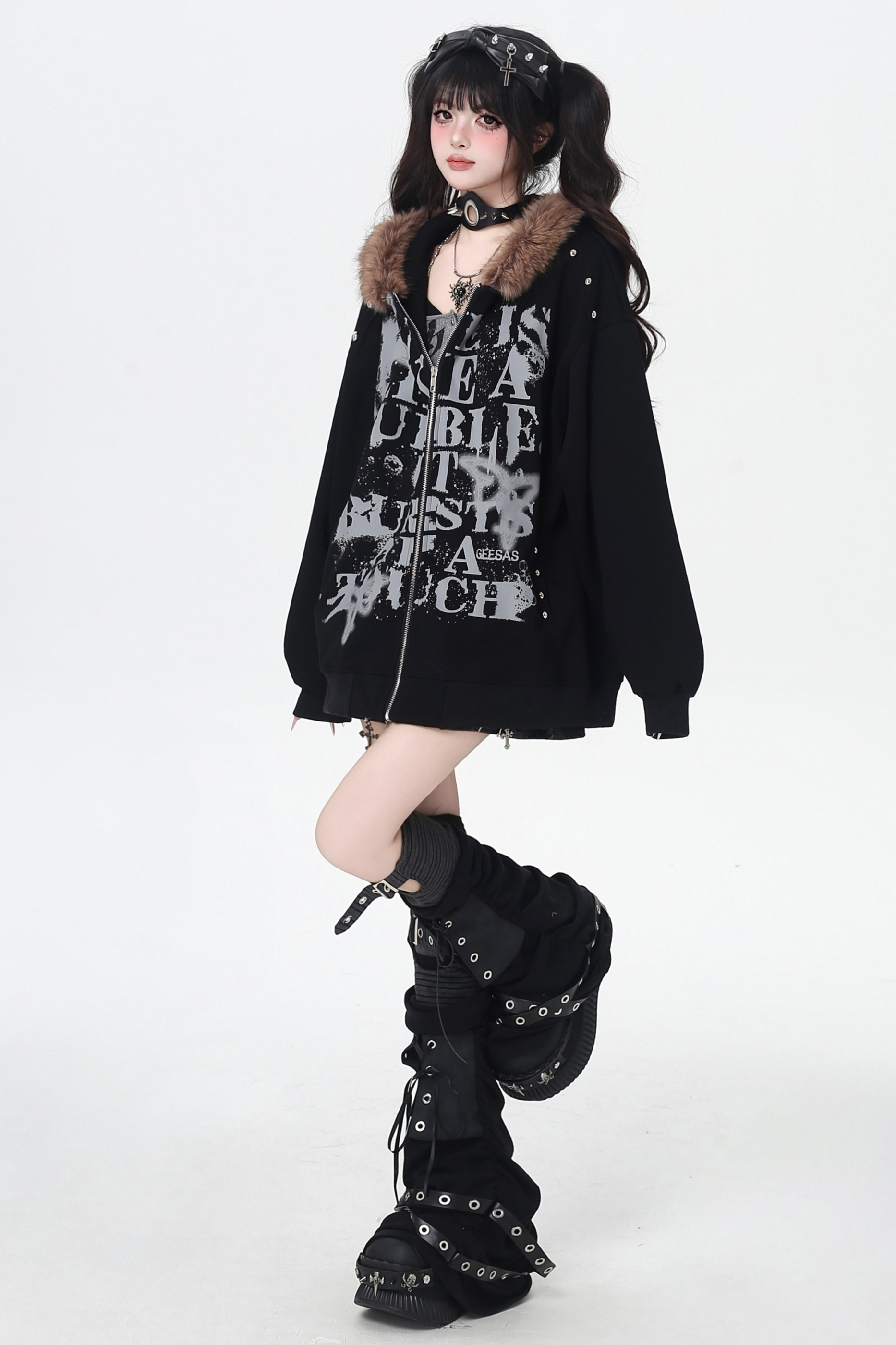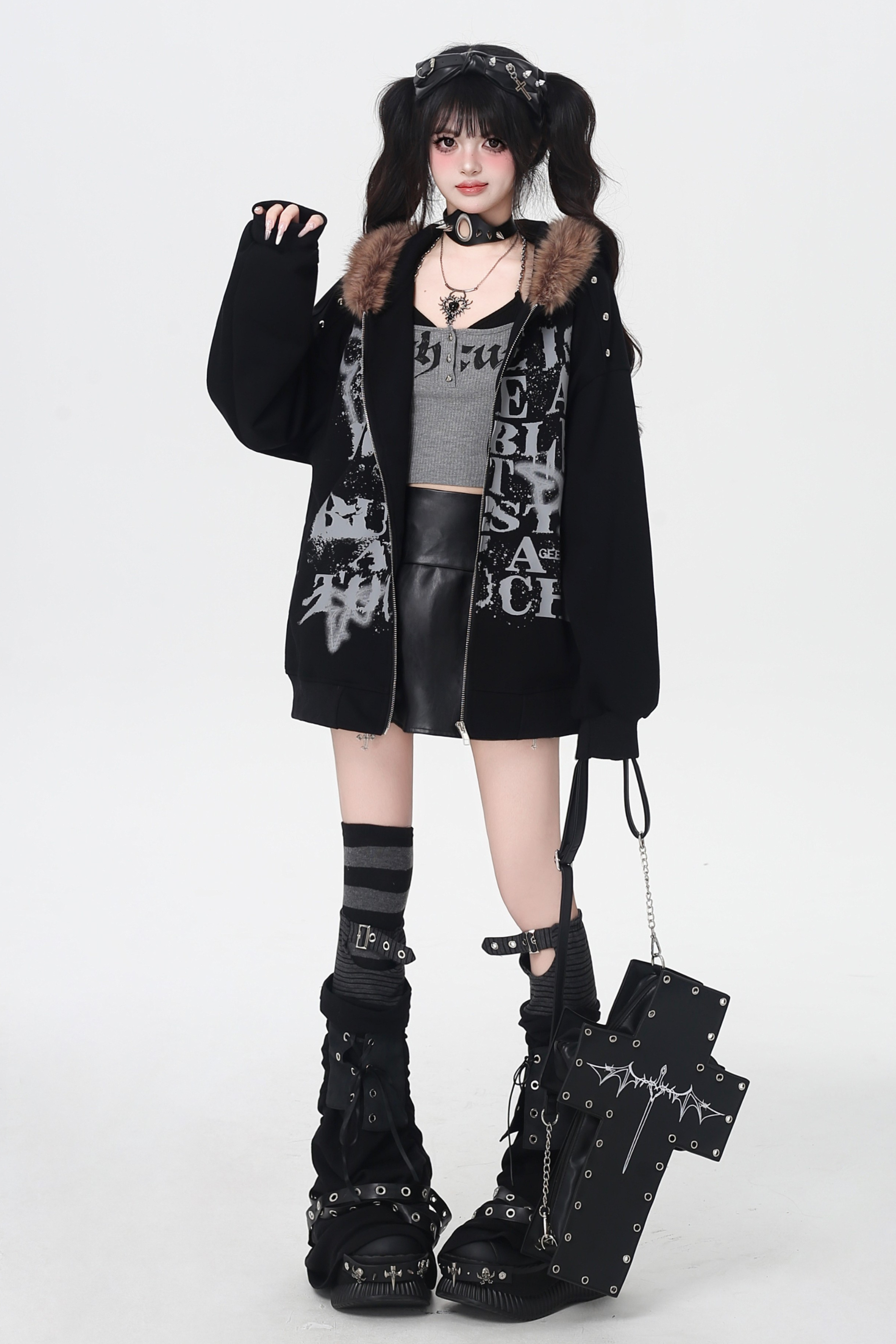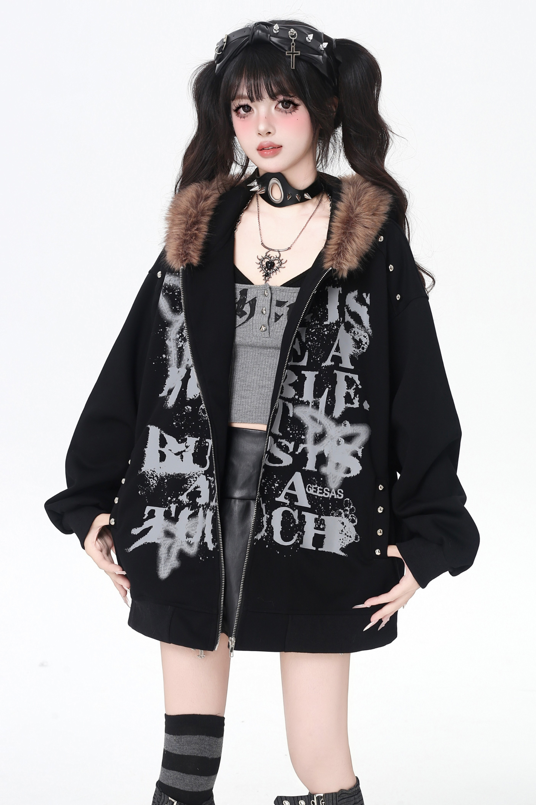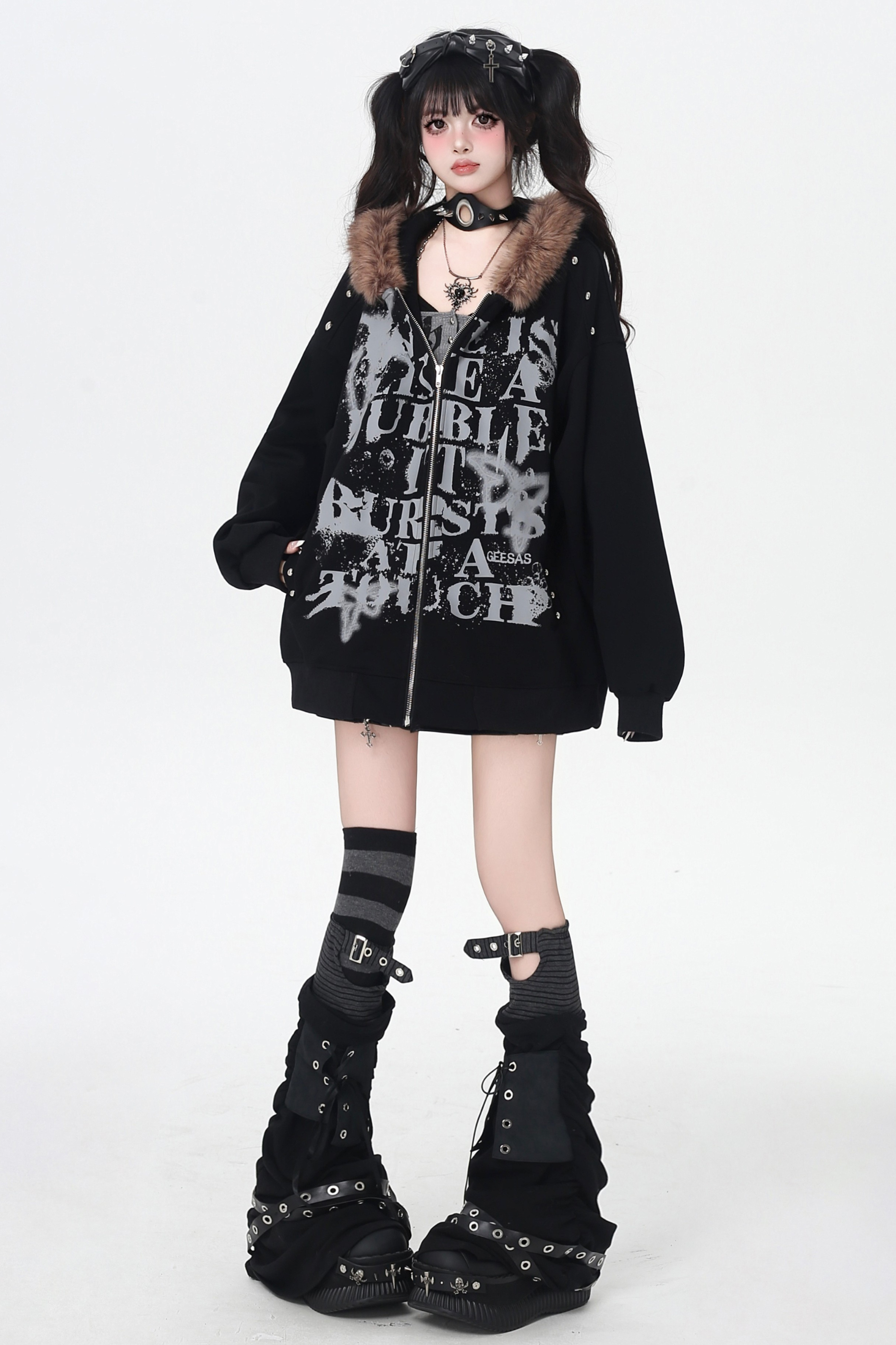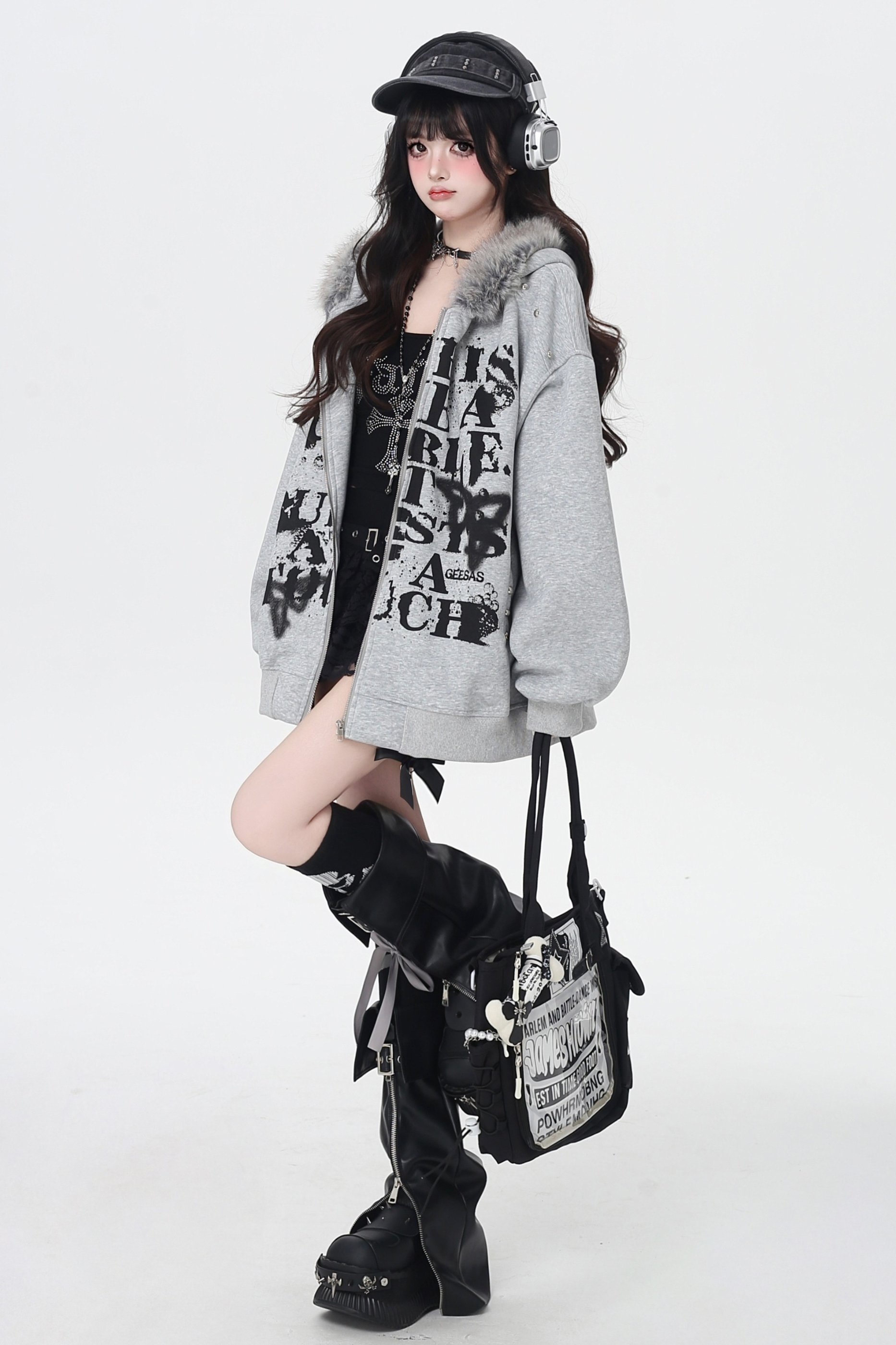 アメリカンレトロレターストリートファーフードパーカー