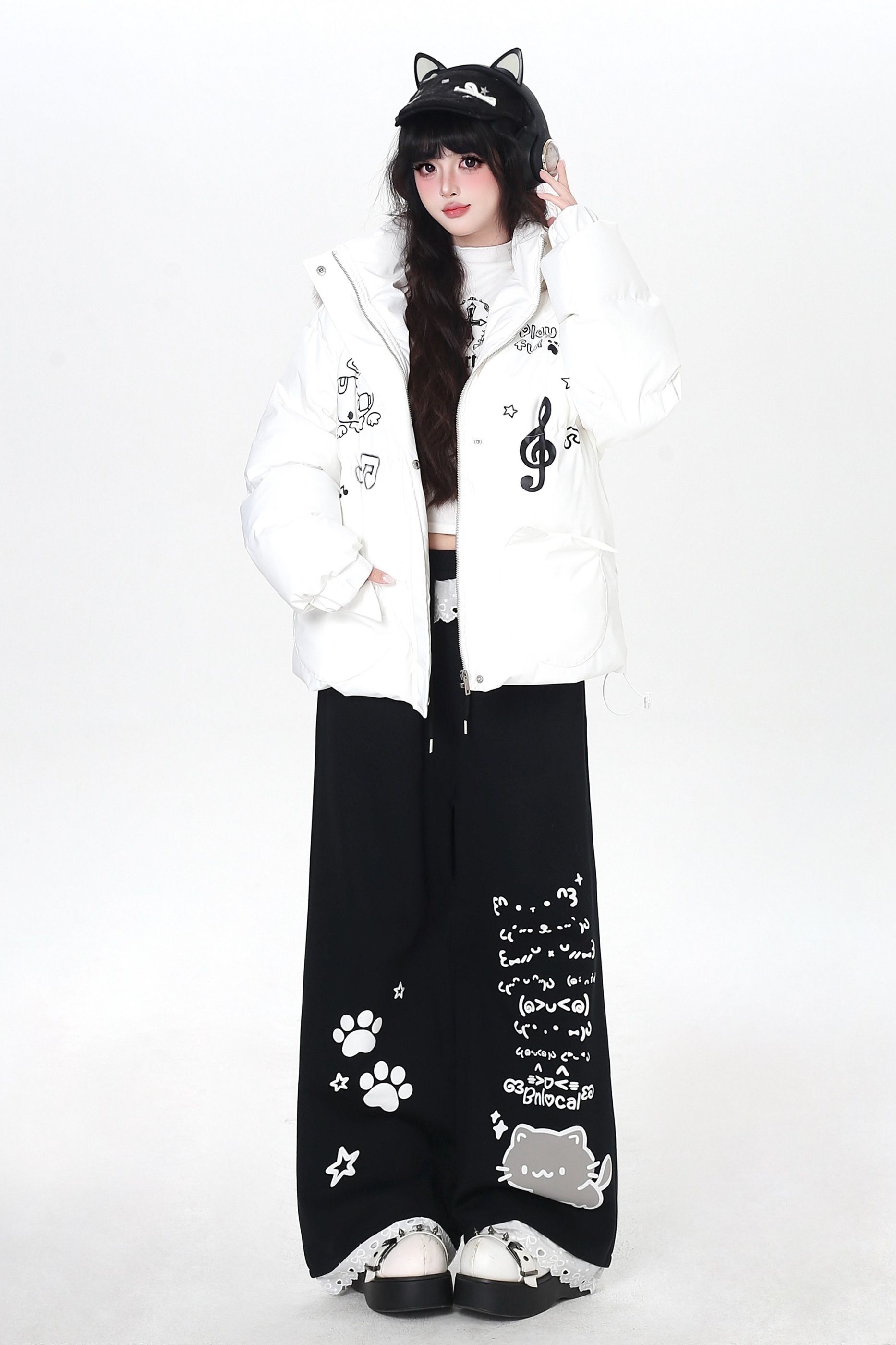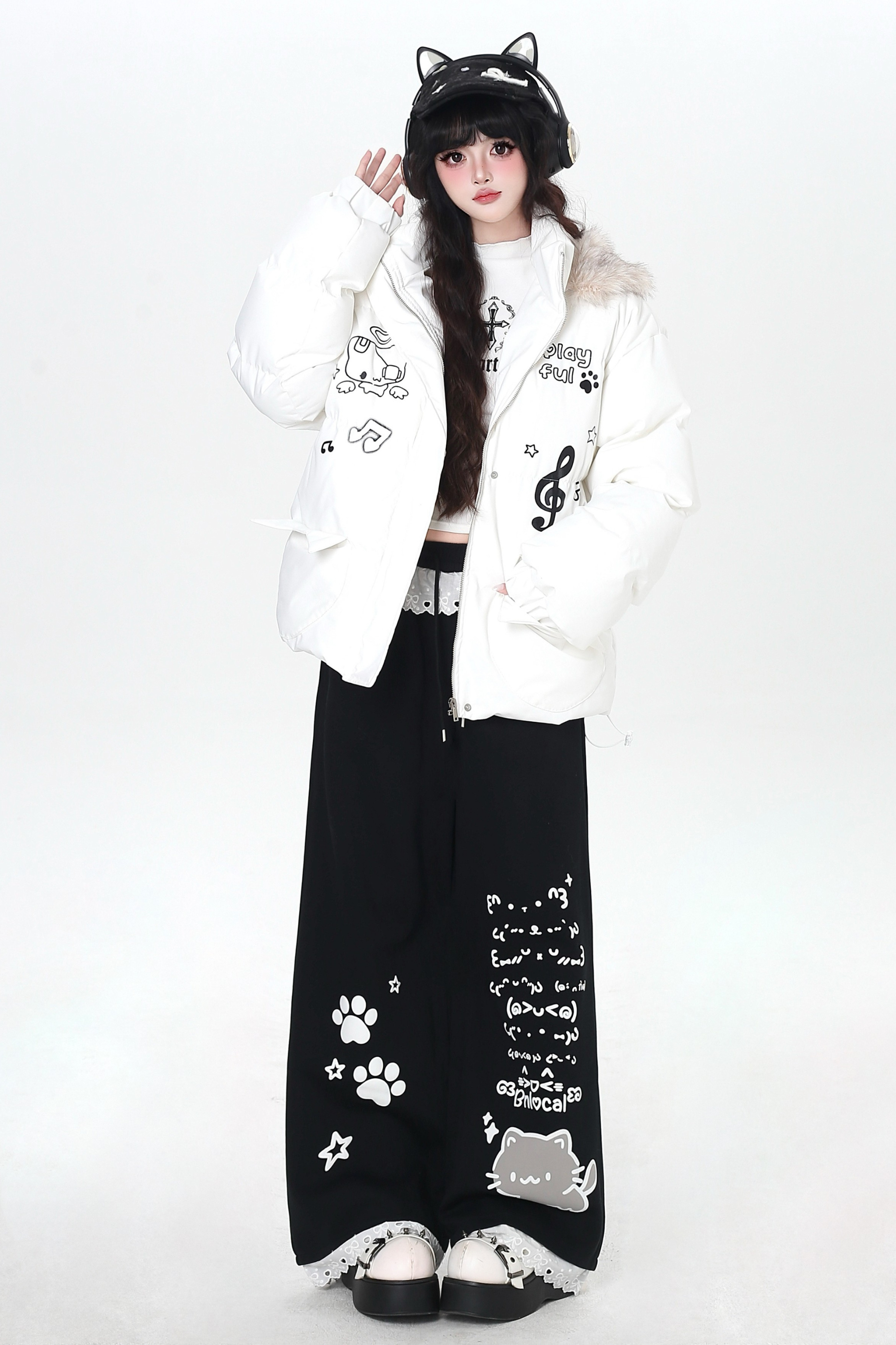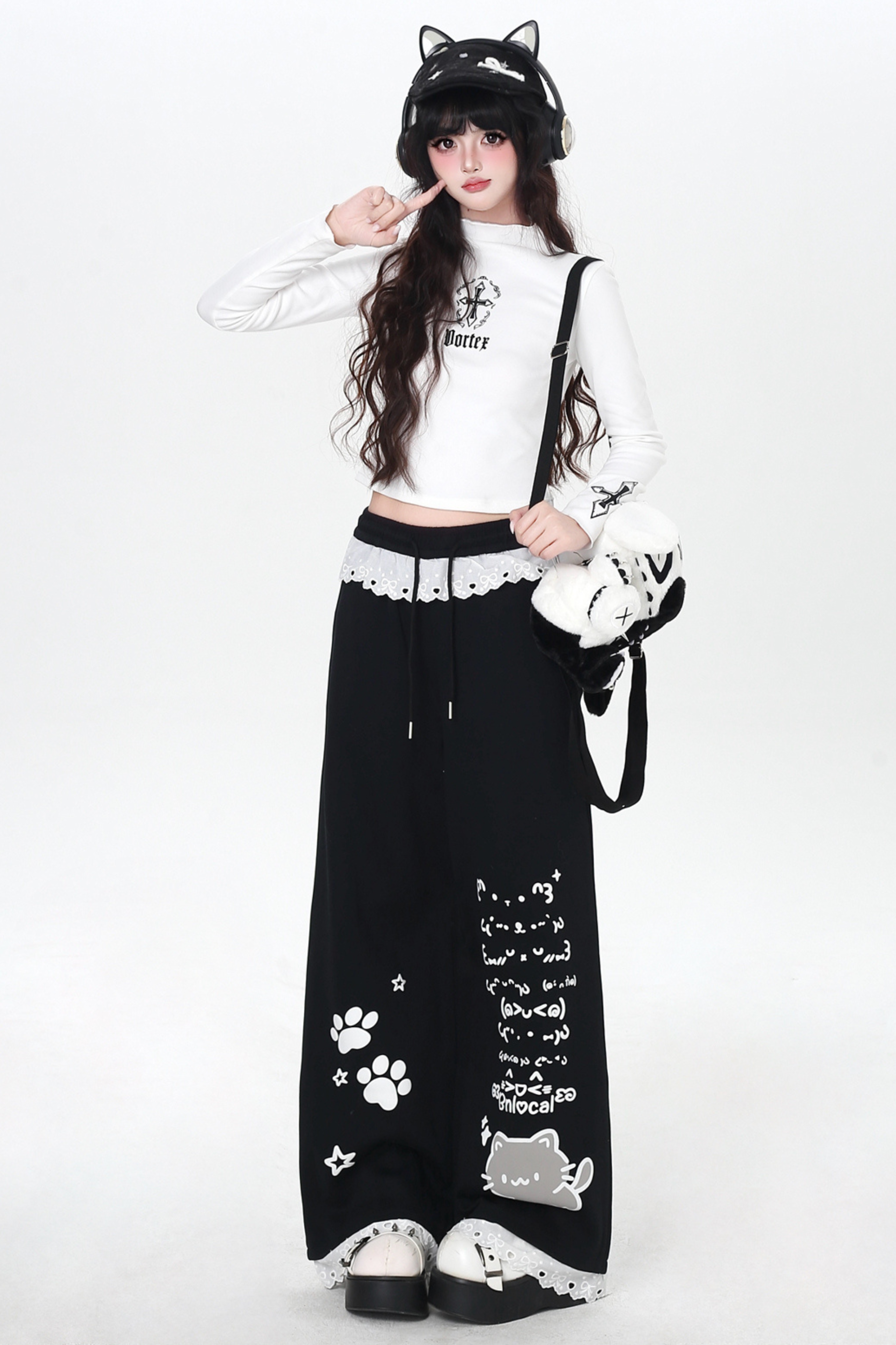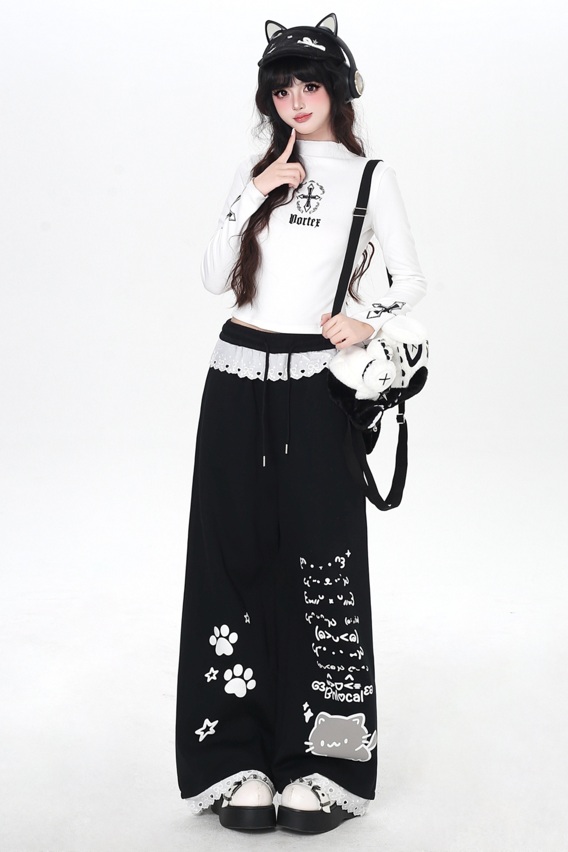 キャットデザインレースルーズパンツ