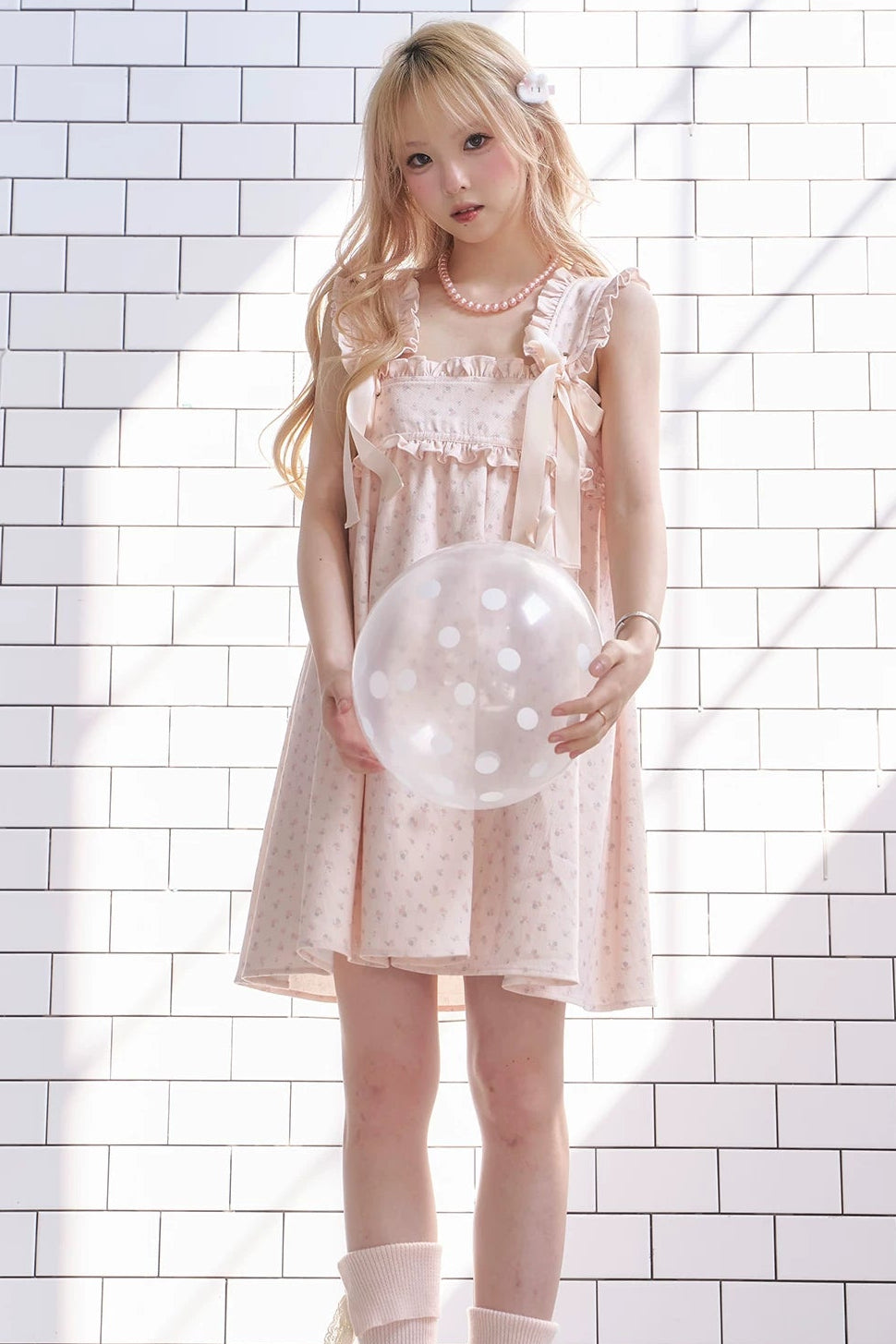 テンダーピンクノースリーブリボンドレス