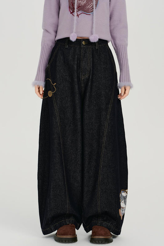 ヴィンテージテープエンブロイダリーワイドレッグジーンズ