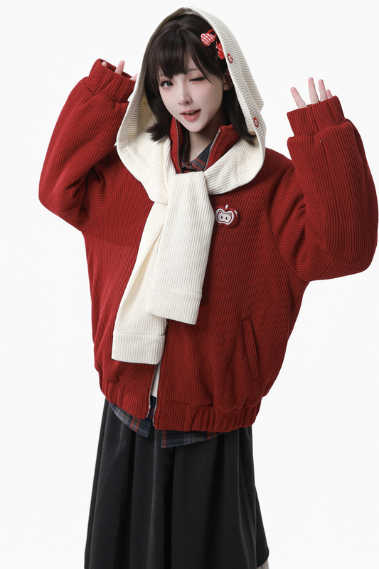 アップルブラックティーフリースコート+フーディー+ロングスカート+ショートスカート+フードマフラー