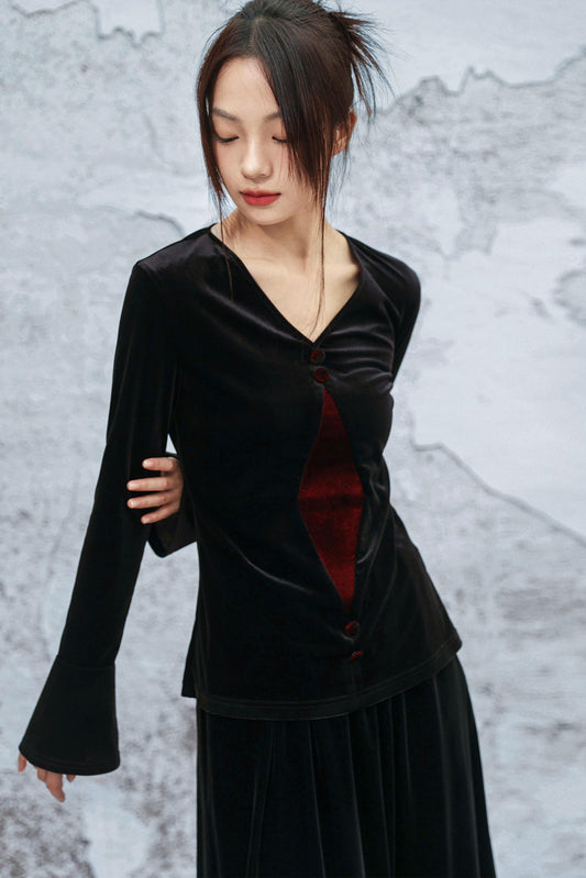 ゴシックベルベットベルスリーブブラウス