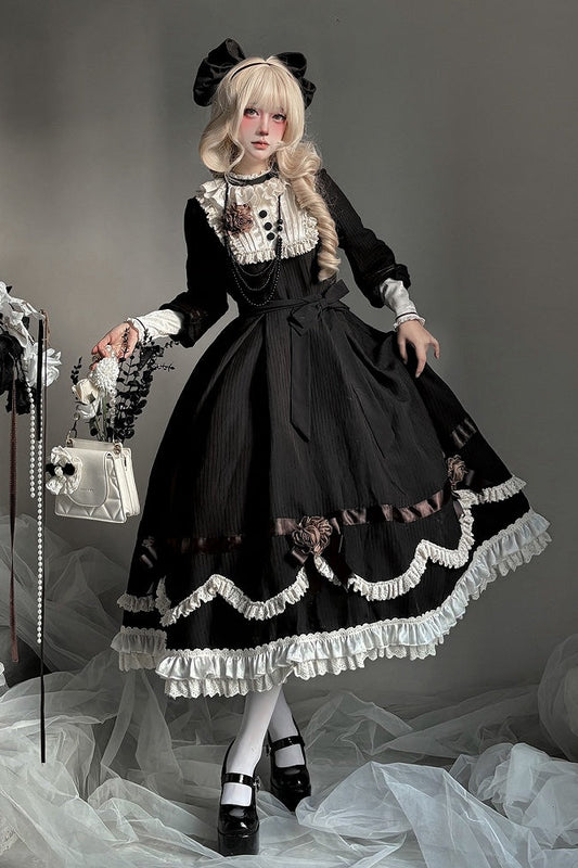 【12月21日予約締切】クラシックロリータ修道女ロングドレス+クロスフリルエプロン+ボンネット