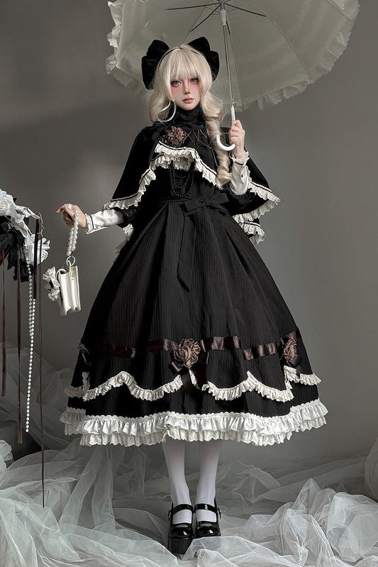 【12月23日予約締切】トワイライトレインロマンティックローズハイネックカラー付きフリルケープ