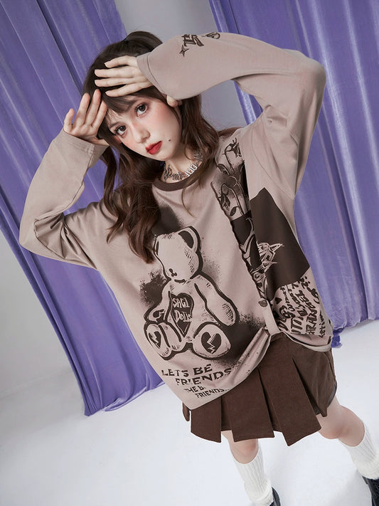 プリントウォッシュスリムパンクストリートフリンジスカート