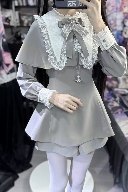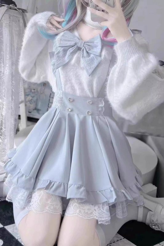 ラブリーサスペンダースカート+パフスリーブトップス+ガーリーマント