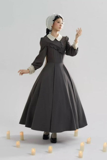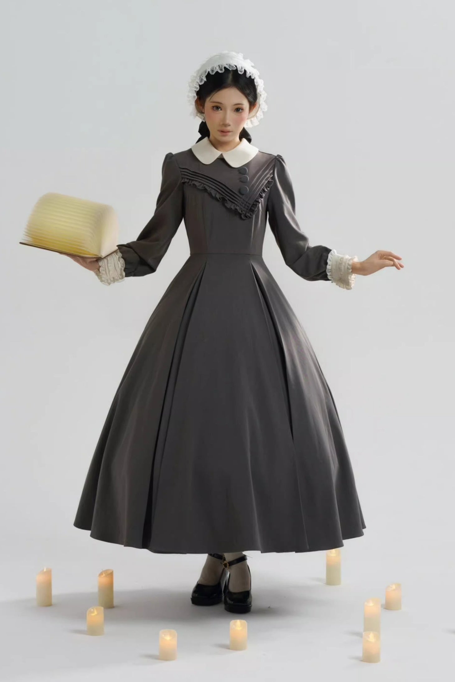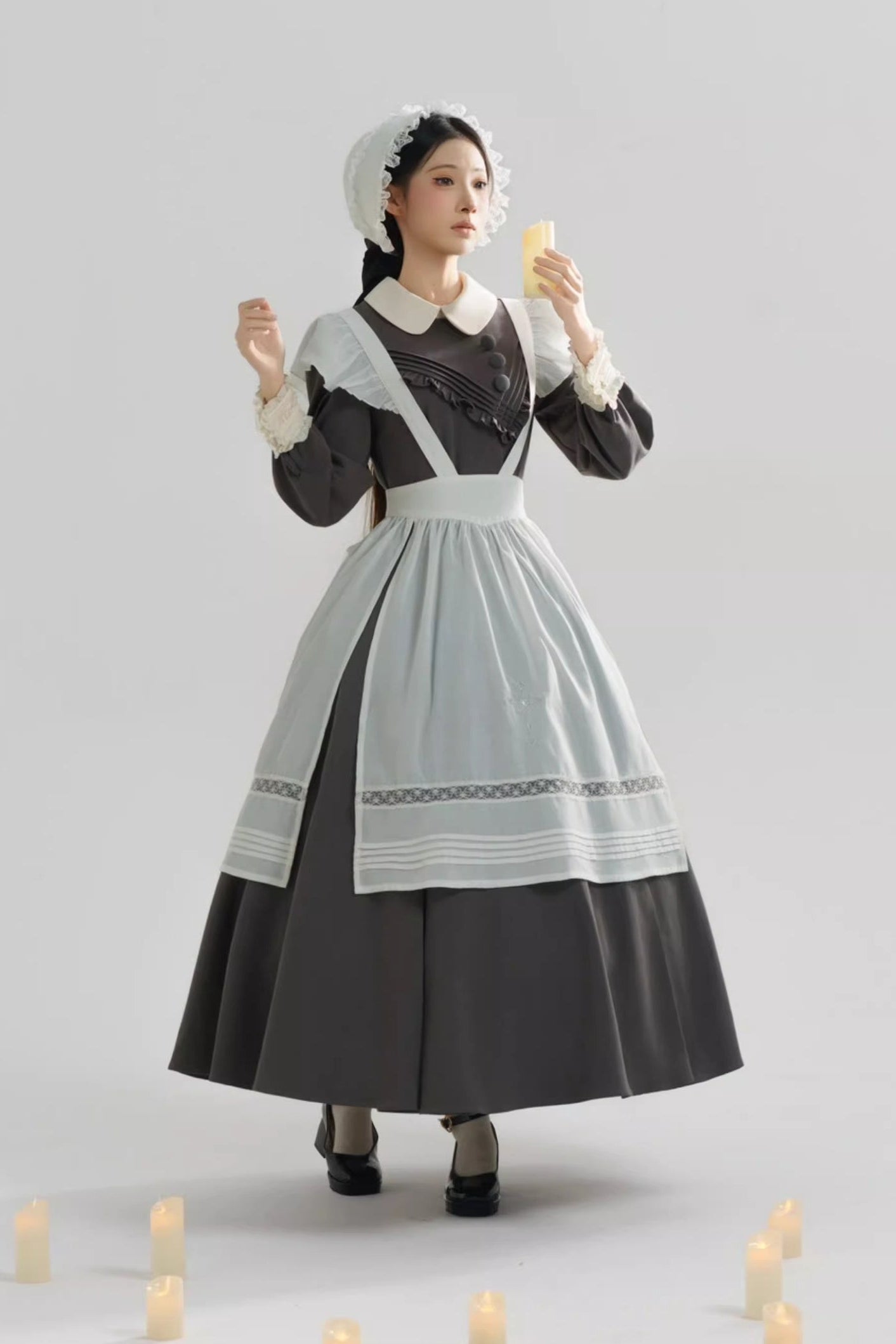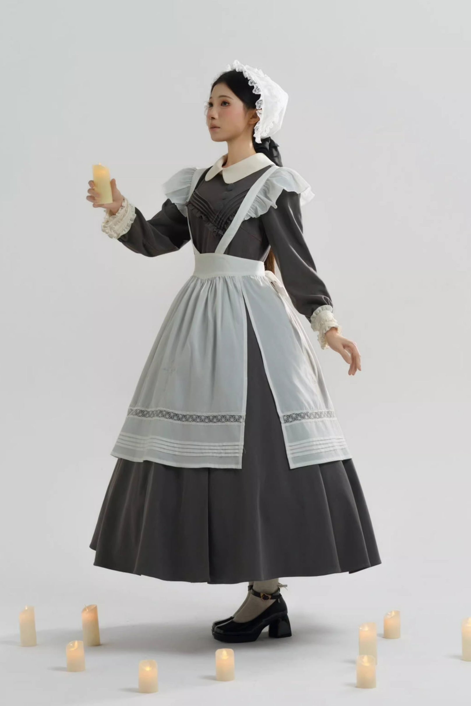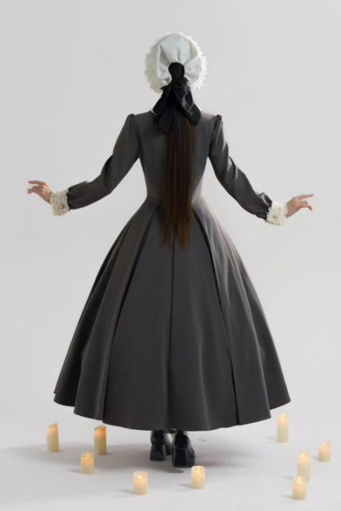 ❤︎【12月21日予約締切】クラシックロリータ修道女ロングドレス+クロスフリルエプロン+ボンネット❤︎                                                ⚠️人気商品のためお届けに4ヶ月ほどかかってしまう場合がございます