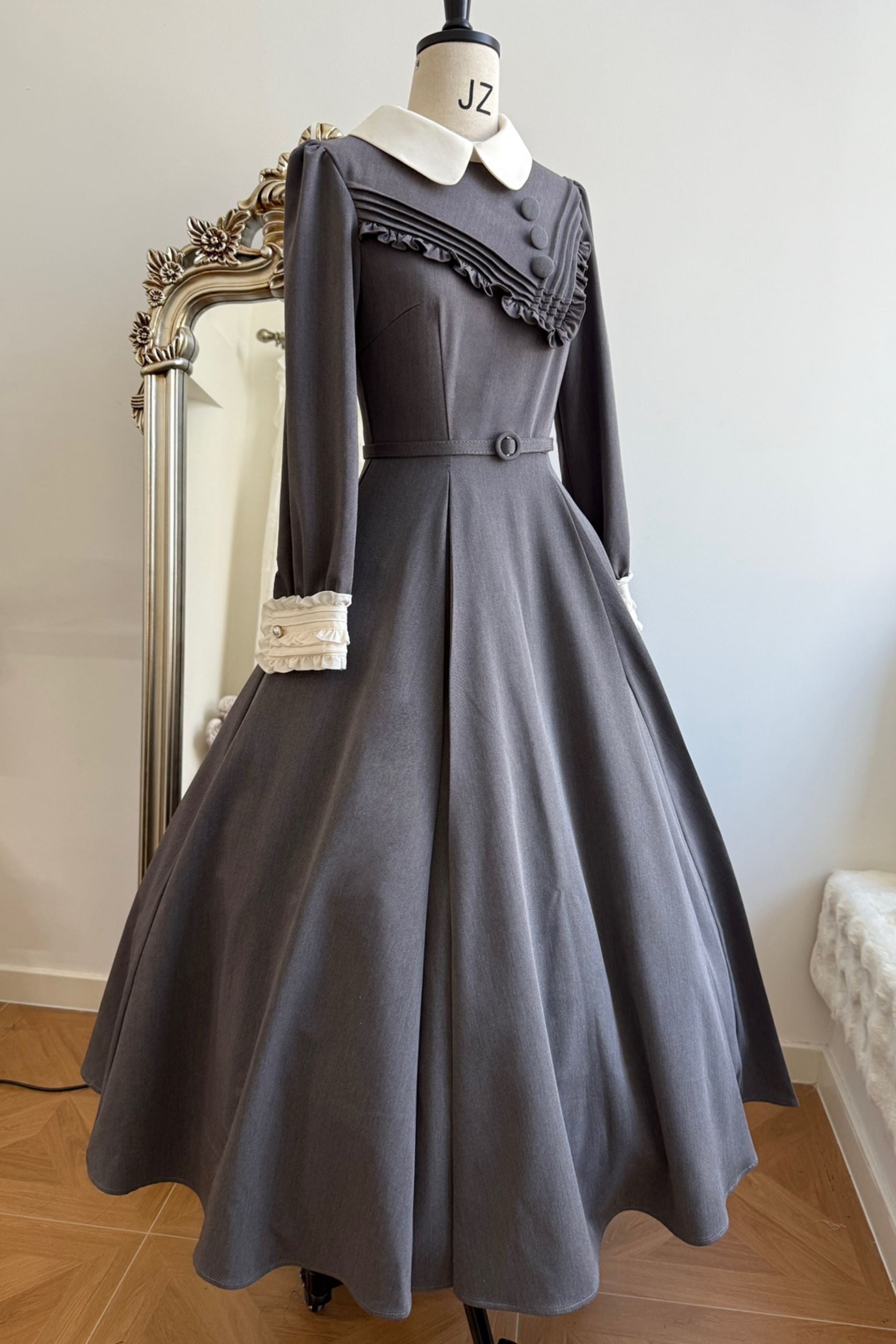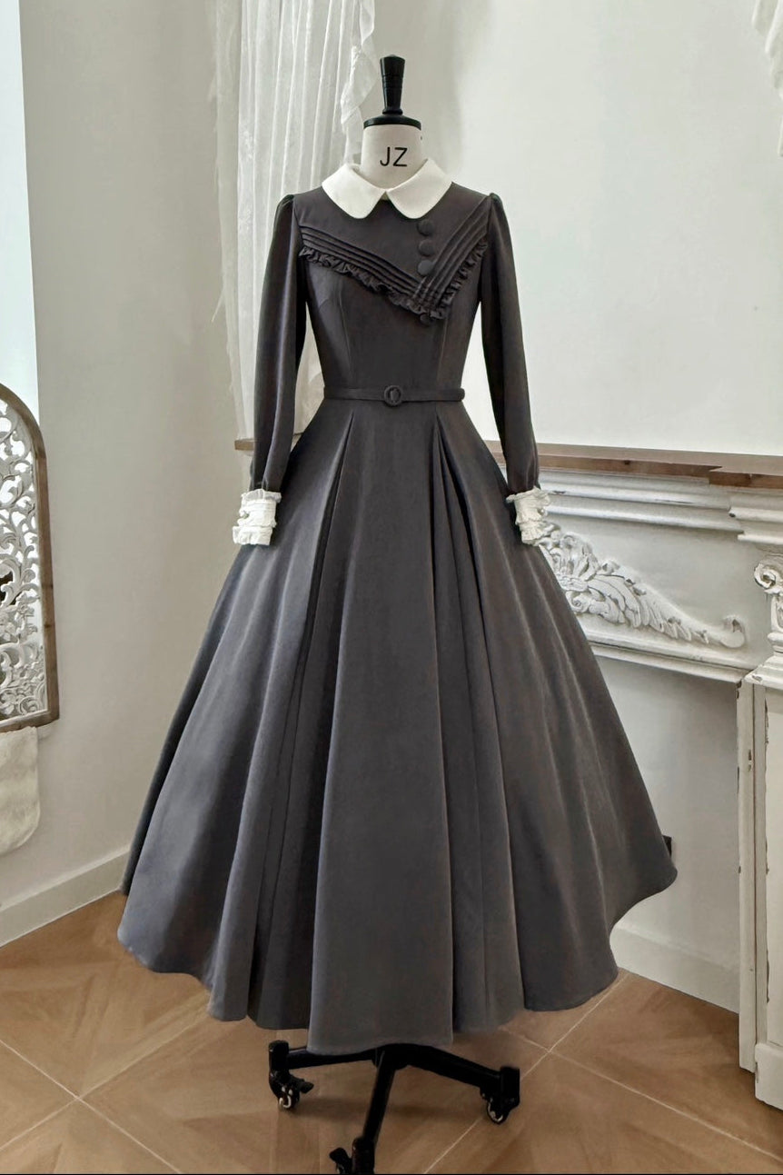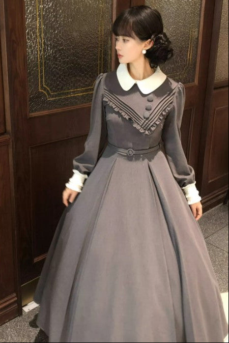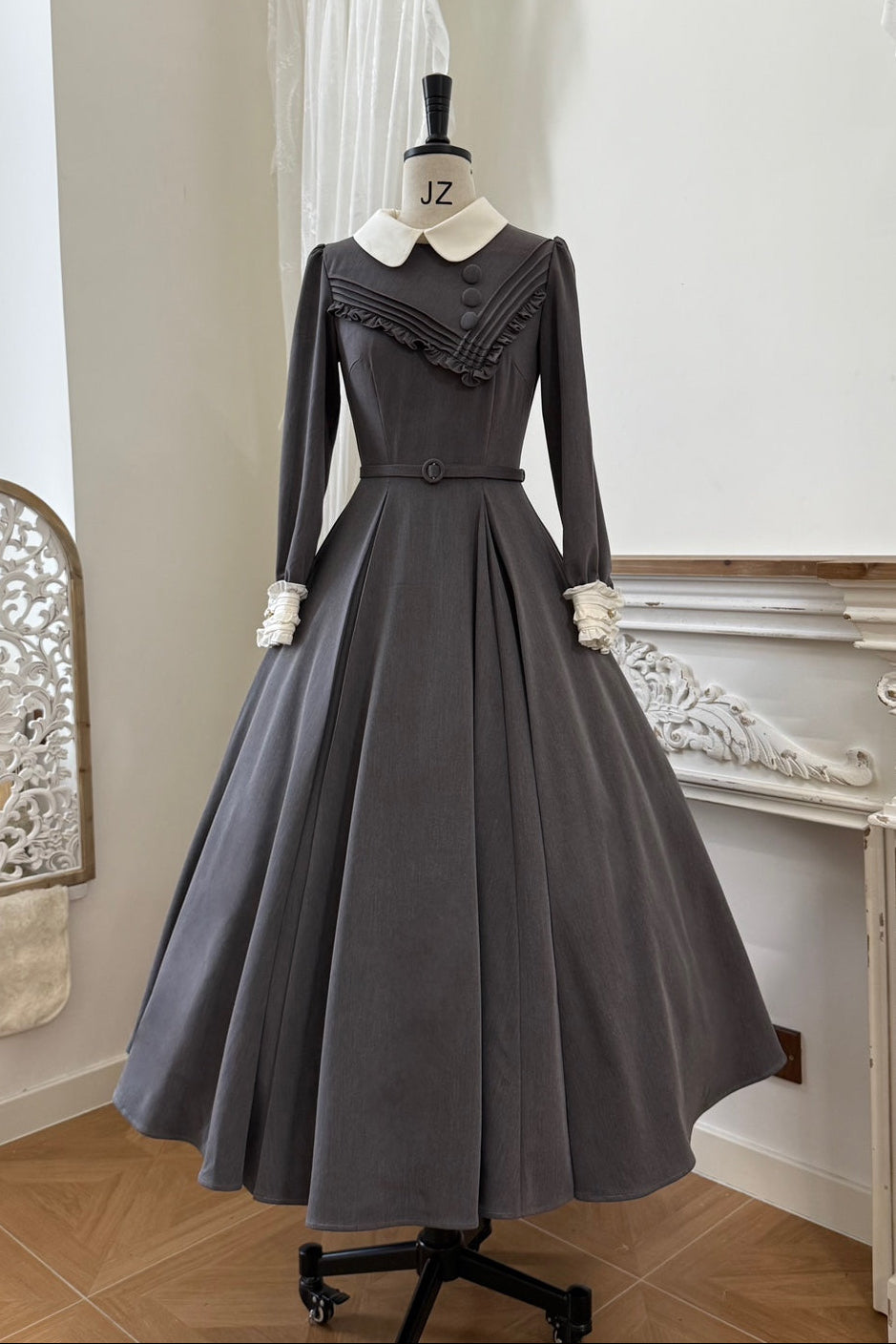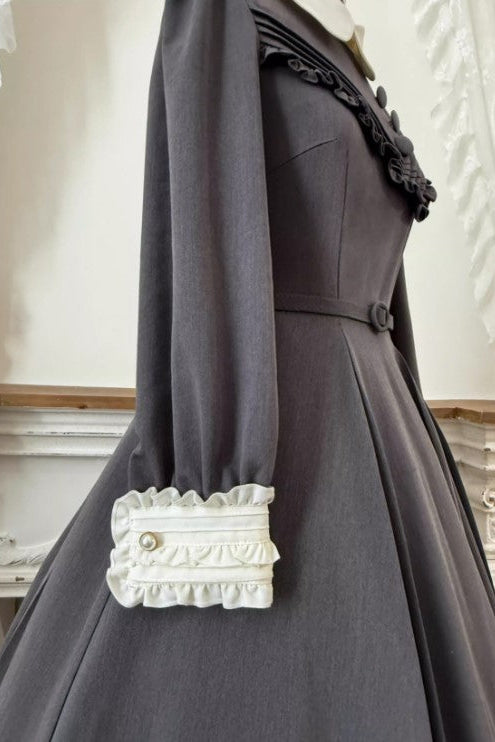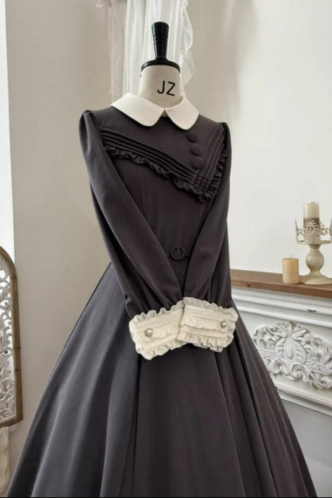 ❤︎【12月21日予約締切】クラシックロリータ修道女ロングドレス+クロスフリルエプロン+ボンネット❤︎                                                ⚠️人気商品のためお届けに4ヶ月ほどかかってしまう場合がございます