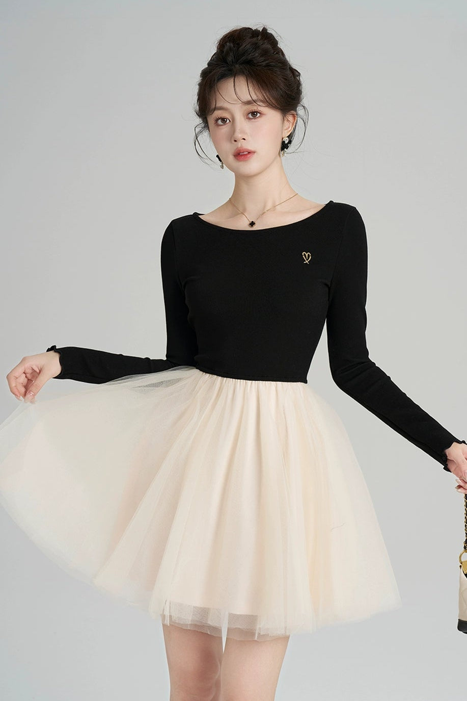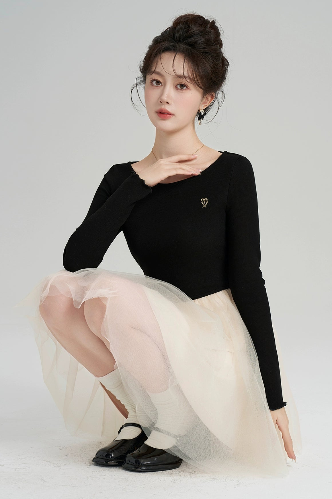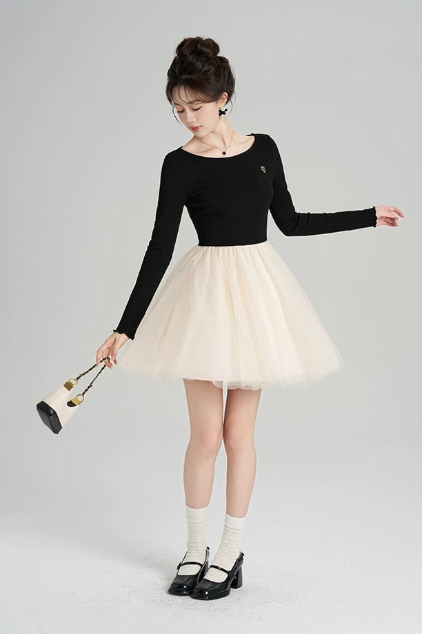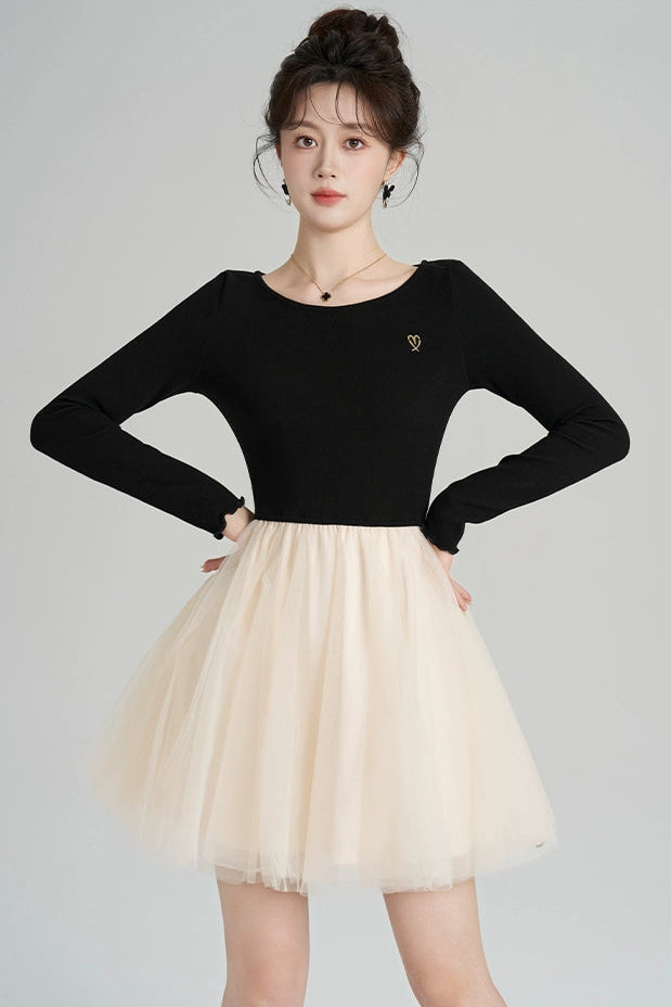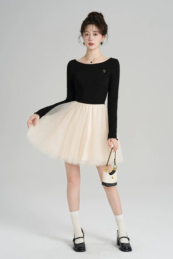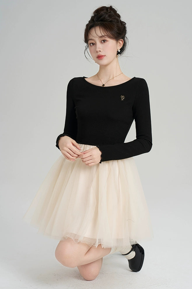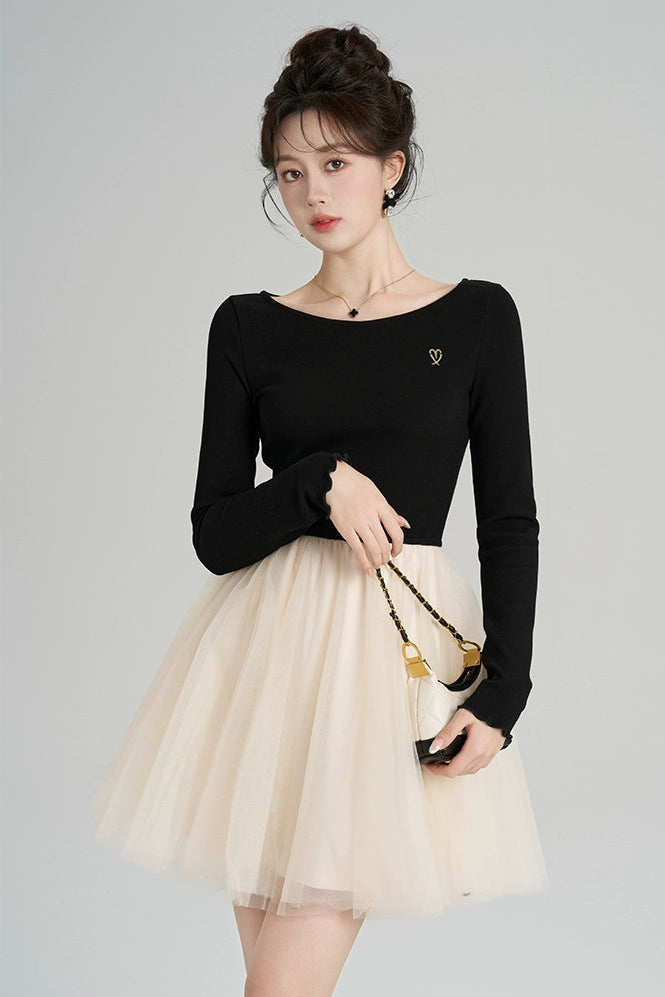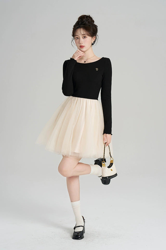 パッチワークメッシュフレンチドレス