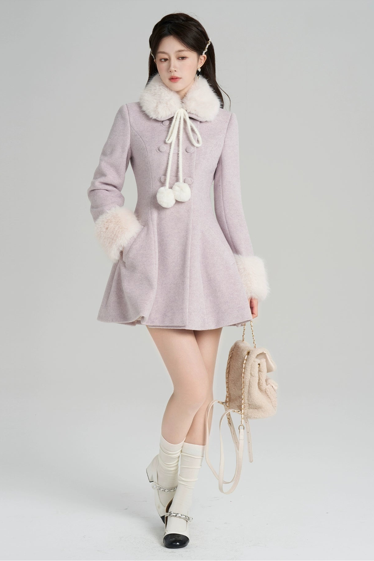 パープルウールンウィンターコート
