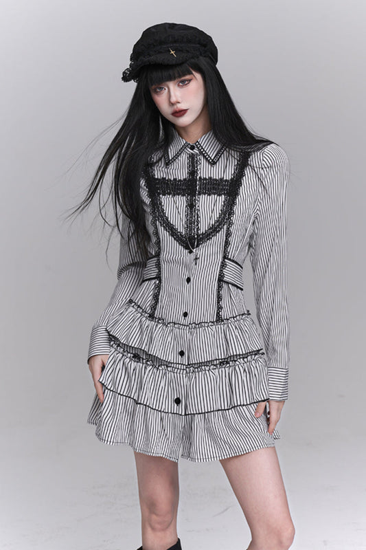 ゴシックスタイルストライプシャツワンピース