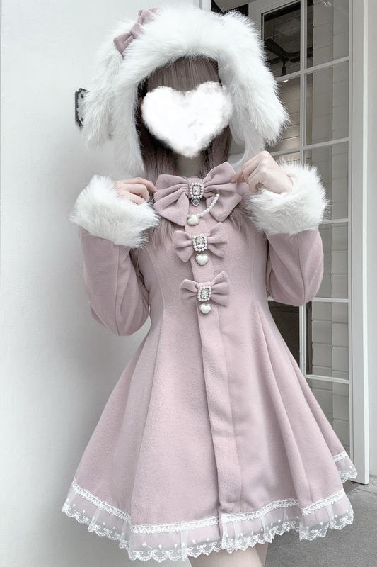 【予約商品】チェックロリータJSK+フードマント+ニット+ベアカチューシャ